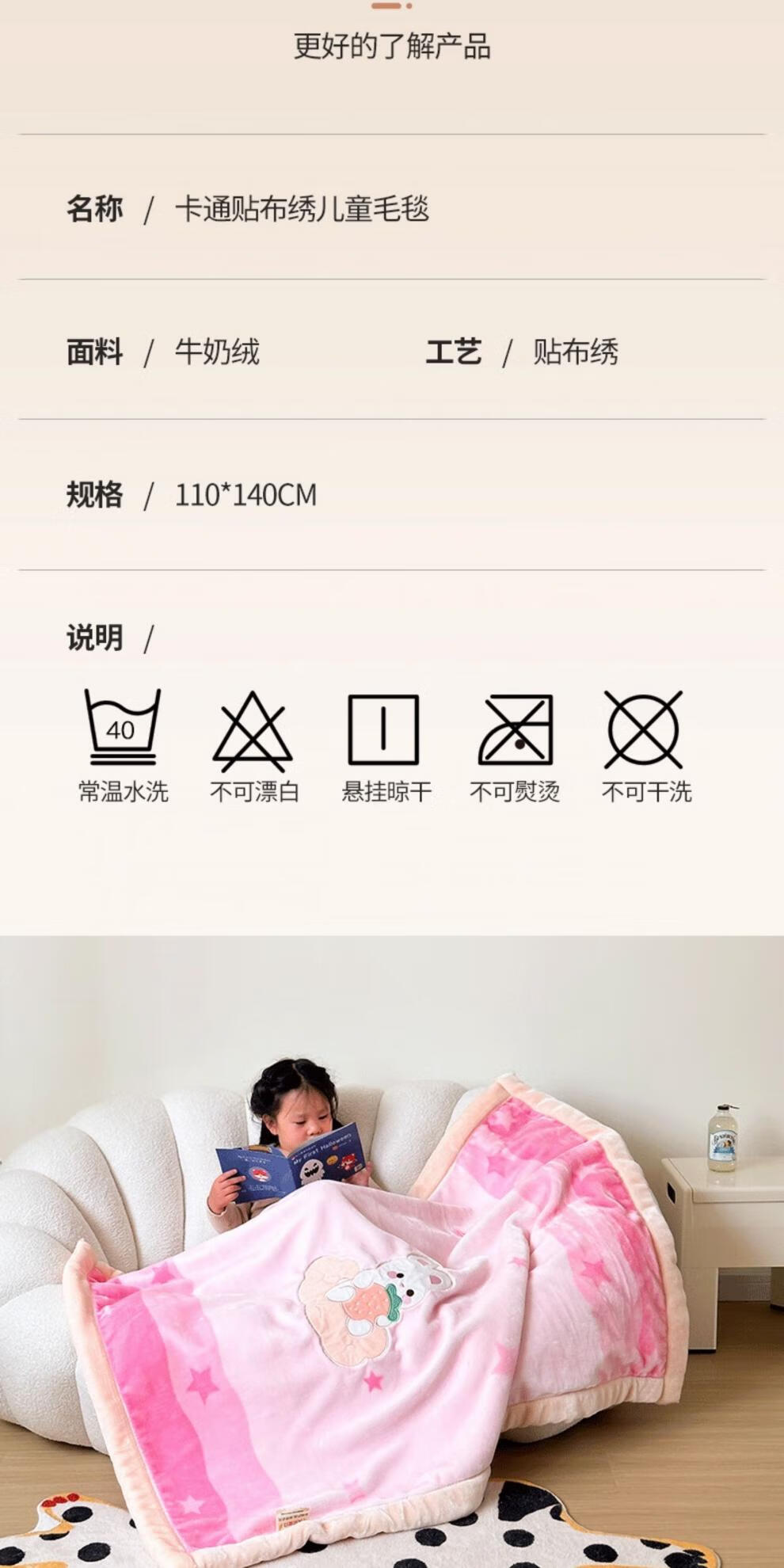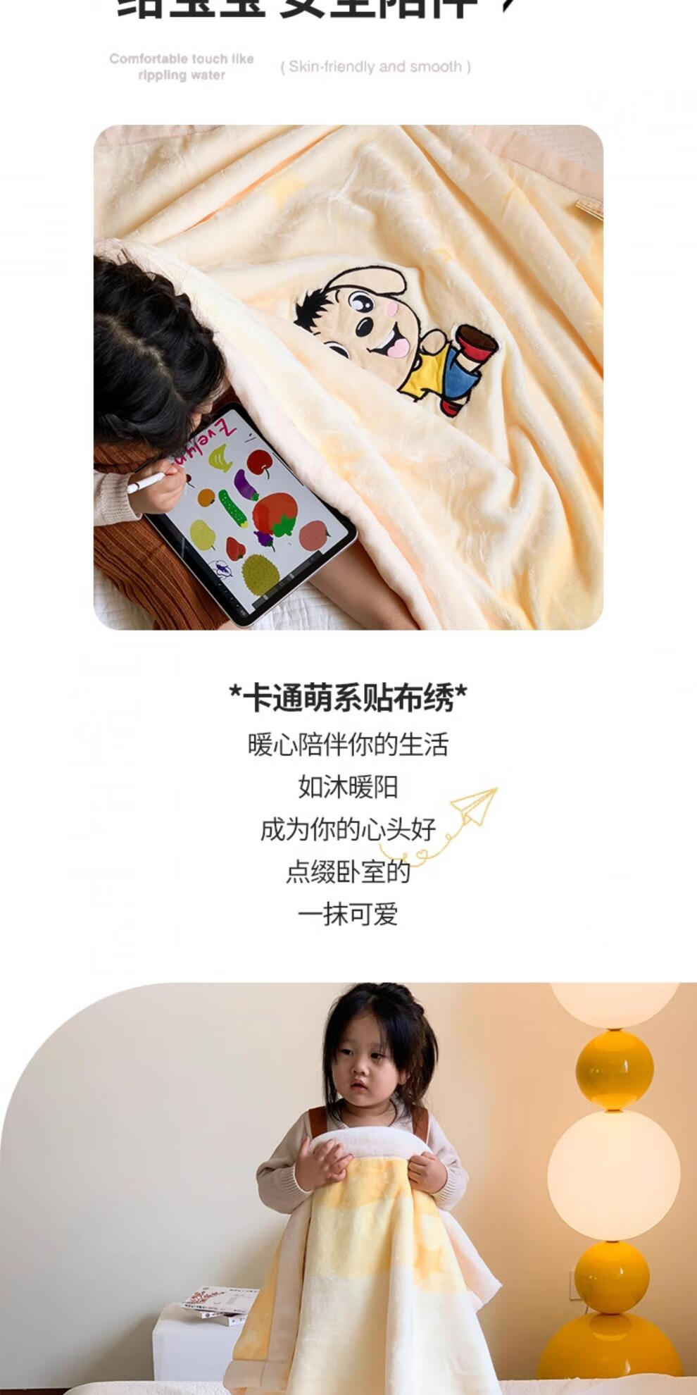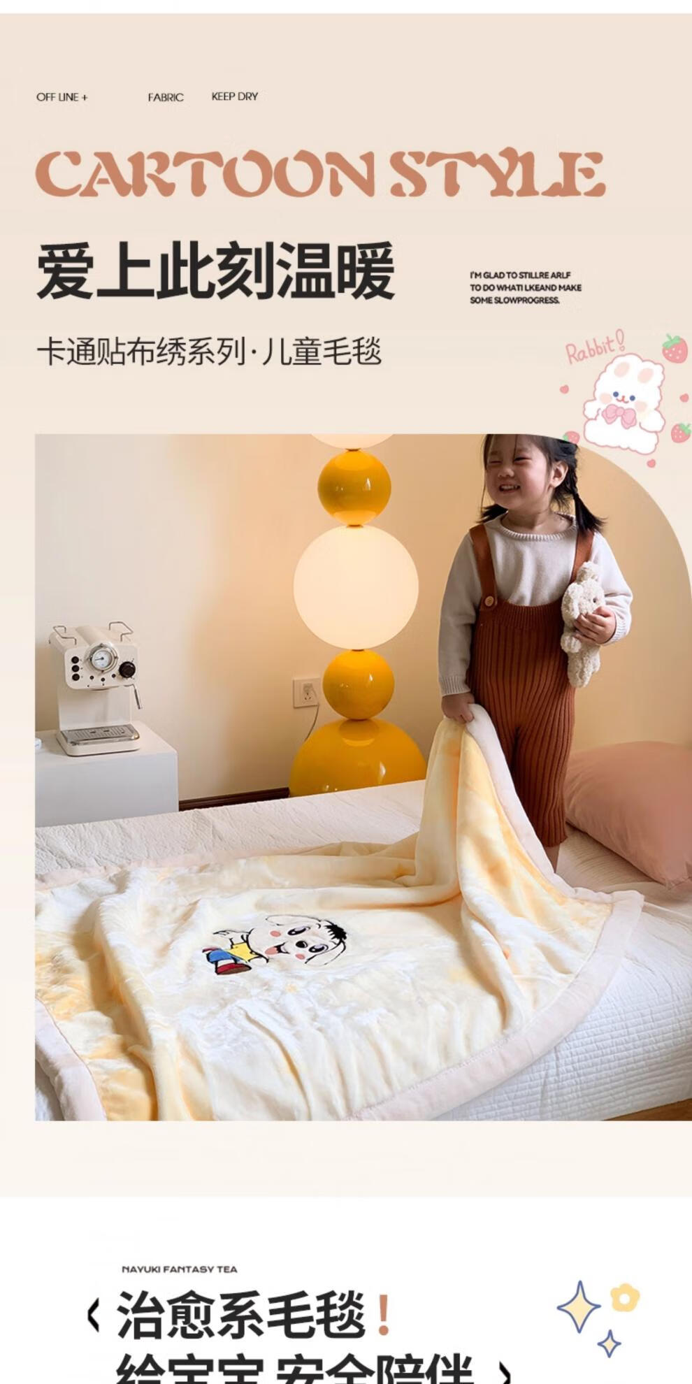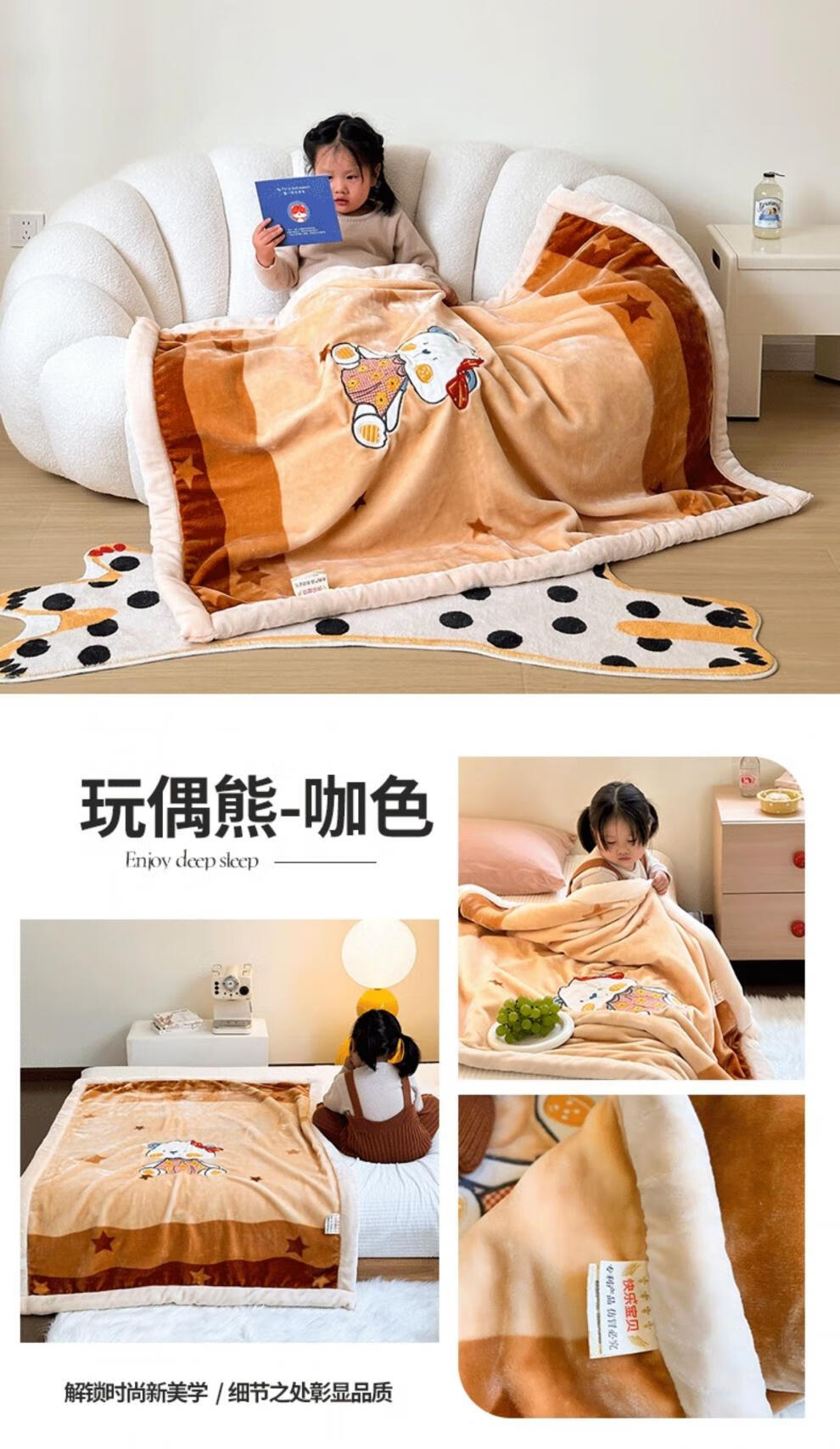 Guhe Children's Blanket Kindergarten Nap Winter Thickened Baby Double-layer Baby Cover Blanket Small Coral Velvet Cloud Blanket Premium Doll Bear-Coffee Color Appliqué 110cm*140cm Double-layer Thickened Cloud 2.8Jin Jin equals 0.5kg