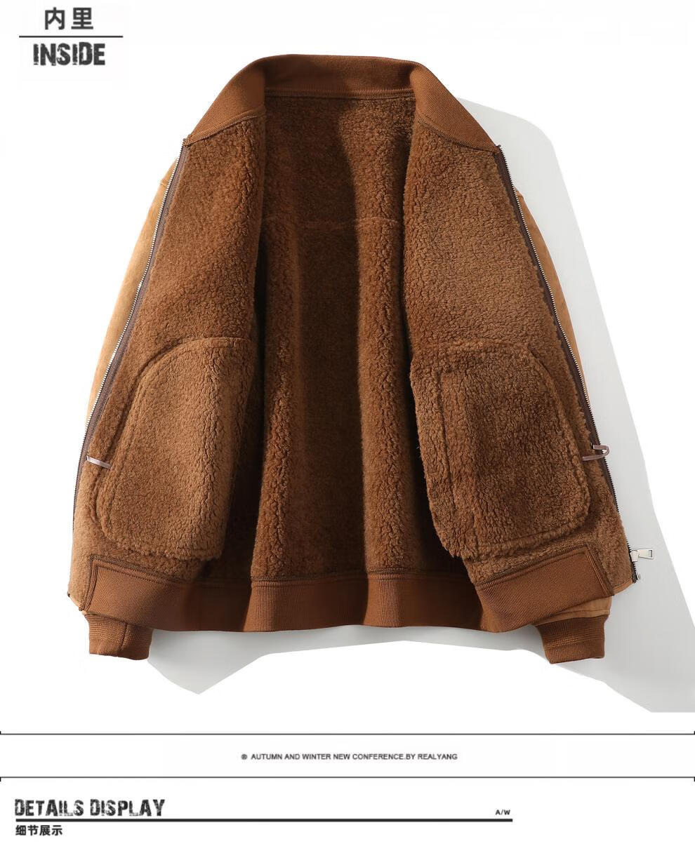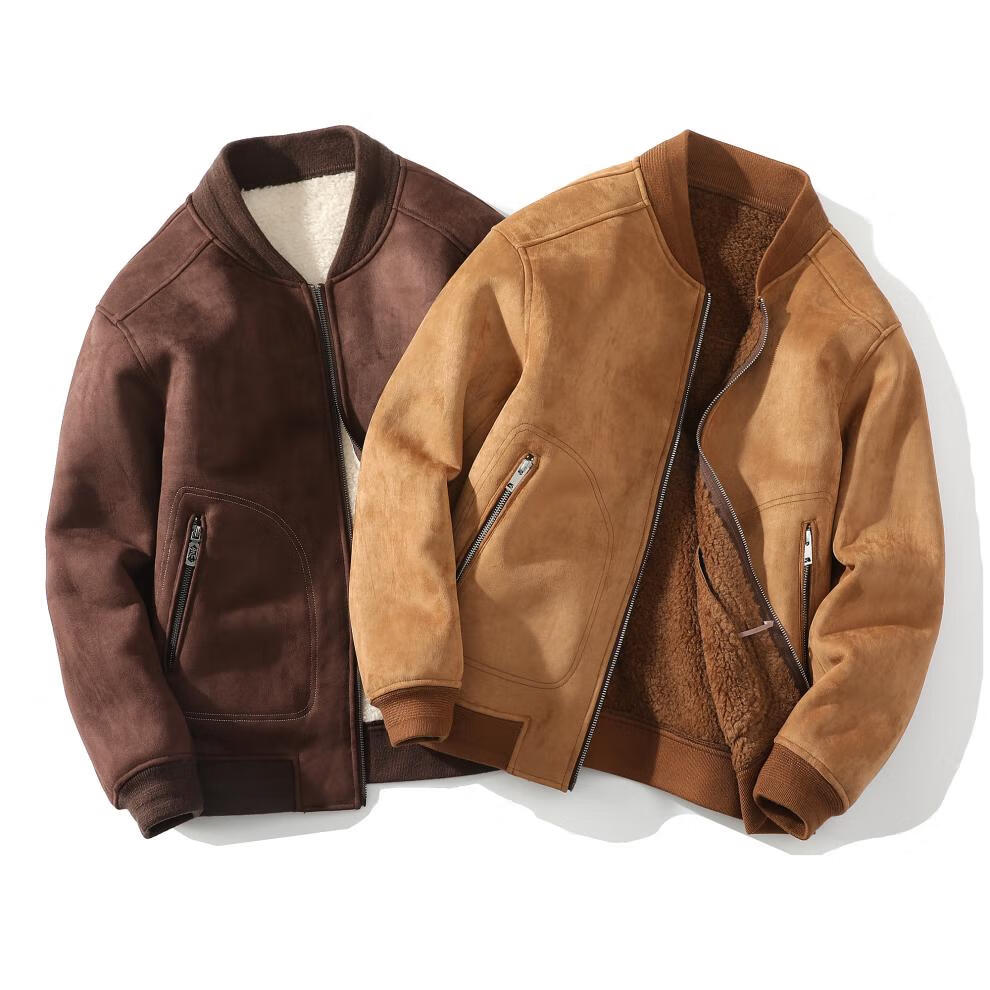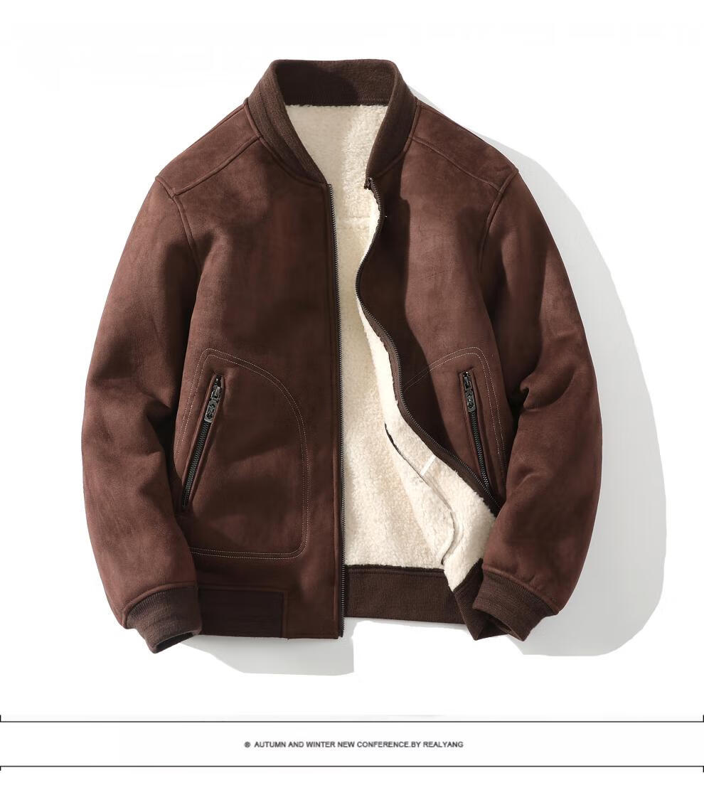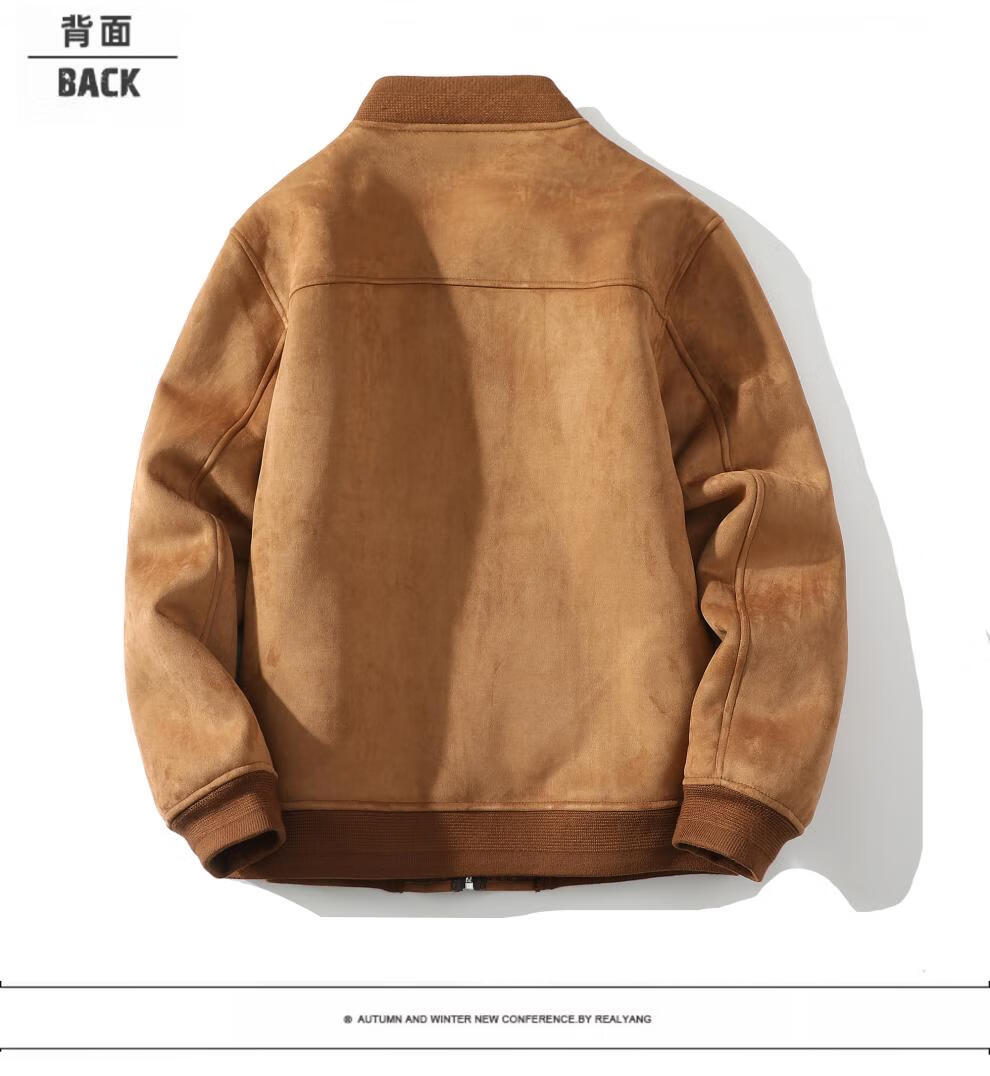 Yu Mengxindi frosted suede leather jacket for men in autumn and winter new suede wool jacket baseball jacket fur all-in-one jacket light brown L recommended 95/125 Jin Jin equals 0.5 kg