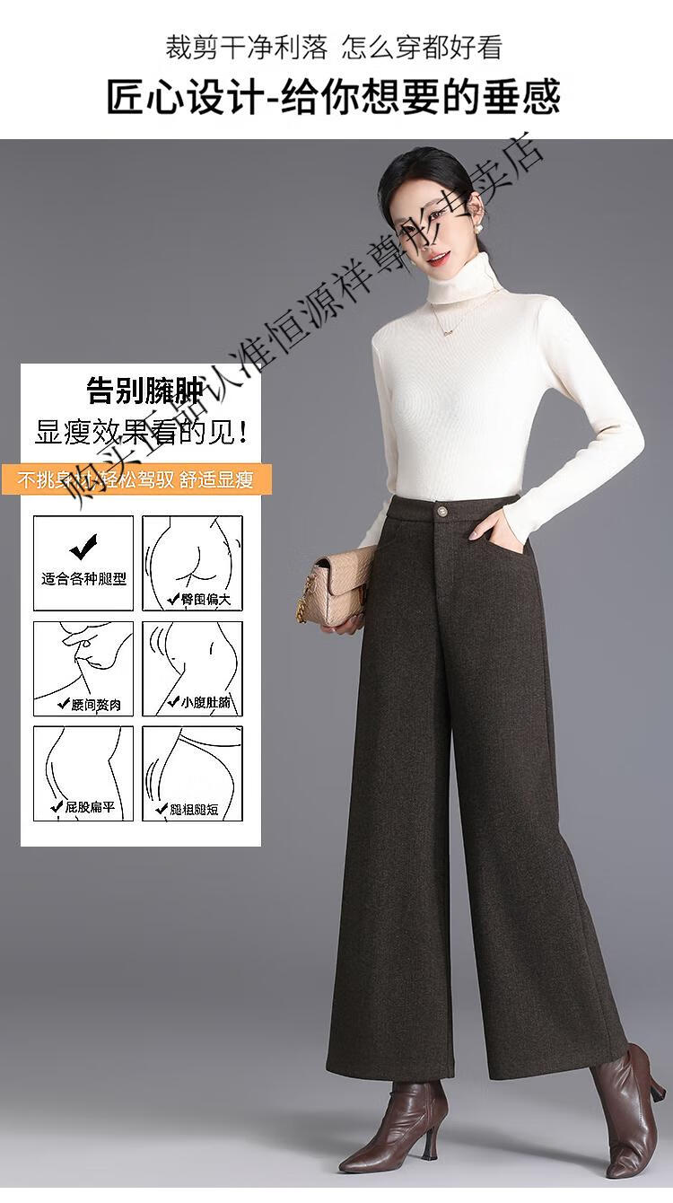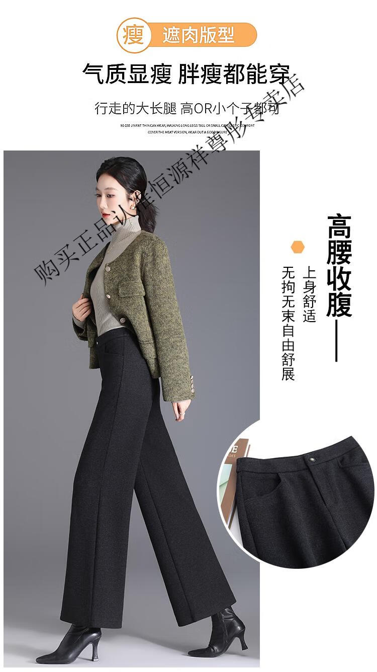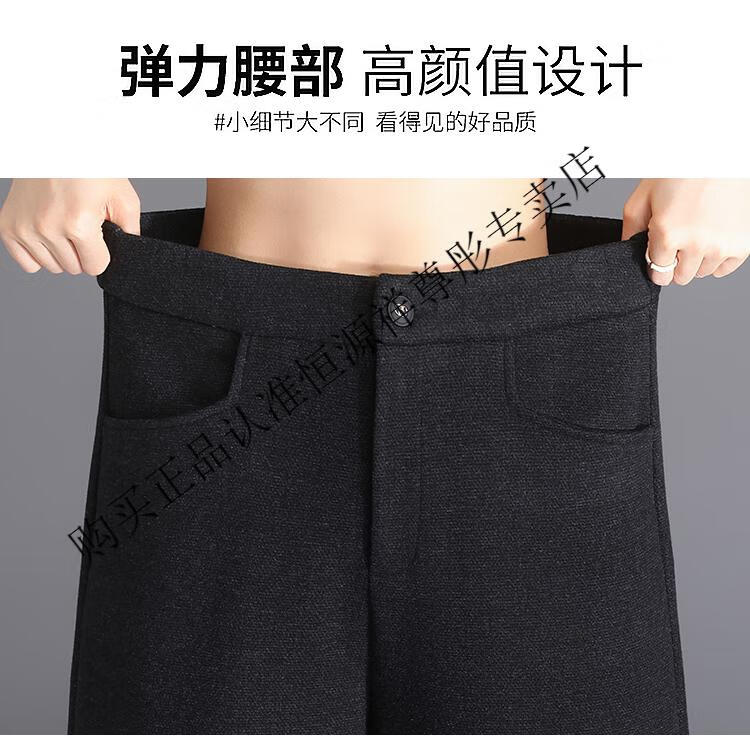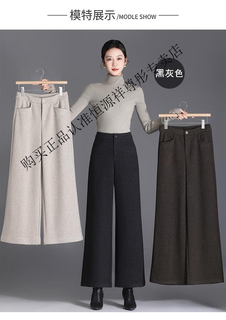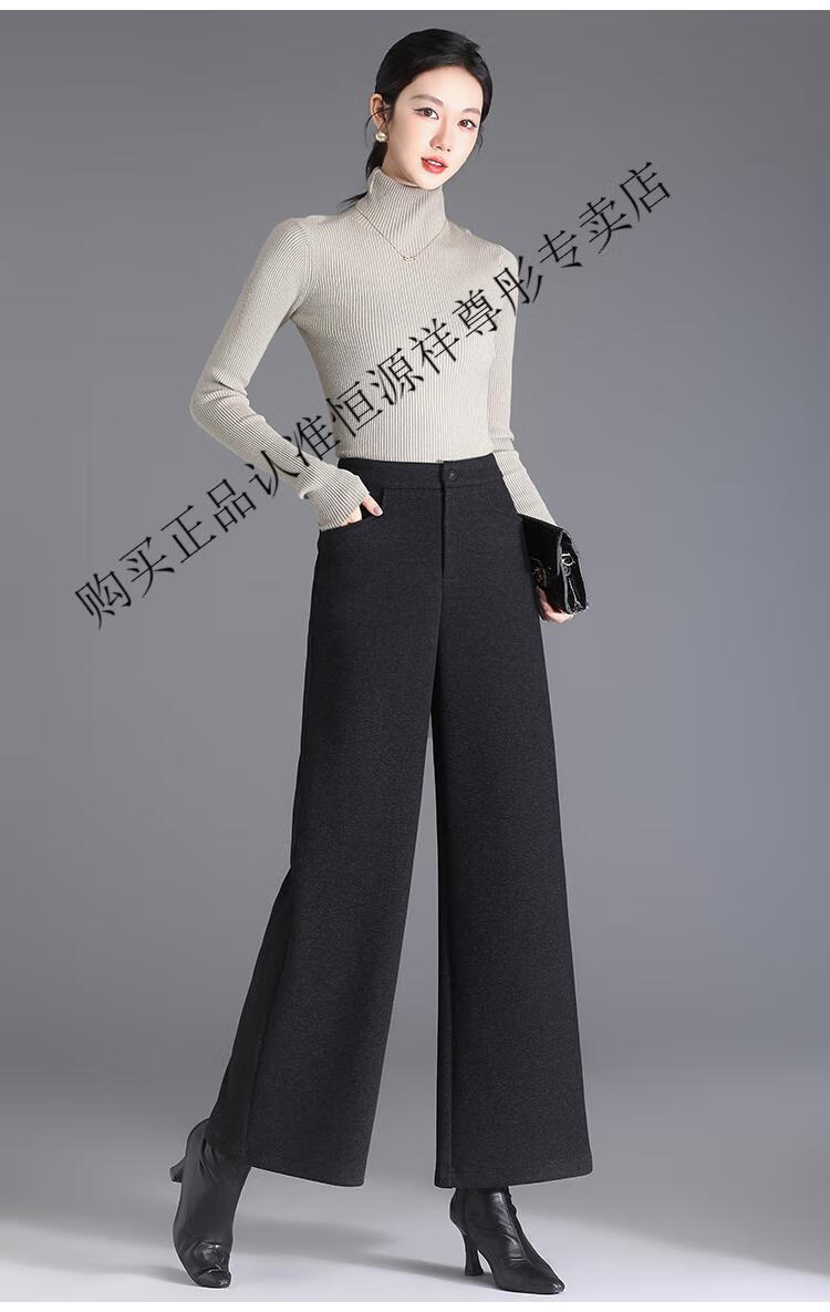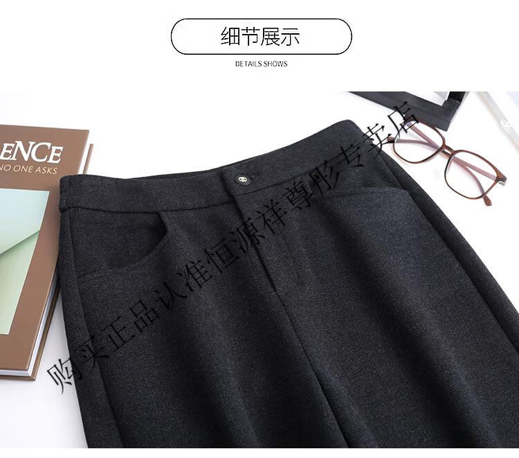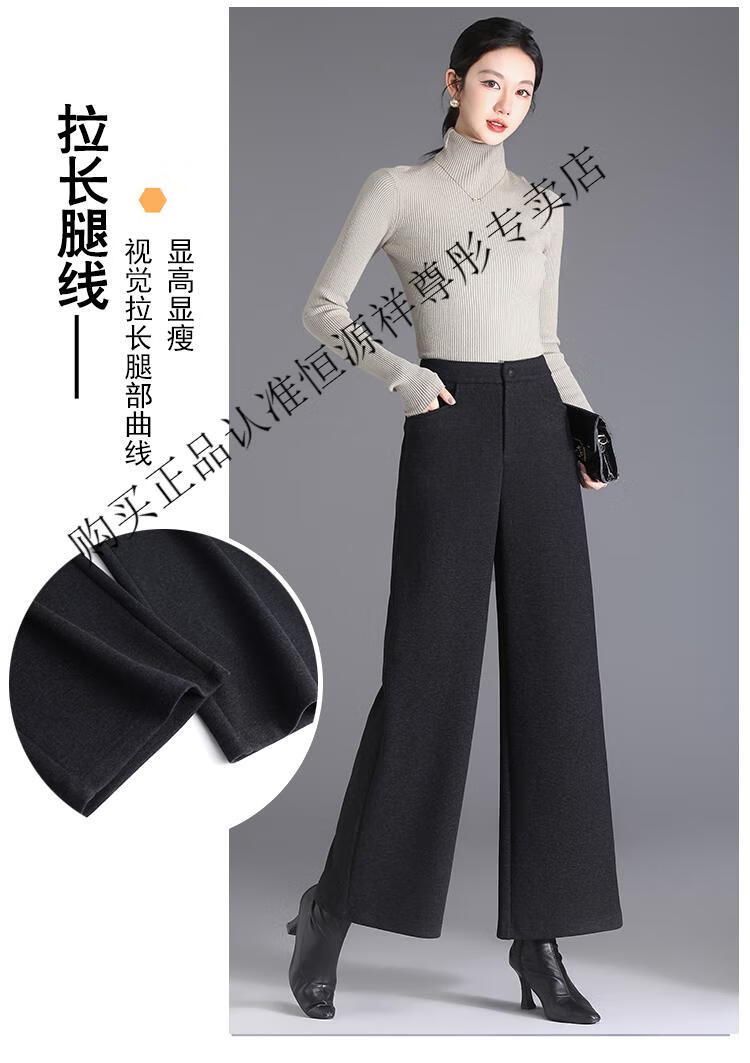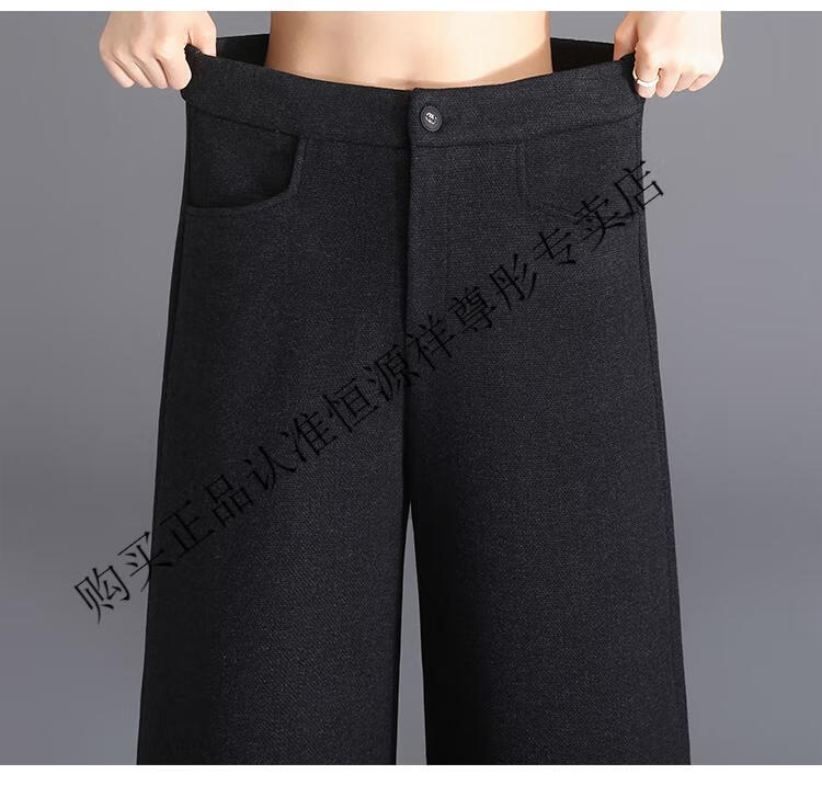 Hengyuanxiang Woolen Pants Women's 2026 New Autumn and Winter High Waisted Loose Casual Suit Pants Thickened Warm Slimming Wide Leg Pants Black Gray Pants L 28/100-110Jin Jin equals 0.5 kg