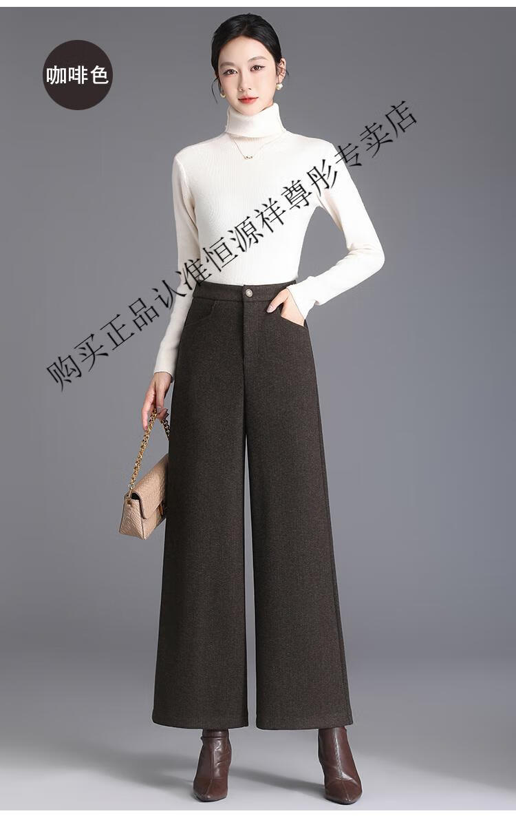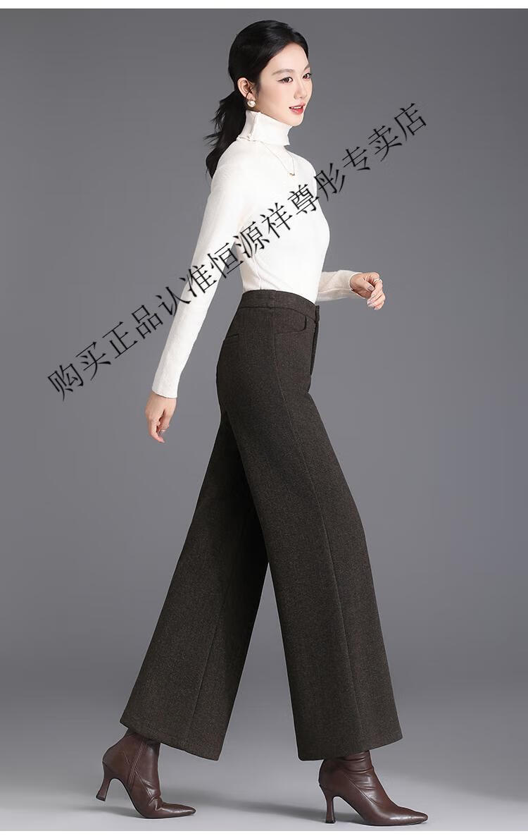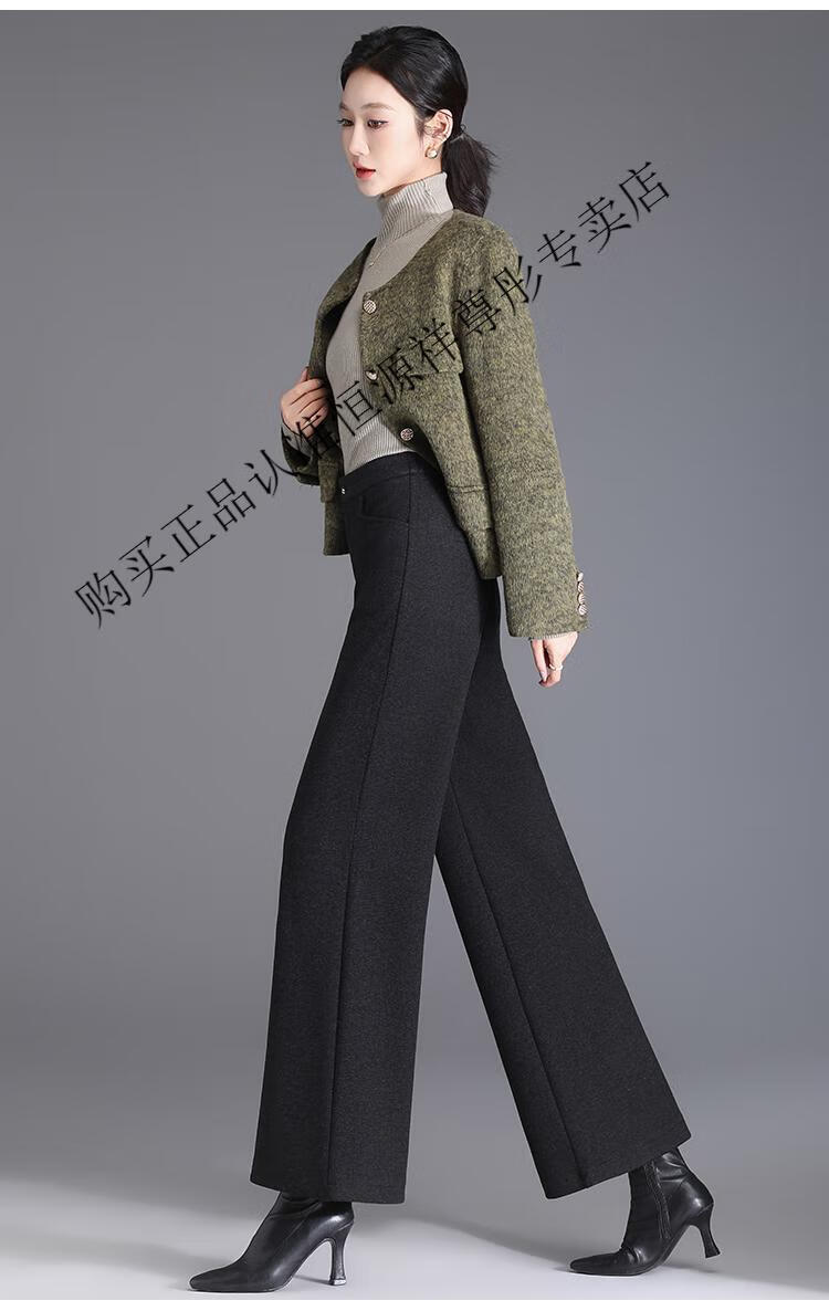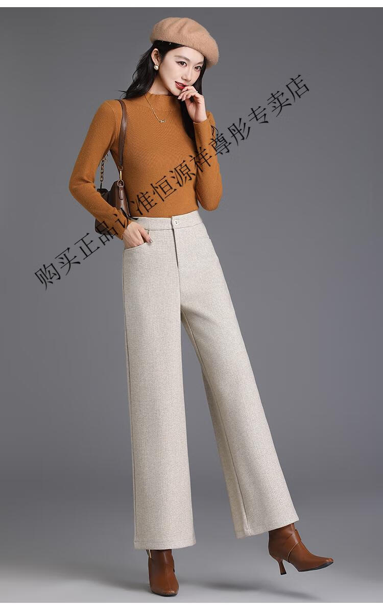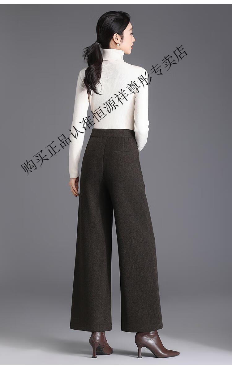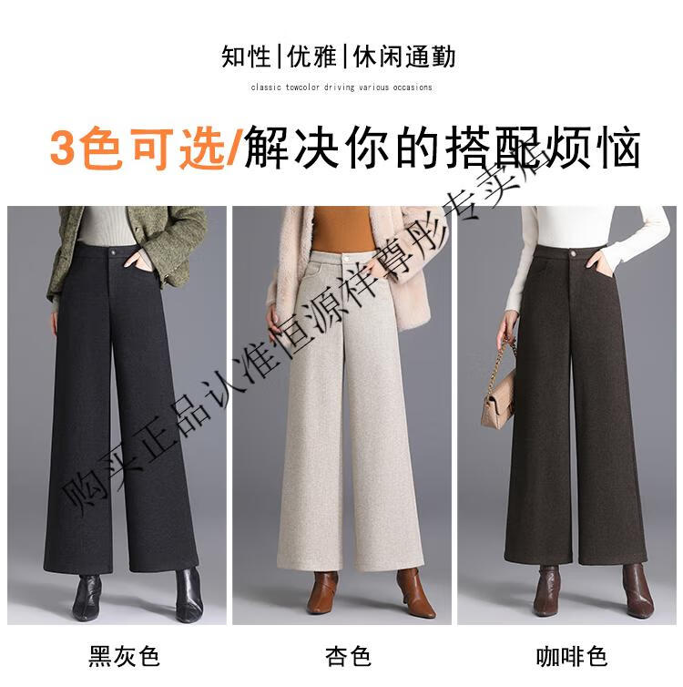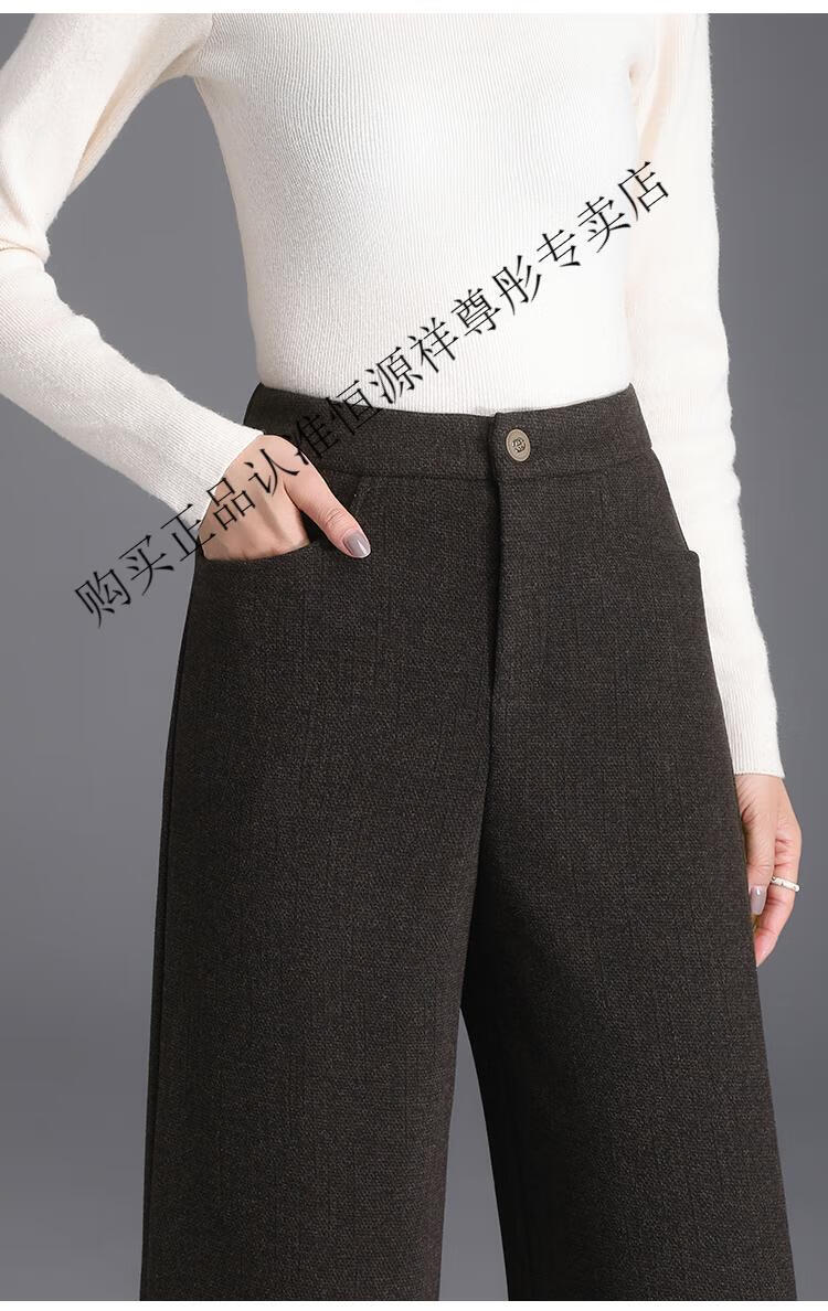 Hengyuanxiang Woolen Pants Women's 2026 New Autumn and Winter High Waisted Loose Casual Suit Pants Thickened Warm Slimming Wide Leg Pants Black Gray Pants L 28/100-110Jin Jin equals 0.5 kg
