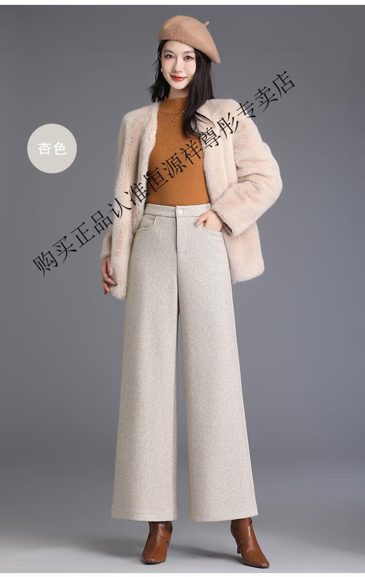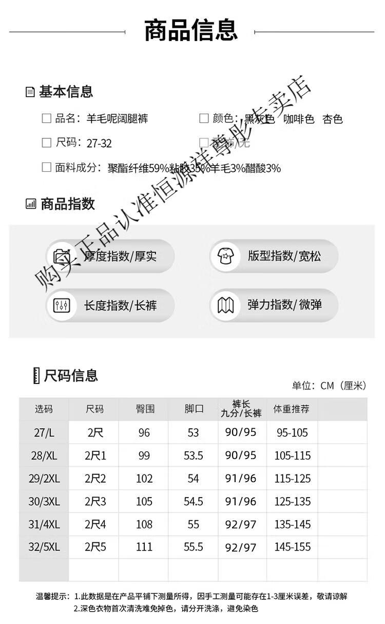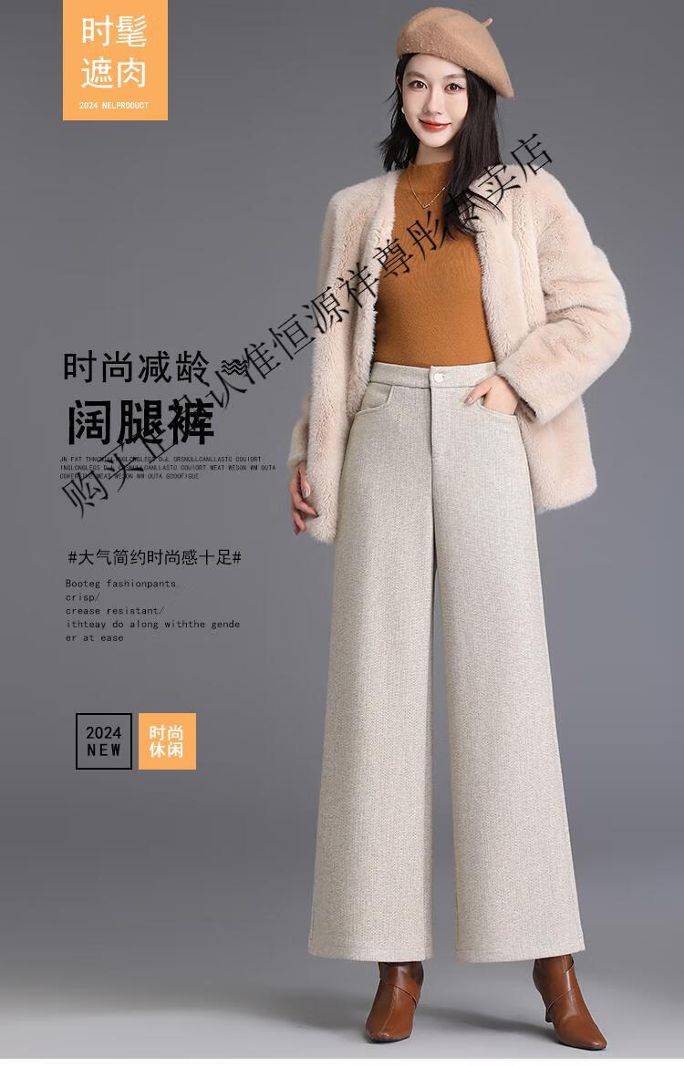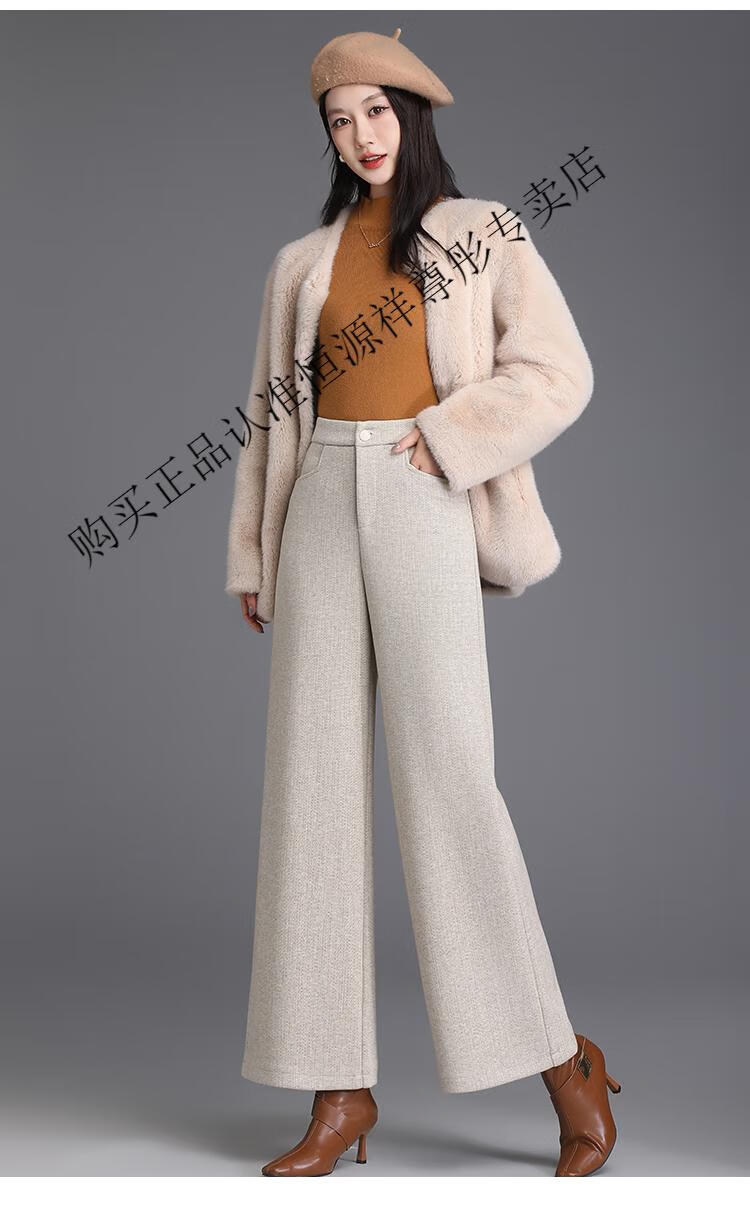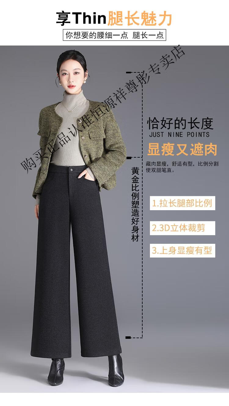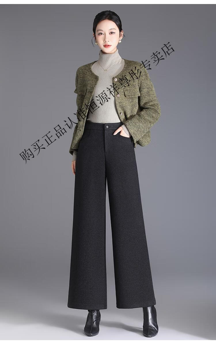 Hengyuanxiang Woolen Pants Women's 2026 New Autumn and Winter High Waisted Loose Casual Suit Pants Thickened Warm Slimming Wide Leg Pants Black Gray Pants L 28/100-110Jin Jin equals 0.5 kg