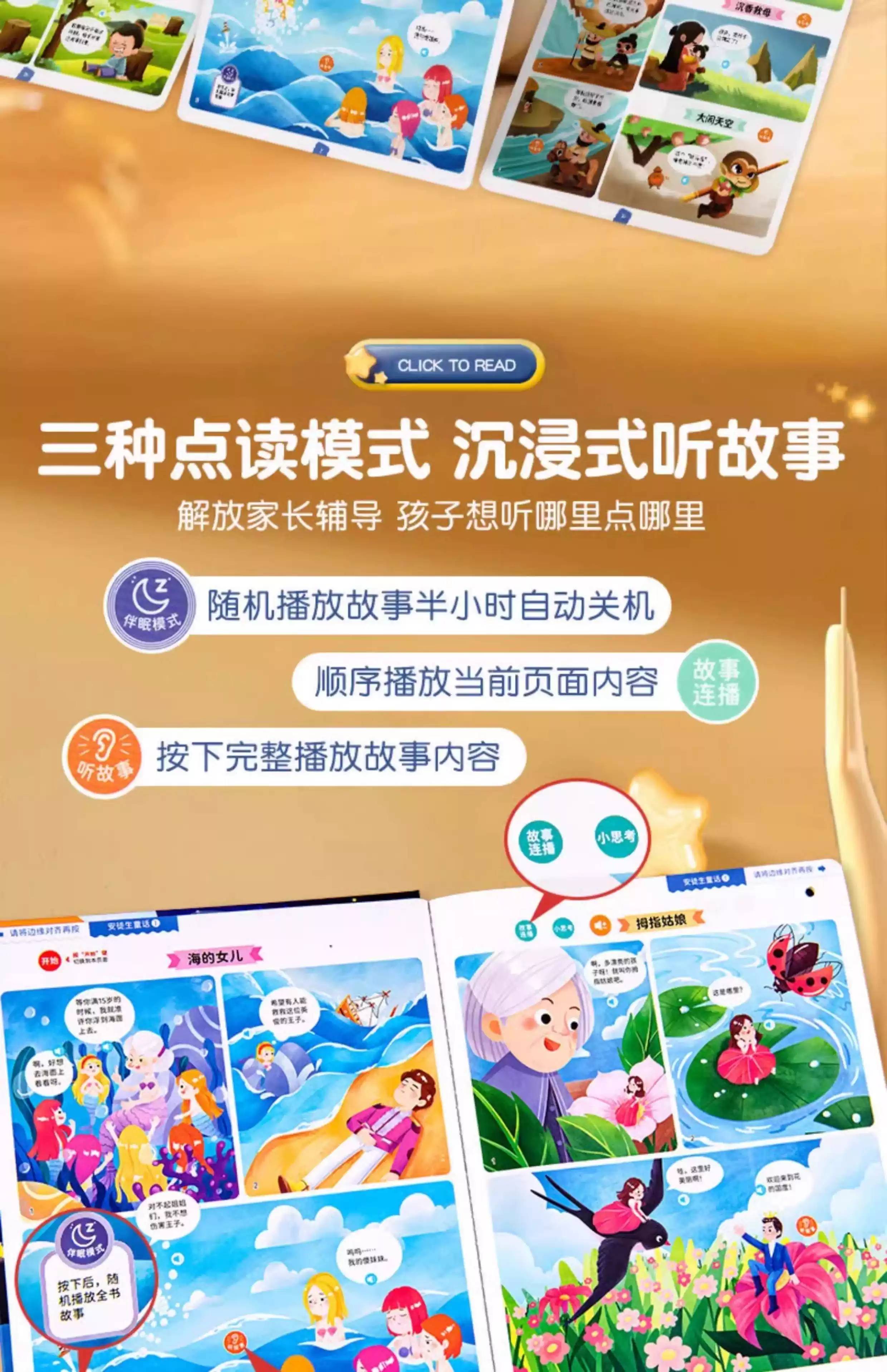 Qilicai Talking Bedtime Stories for Infants, Early Education, Enlightenment, Baby Reading Machine Audio Book, Audio Picture Book, Selected 145 Bedtime Stories, Multiple Sections
