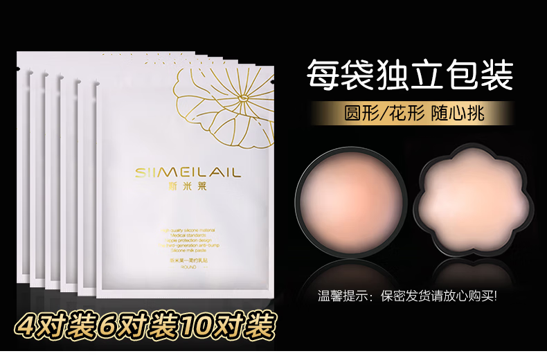Smilais Micai Breast Paste Invisible Summer Breast Paste Women's Wedding Dress Special for Big Breasts Showing Small Breasts Anti-Bumping Silicone Underwear Suspenders 10 Pairs of Flowers - Fair Skin