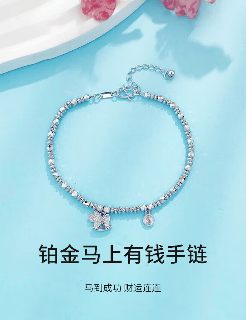 Chinese jewelry, make money immediately, platinum bracelet for women, platinum Trojan horse bouncy bead bracelet, birthday and anniversary gift for girlfriend and wife, platinum make money immediately, bracelet + brand gift box, gold weight is about 4.5g