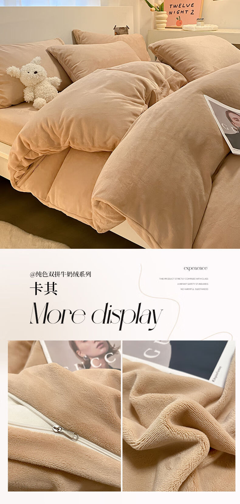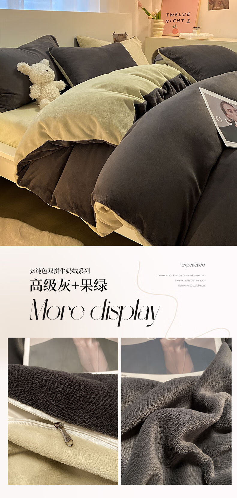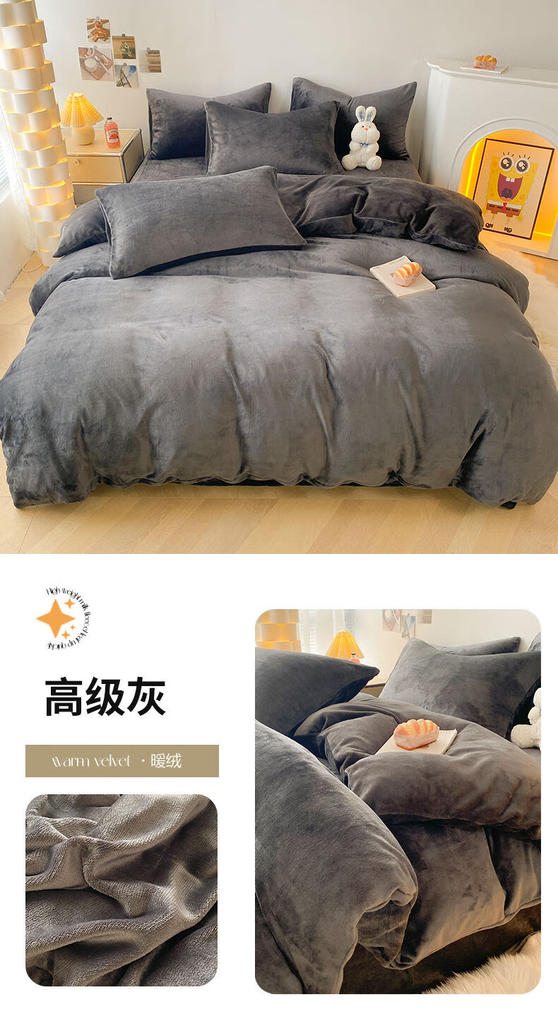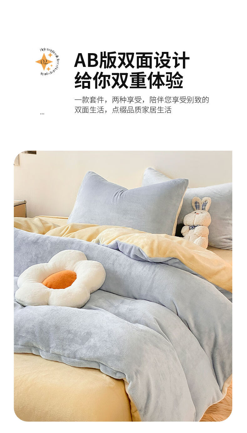 Blanket quilt winter four-piece milk velvet bed thickened coral velvet double-sided plus velvet flannel three-piece bed set baby blue + light gray double-sided warm velvet skin-friendly and delicate bed cover 220x240cm milk velvet quilt cover single piece