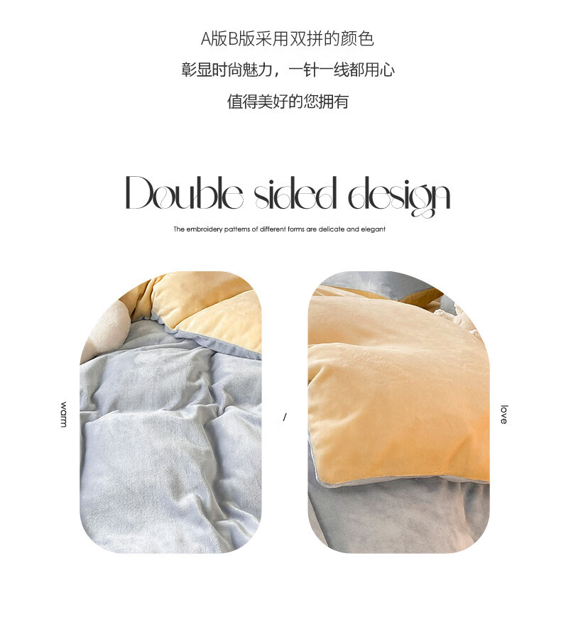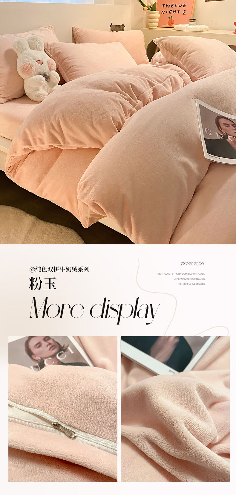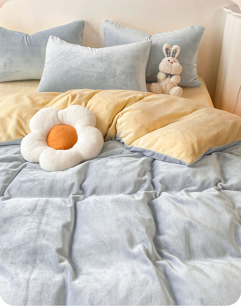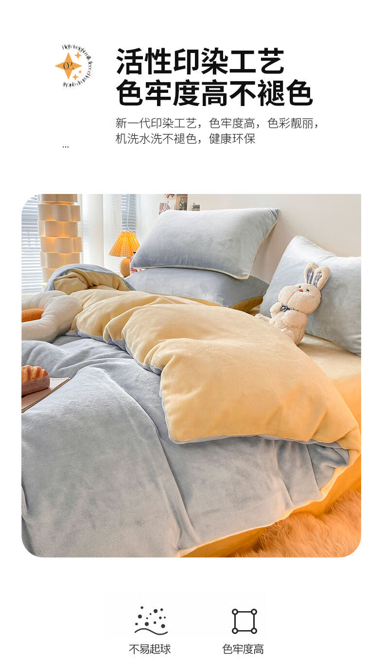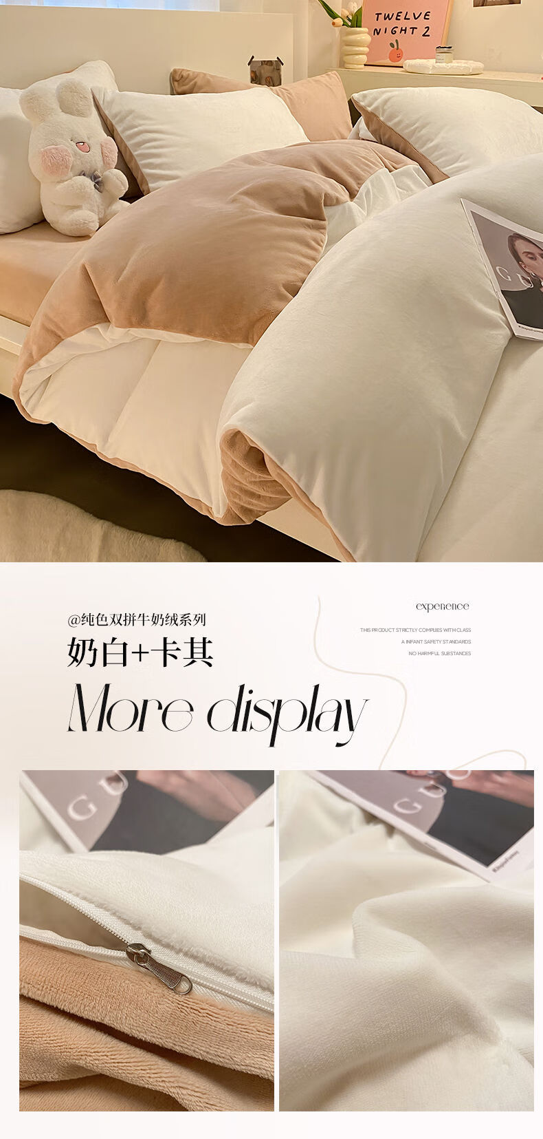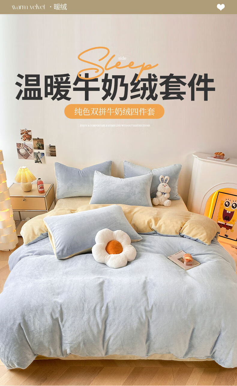 Blanket quilt winter four-piece milk velvet bed thickened coral velvet double-sided plus velvet flannel three-piece bed set baby blue + light gray double-sided warm velvet skin-friendly and delicate bed cover 220x240cm milk velvet quilt cover single piece