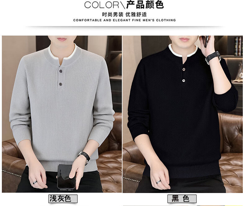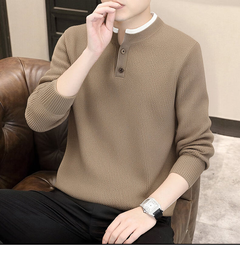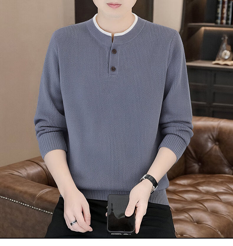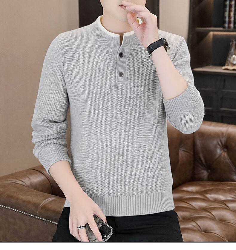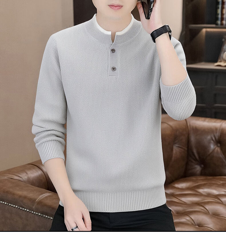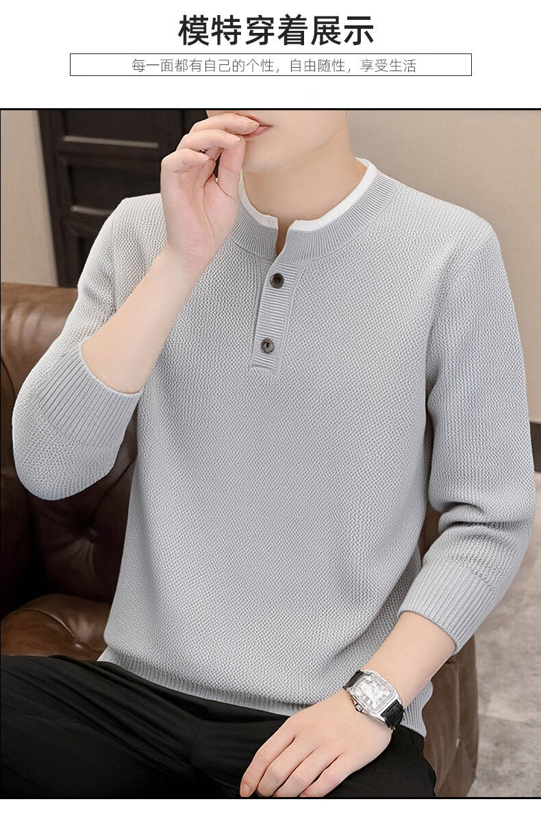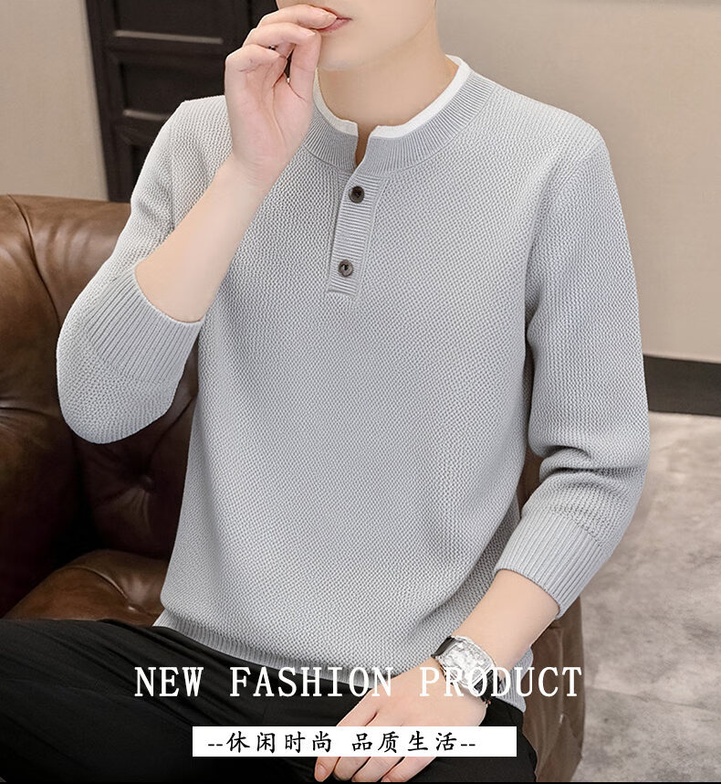 Pierre Cardin Henry Collar Sweater Men's Retro Casual Fake Two-piece Knitted Sweater Men's Mature and Stable Men's Warm Bottoming Shirt Men's Light Gray M