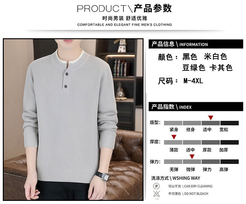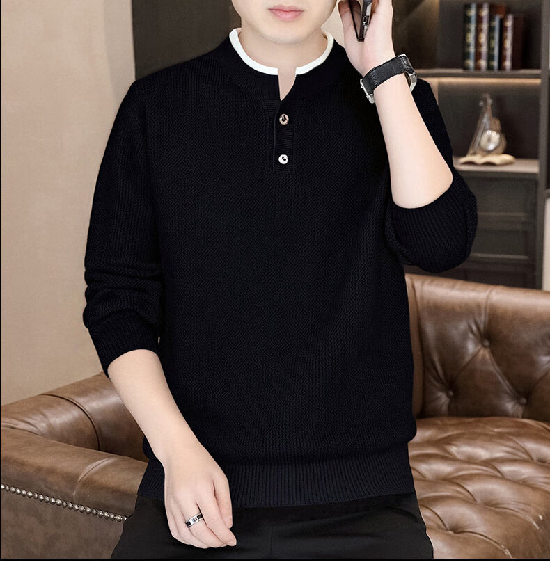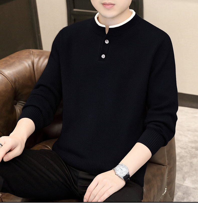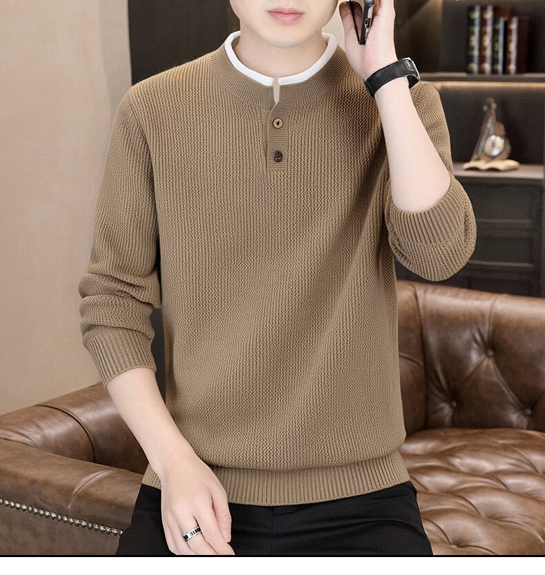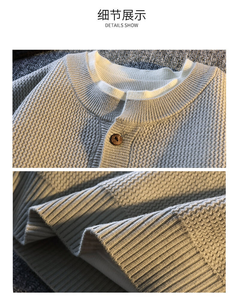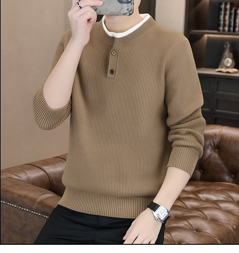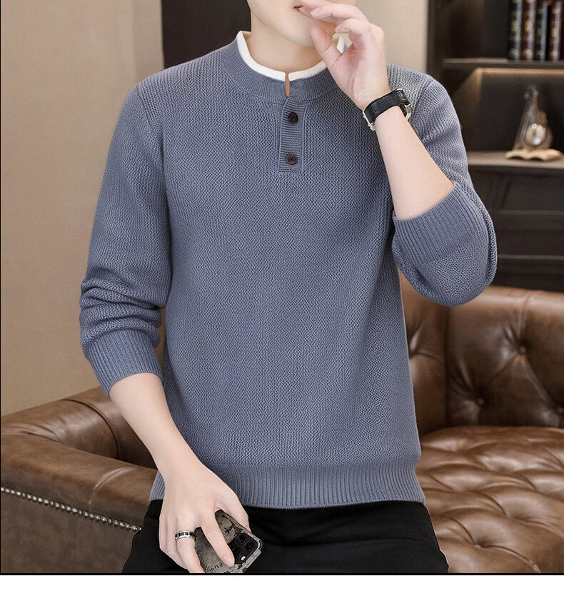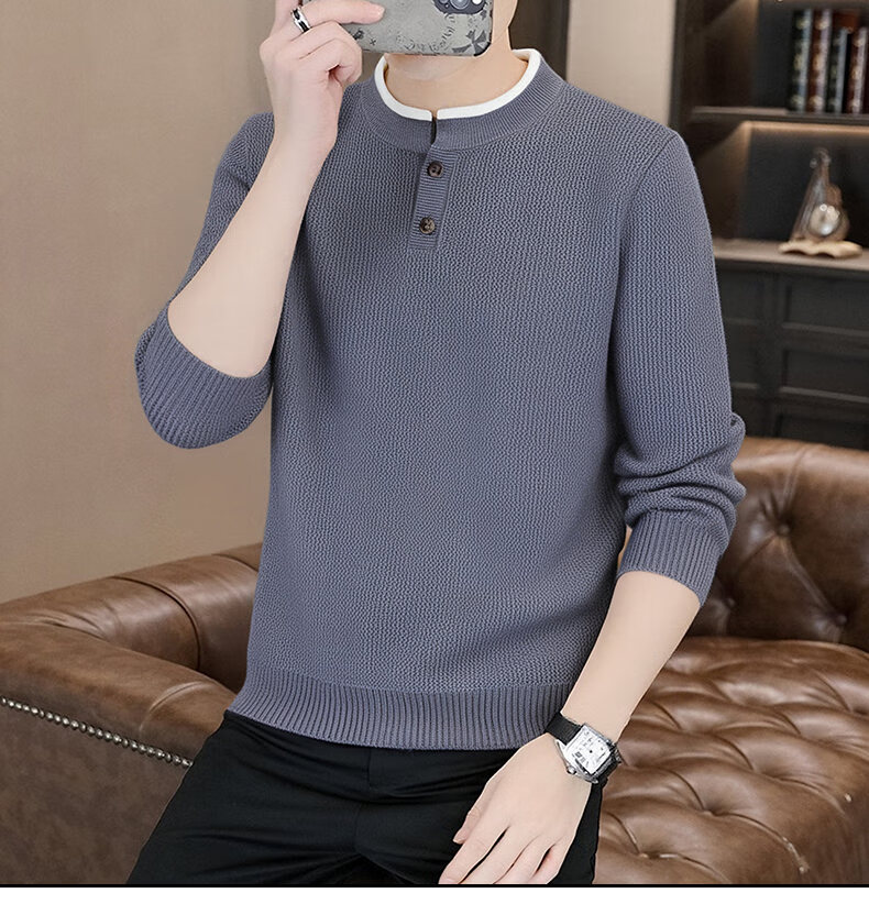 Pierre Cardin Henry Collar Sweater Men's Retro Casual Fake Two-piece Knitted Sweater Men's Mature and Stable Men's Warm Bottoming Shirt Men's Light Gray M