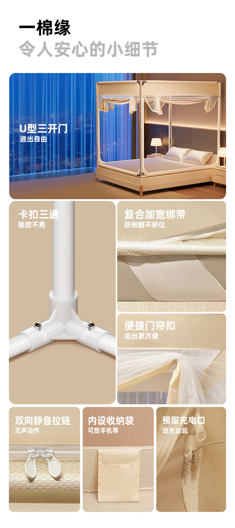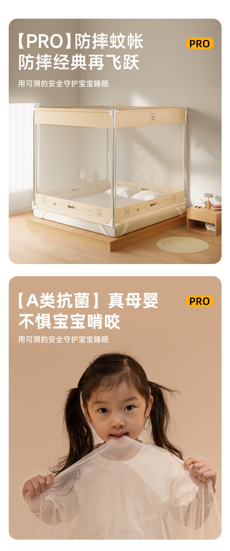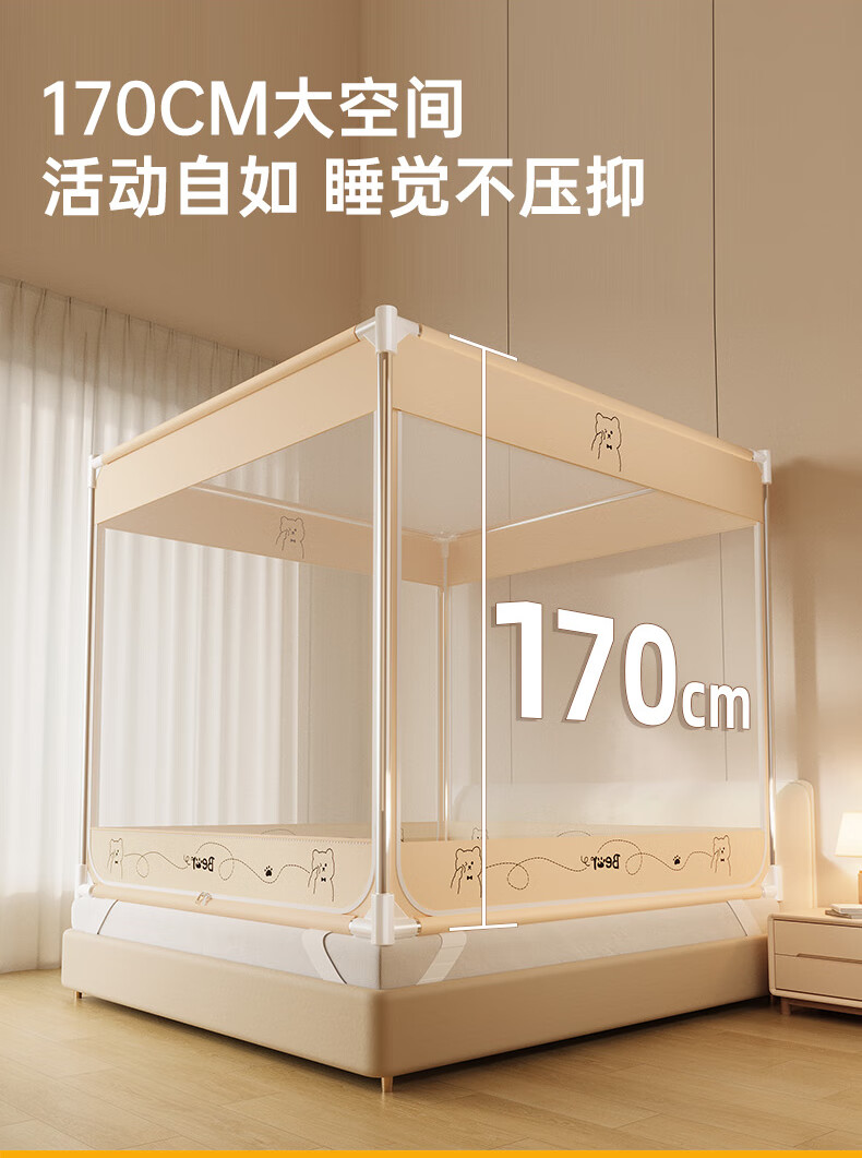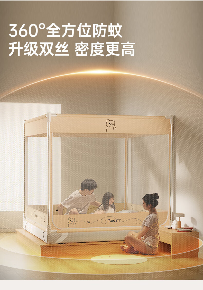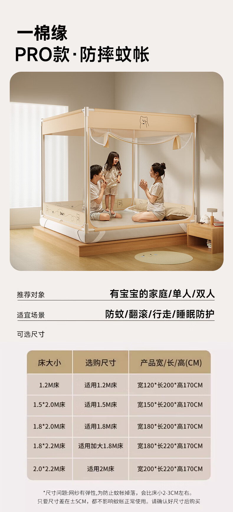 A cotton edge anti-fall mosquito net baby full cover type 2025 new home bedroom children to prevent children from falling out of bed for home use The following options are fitted sheets - wrapped mattress fixed - Suitable for 200*220cm double bed type A safety-free