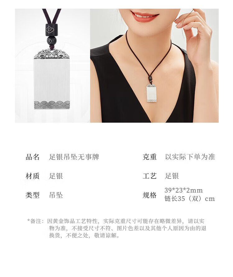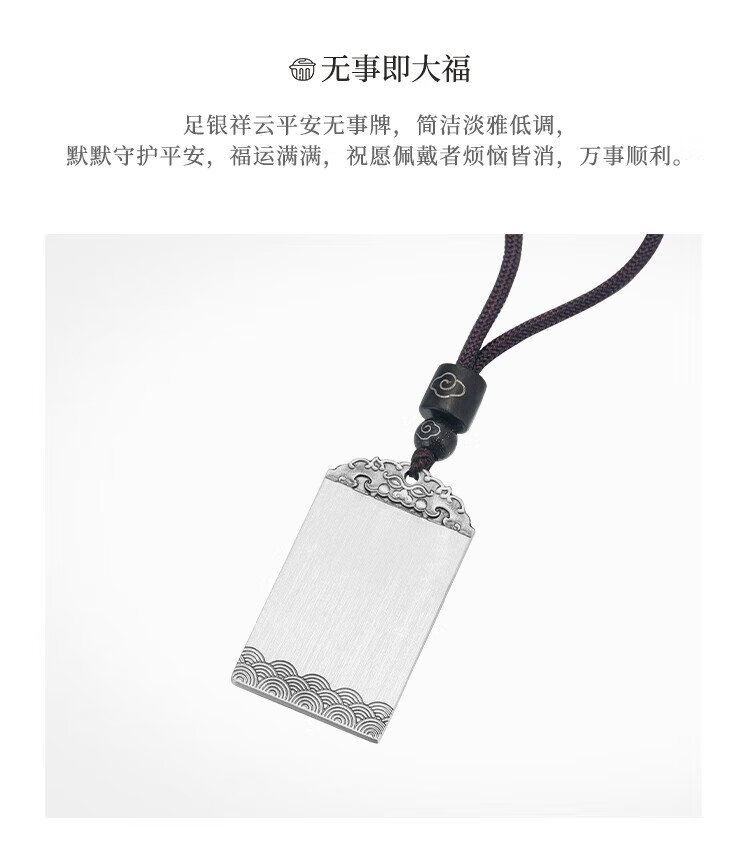 Laomiao silver pendant, pure silver Ping An Wu Shi brand necklace, men's and women's silver jewelry, a birthday gift for my girlfriend's mother, broken ice Wu Shi brand pendant, about 17.21g