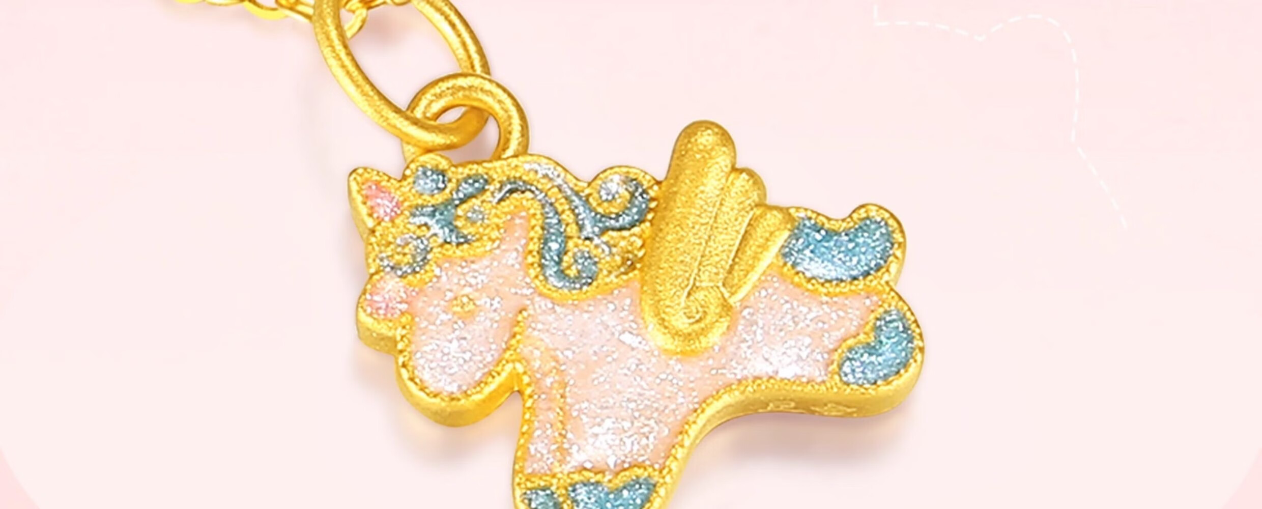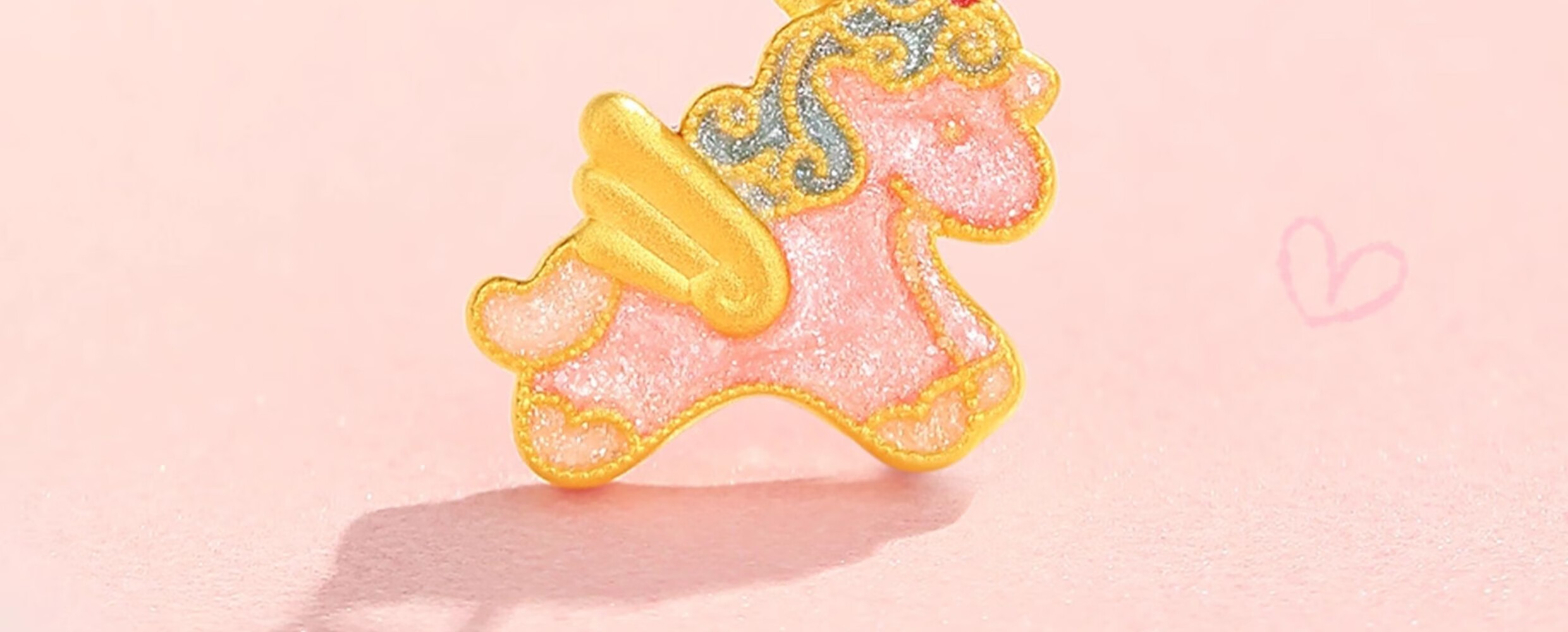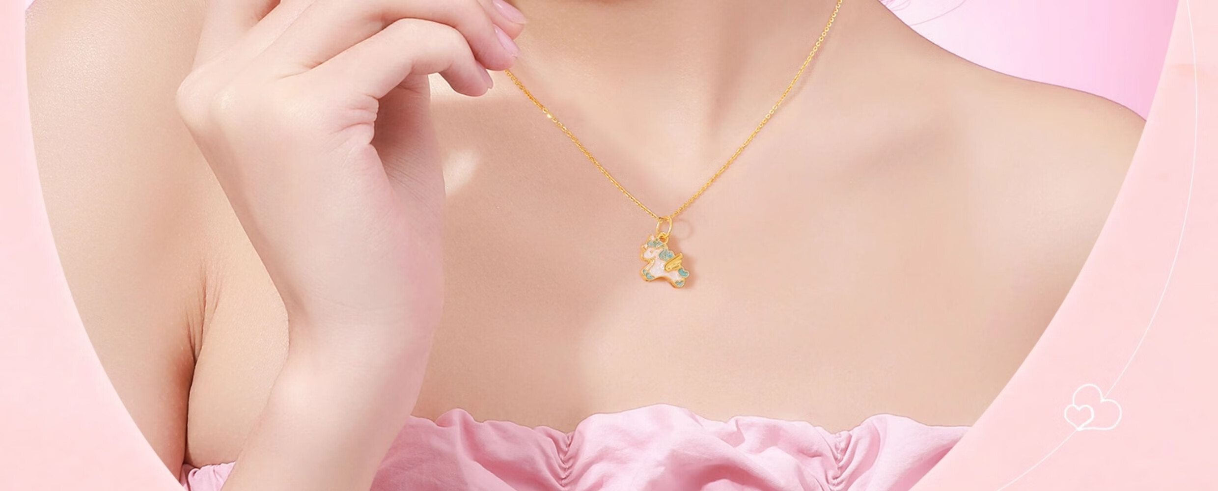 CHINA GOLD Gold Necklace Women's Foot Gold Unicorn Pony Pendant Zodiac Horse Birthday Gift for Girlfriend and Wife L Romantic Unicorn Pendant About 0.4g with Silver Chain Selection Gift Box