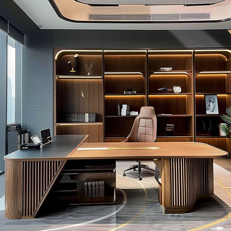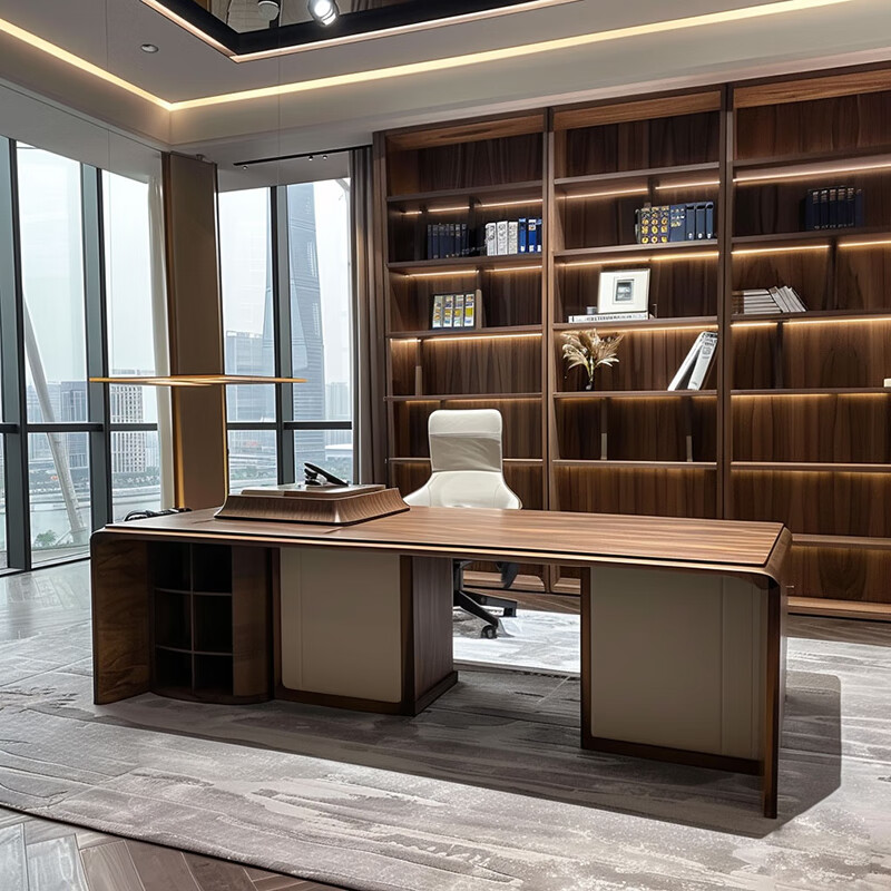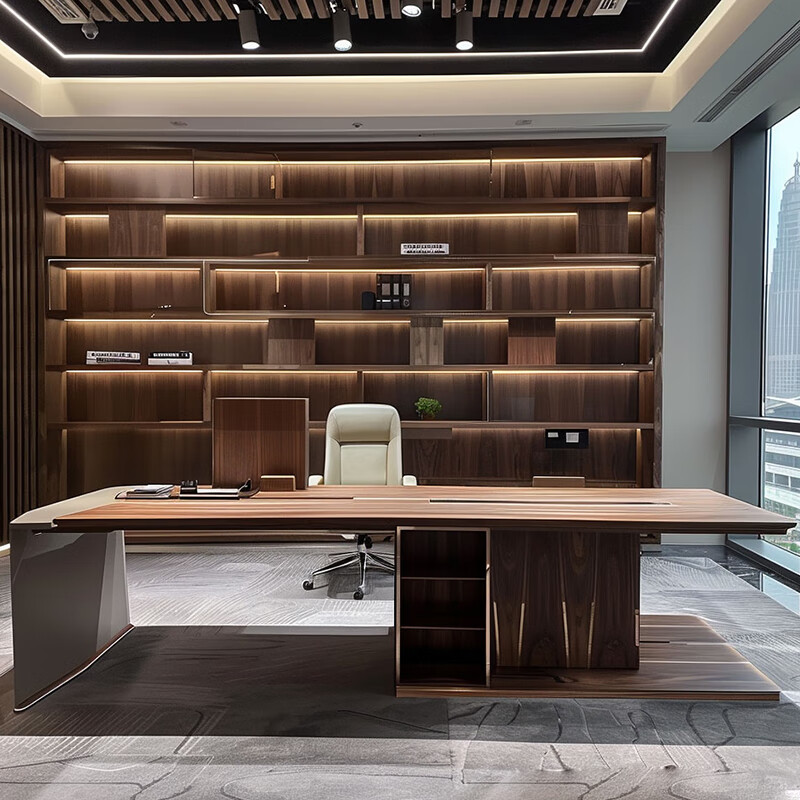 Italian minimalist solid wood boss desk office desk and chairs black walnut executive desk high-end executive desk office size customization (contact customer service)