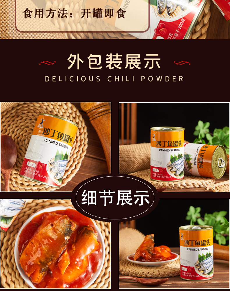Canned sardines in tomato sauce ready-to-eat seafood sardines in tomato sauce 425g*2 cans