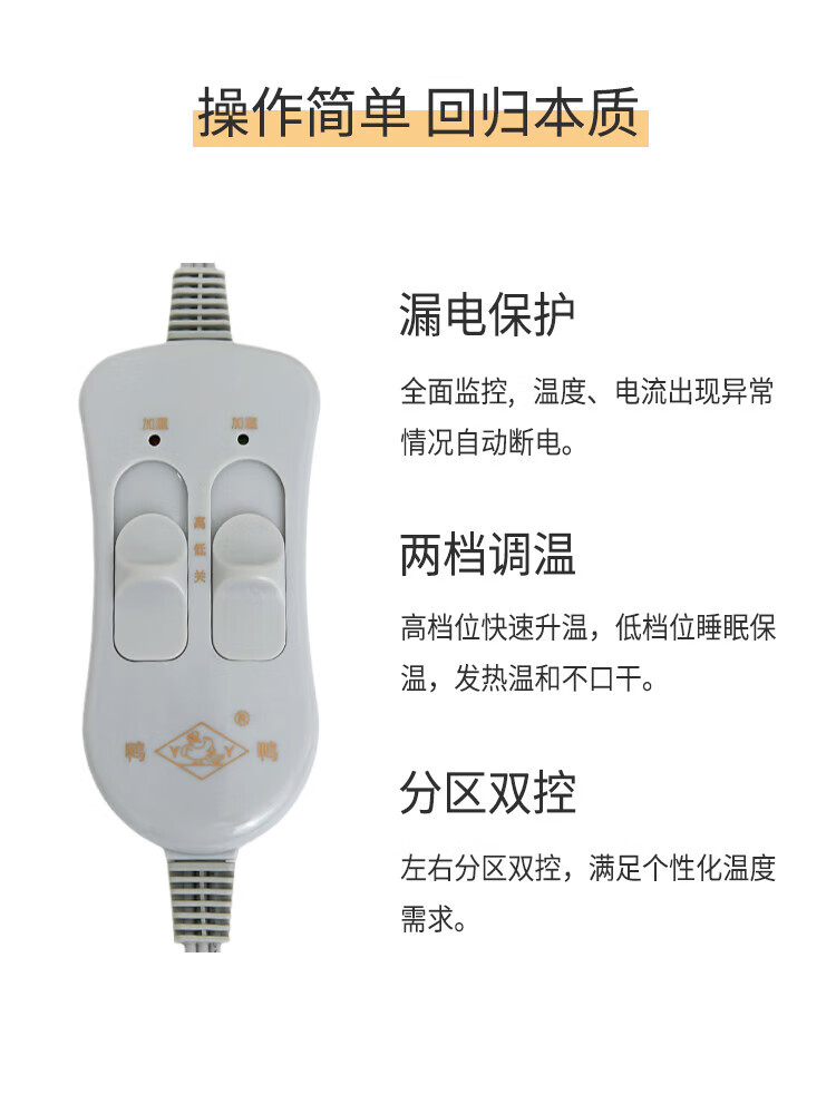 Ding Ya Electric Duck Duck V low-voltage electric blanket electric mattress single double double control safe and non-electric shock widened and thickened children's bed model 0.8*0.5 meters milk down