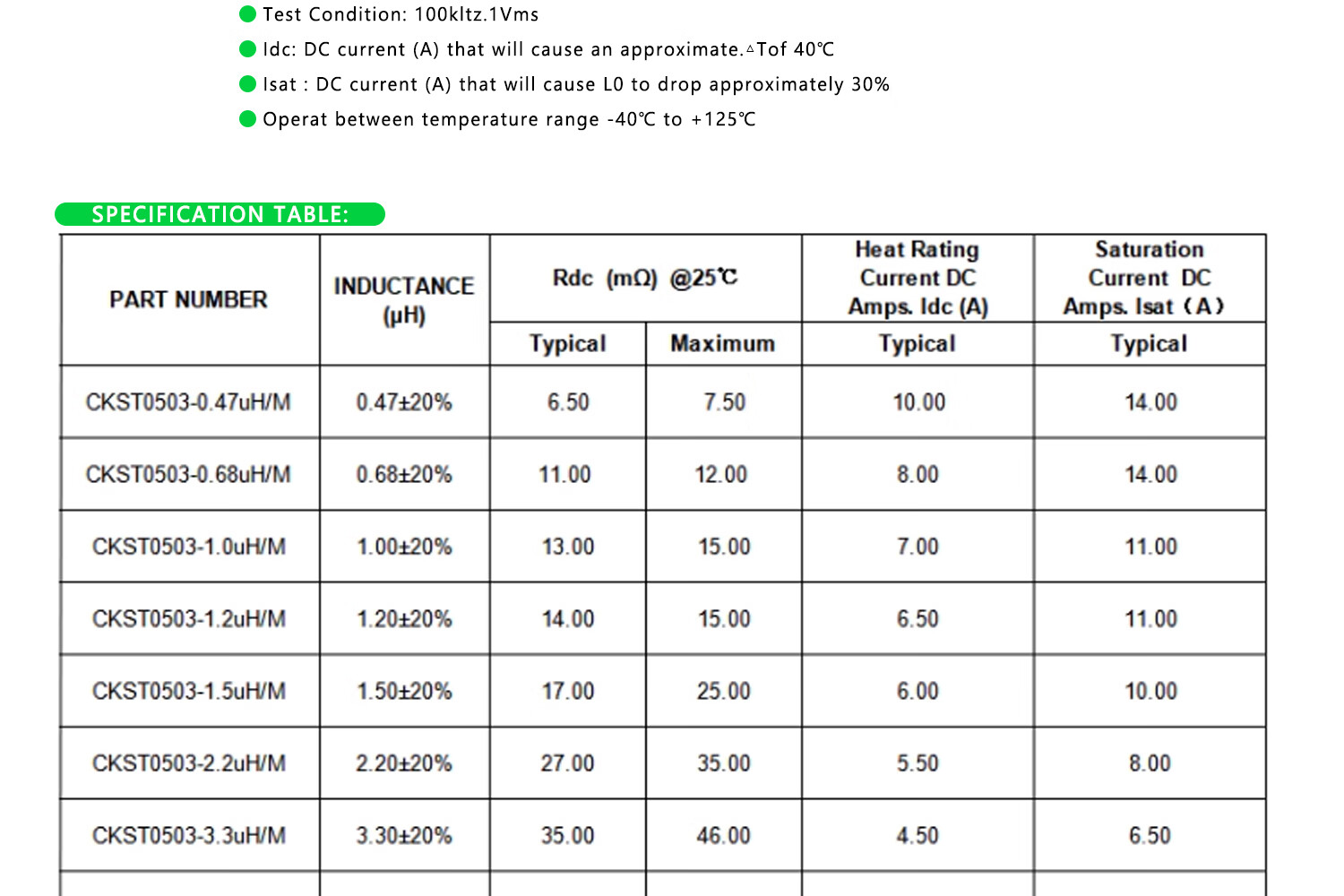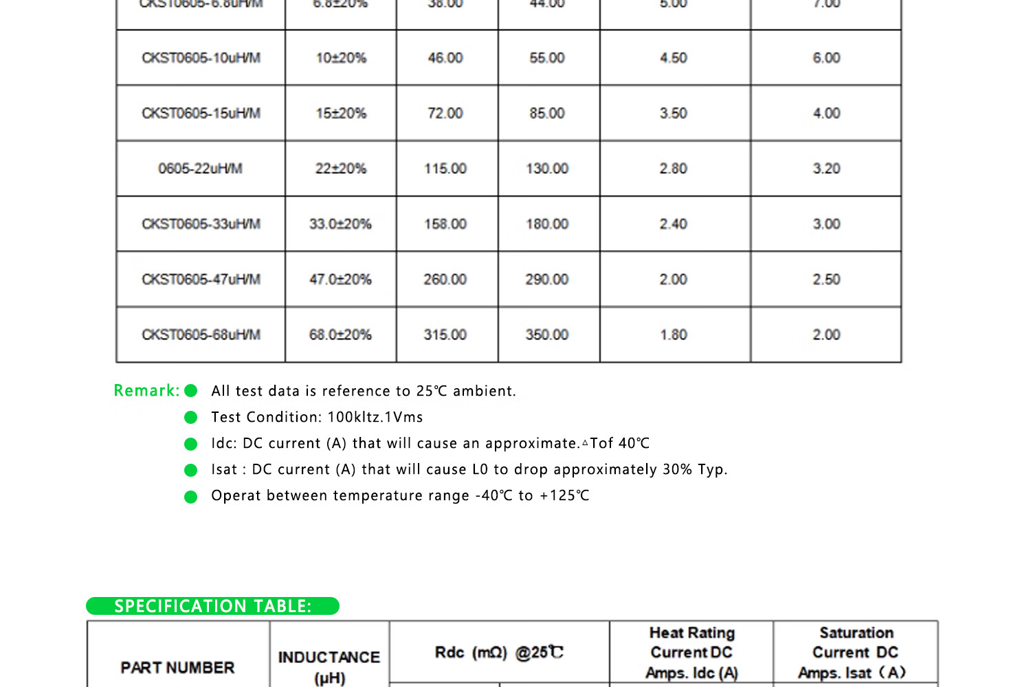 Integrated chip power inductor 0420/0520/0630/0650/0850/1040/1250/1770 0650 3.3UH (silk screen 3R3) 1 piece No Specifications
