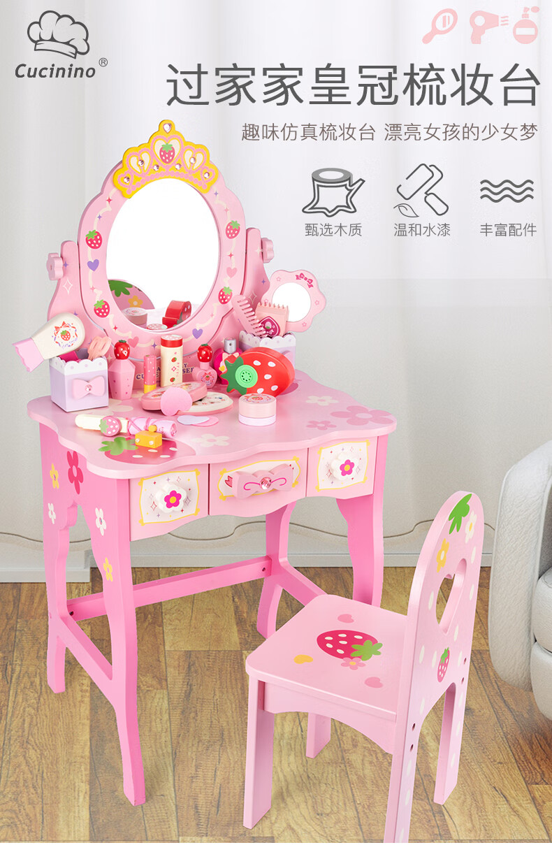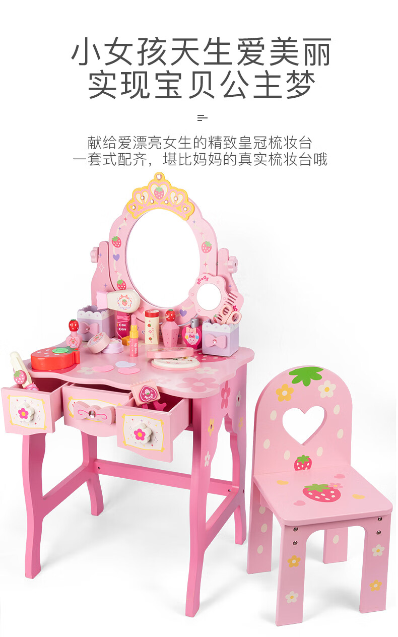 Shantou Lin Village Girls Dressing Table Set Princess Dressing Table Girls Cosmetics Children's Makeup Box Children's Toy Hair Dryer Large Dressing Table + Stool + Hairdressing Cover