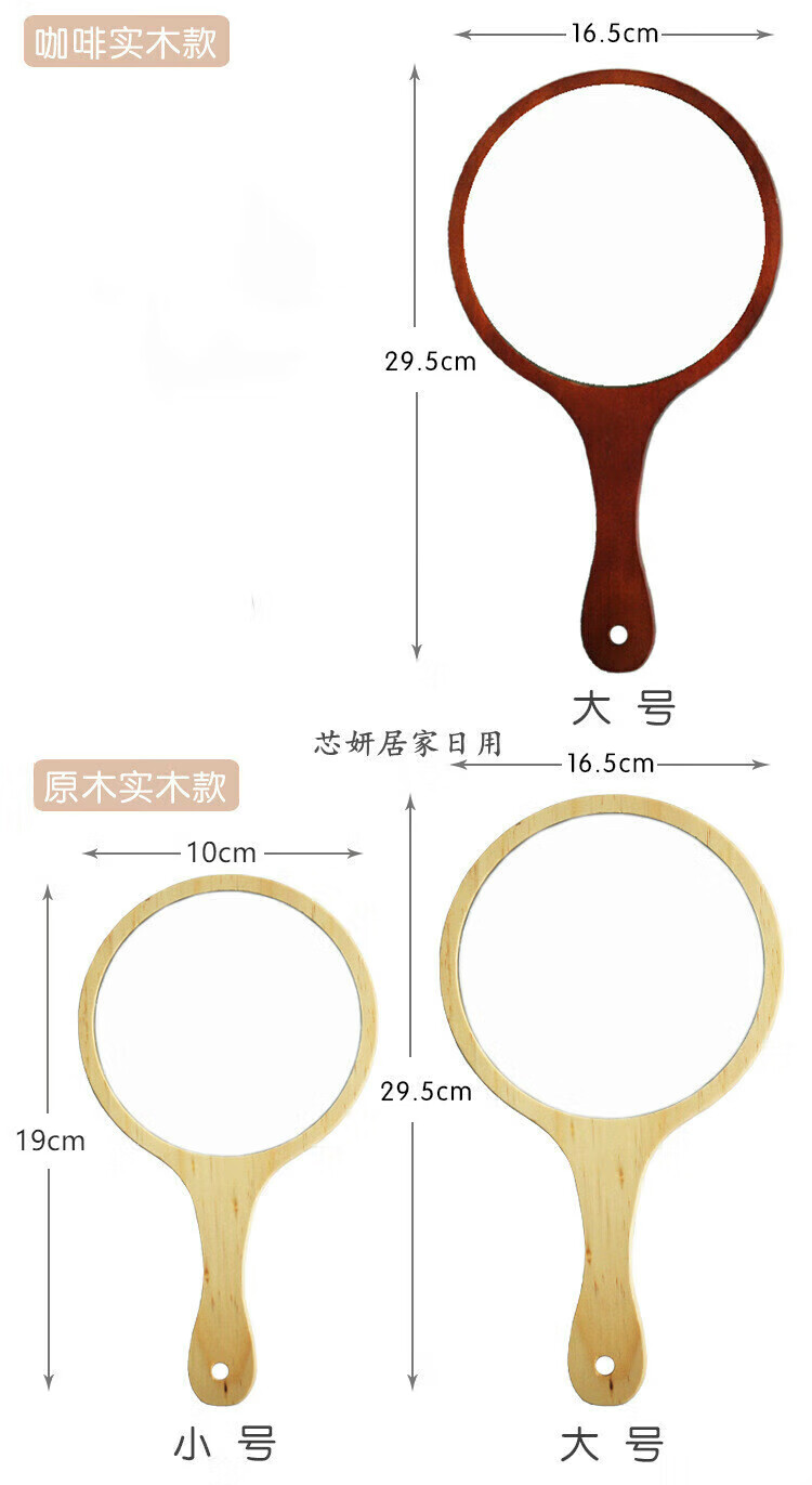 HD handle makeup mirror hand-held beauty salon tattoo retro portable wooden handle mirror portable small large coffee color
