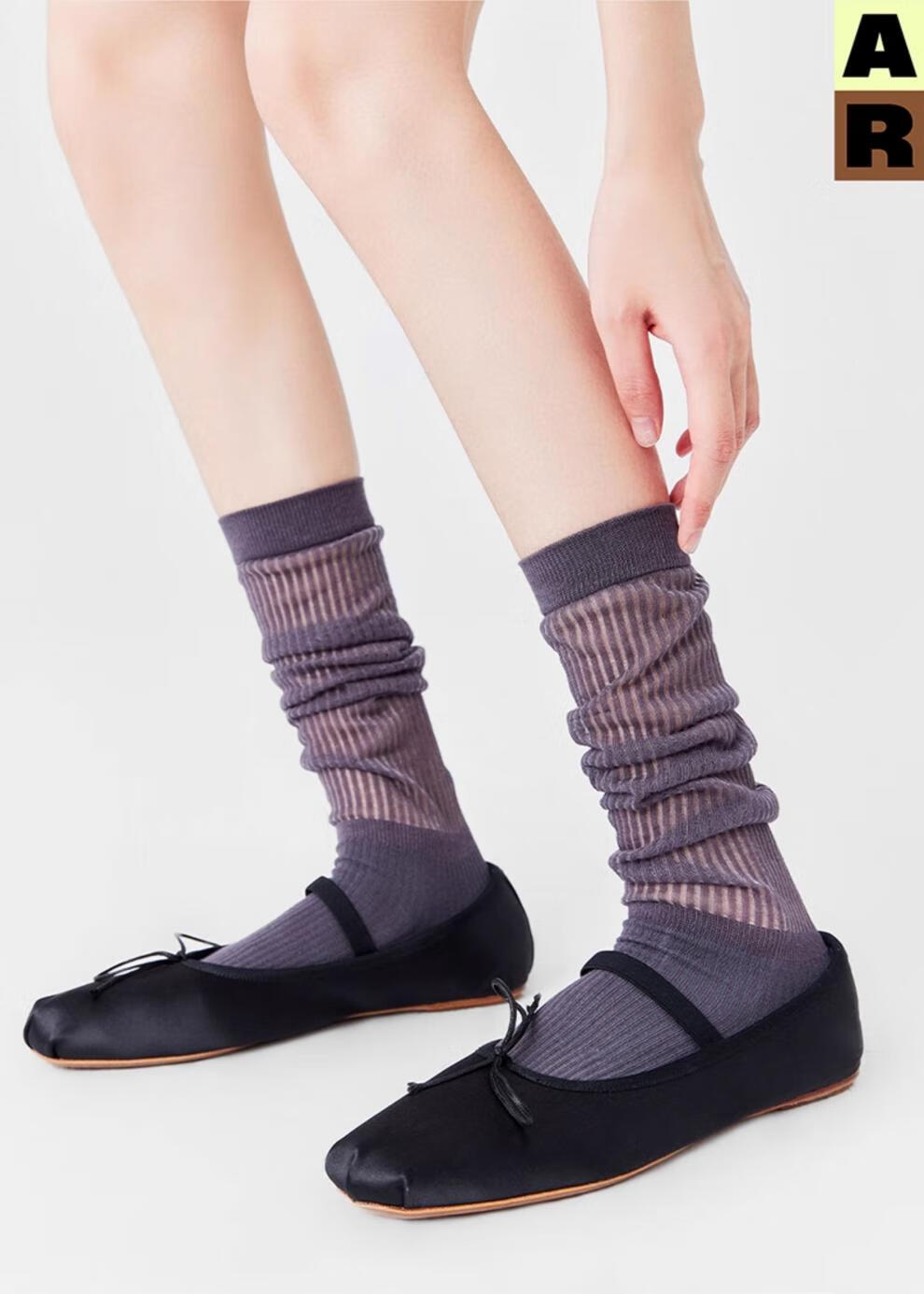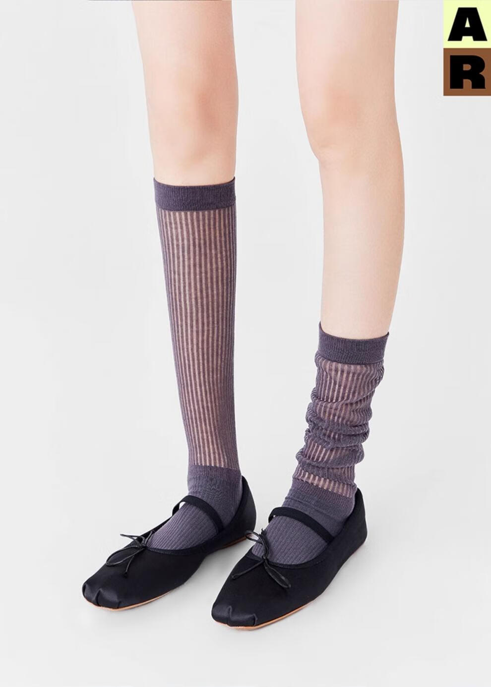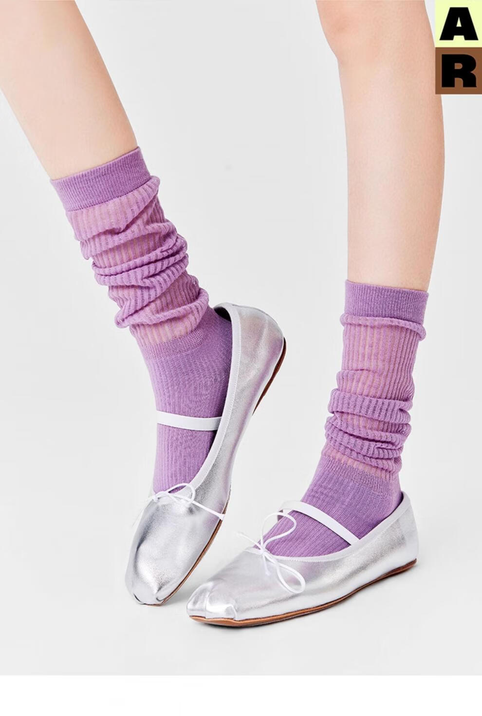 AR lightweight pile socks miu ballet style cotton bottom stockings thin 2025 new calf socks autumn slimming long socks popular king - calf socks combination one size (36-40)