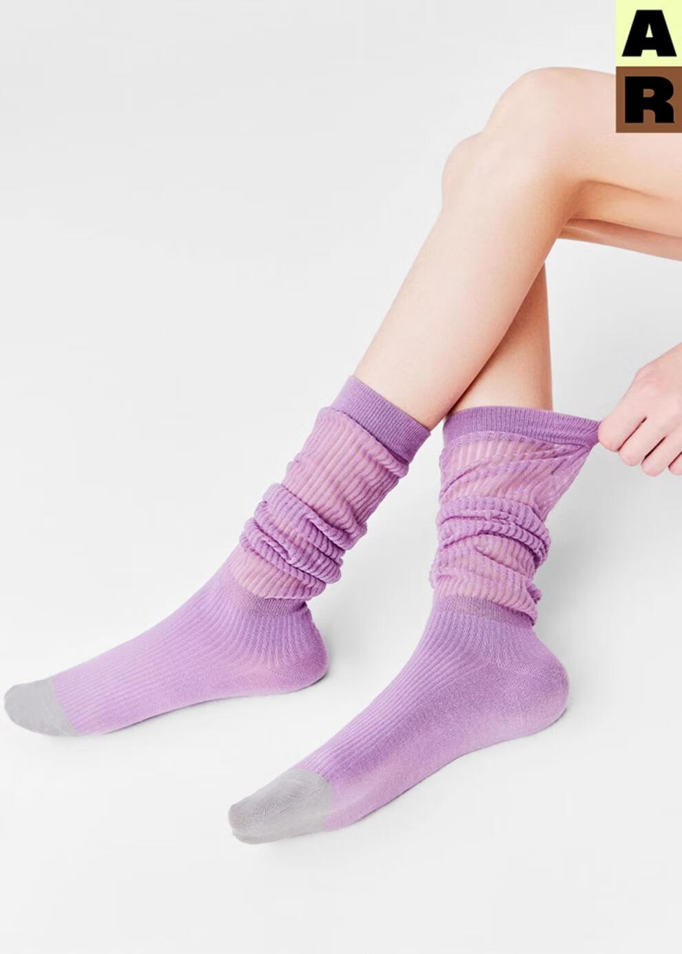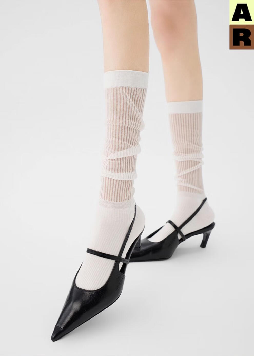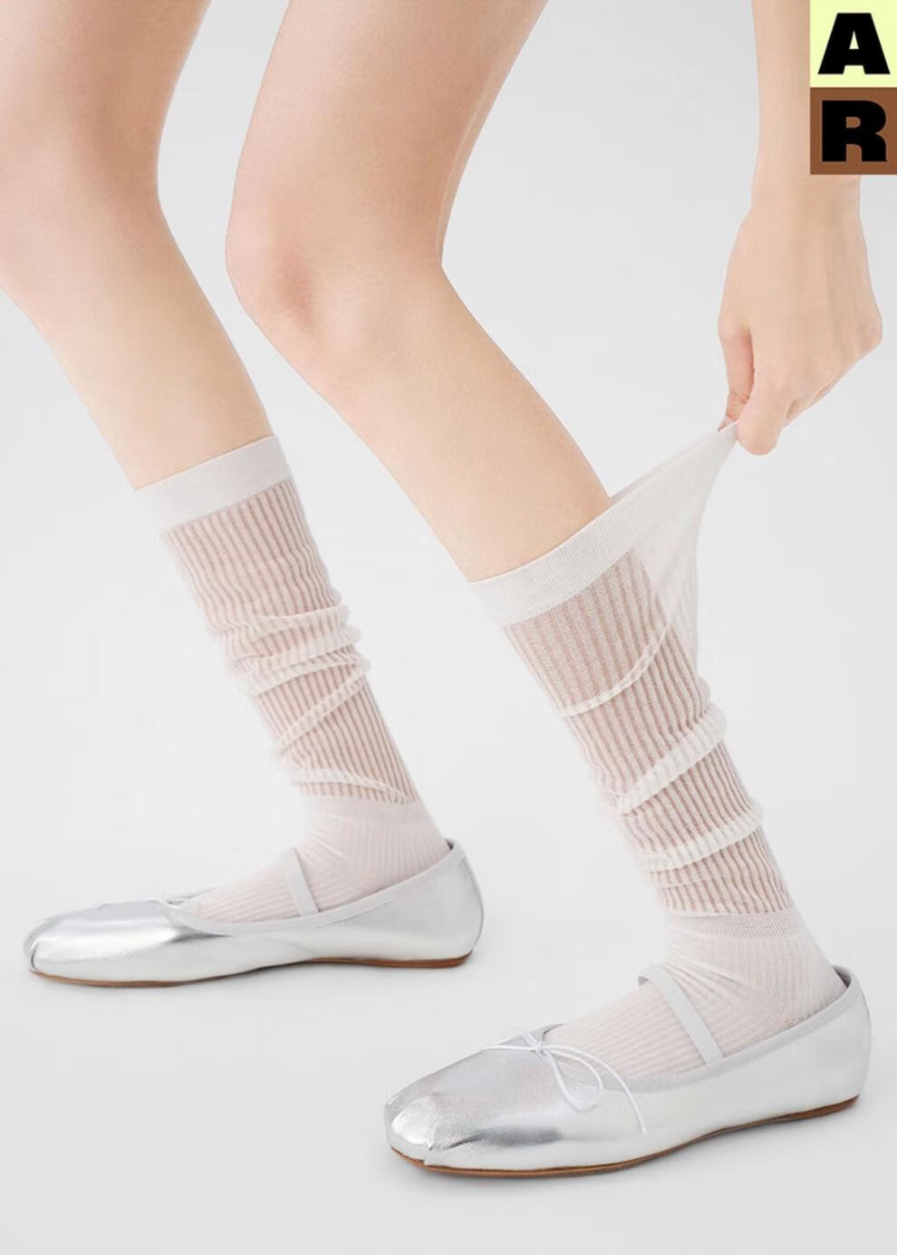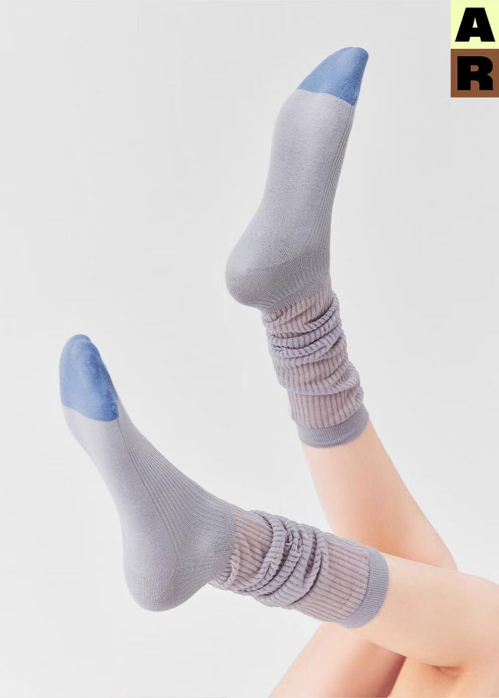 AR lightweight pile socks miu ballet style cotton bottom stockings thin 2025 new calf socks autumn slimming long socks popular king - calf socks combination one size (36-40)
