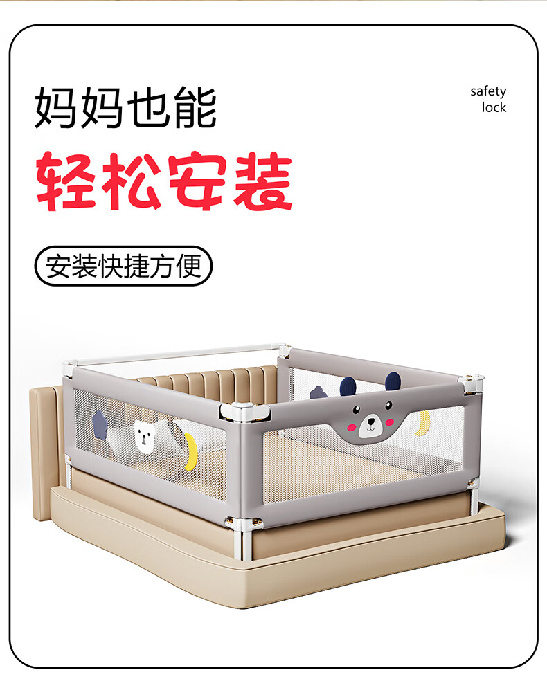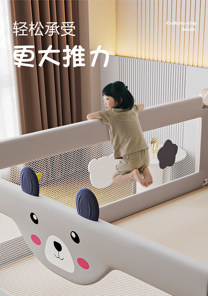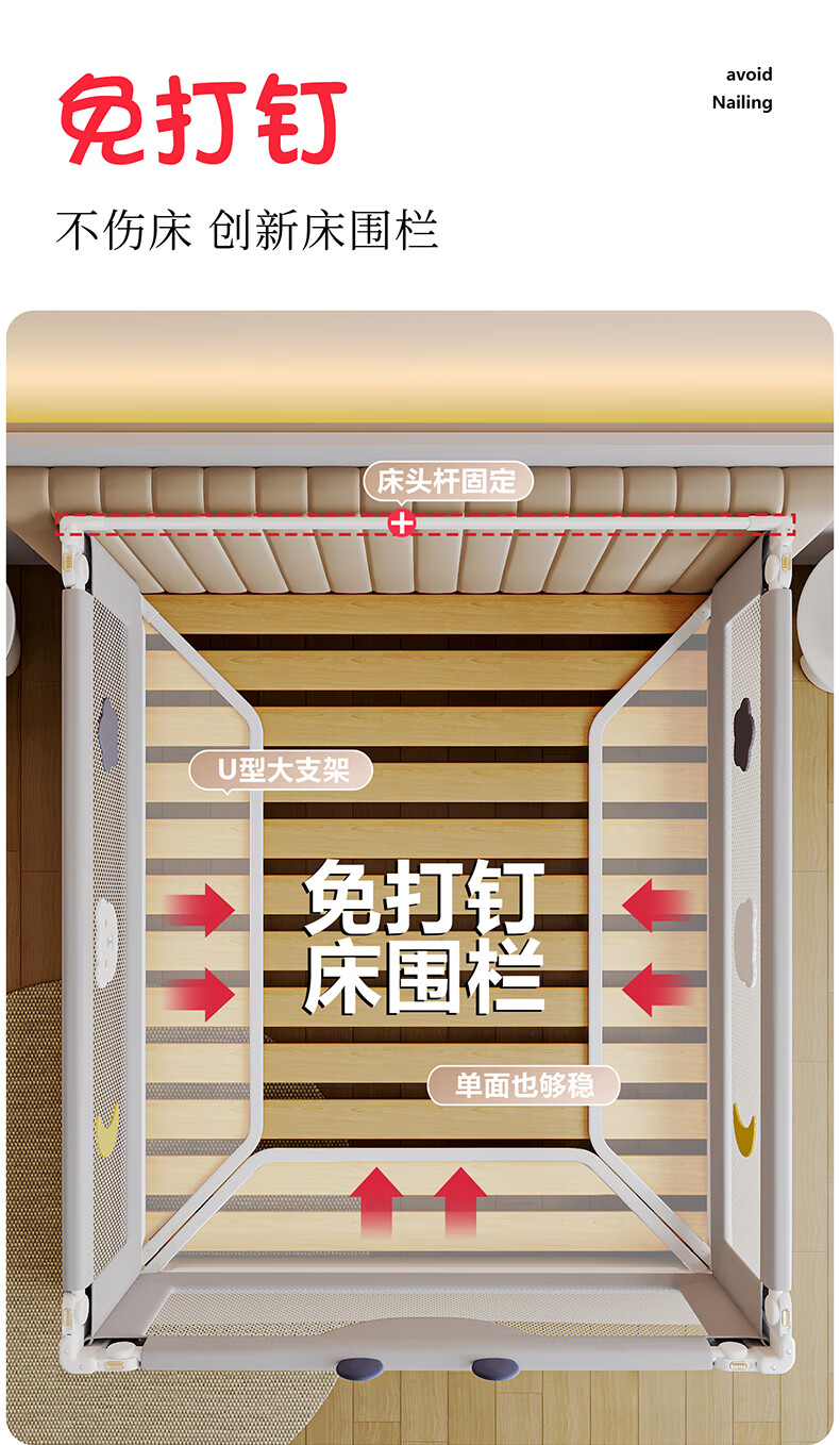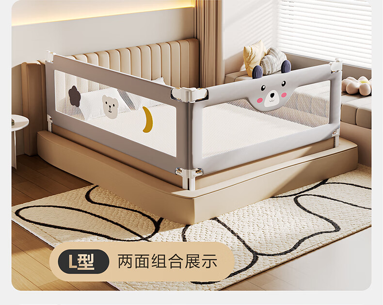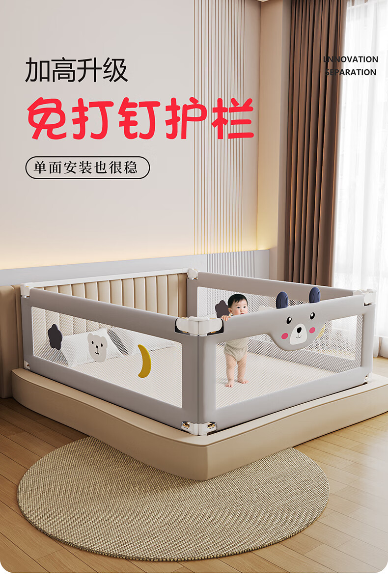 Xiyoumi bed fence guardrail bed anti-fall bed fence safety punch-free crib side baby baffle 2m single-sided U-shaped base-no punching