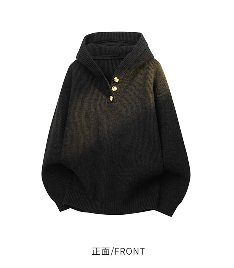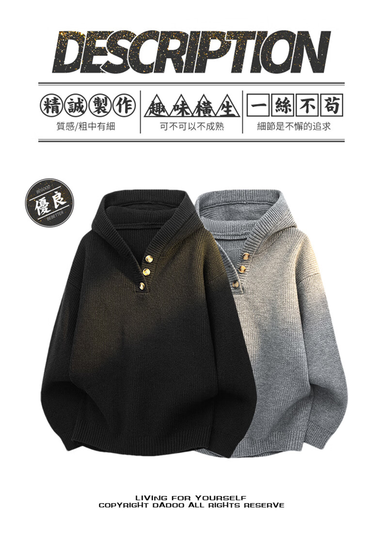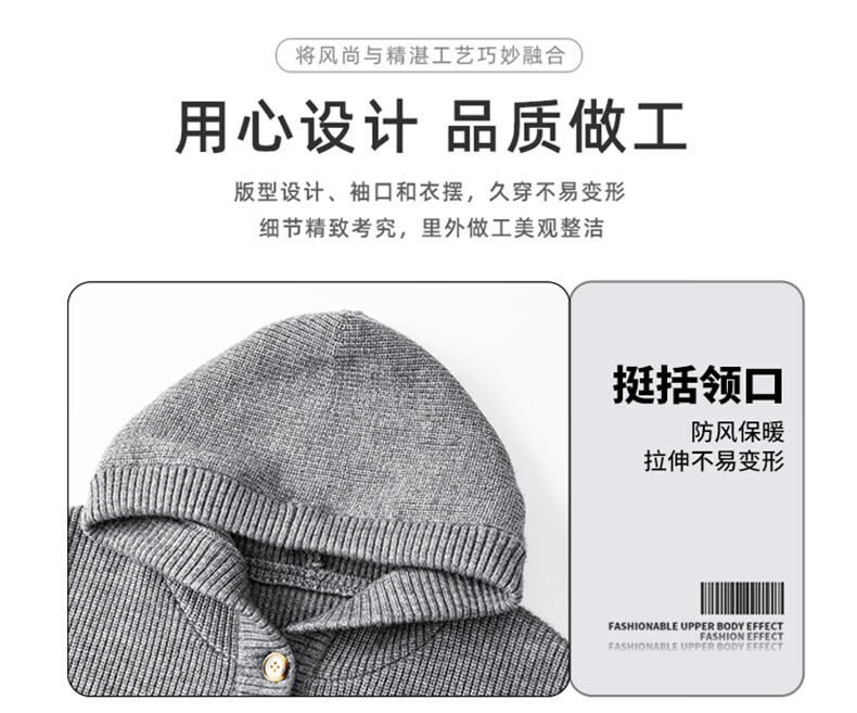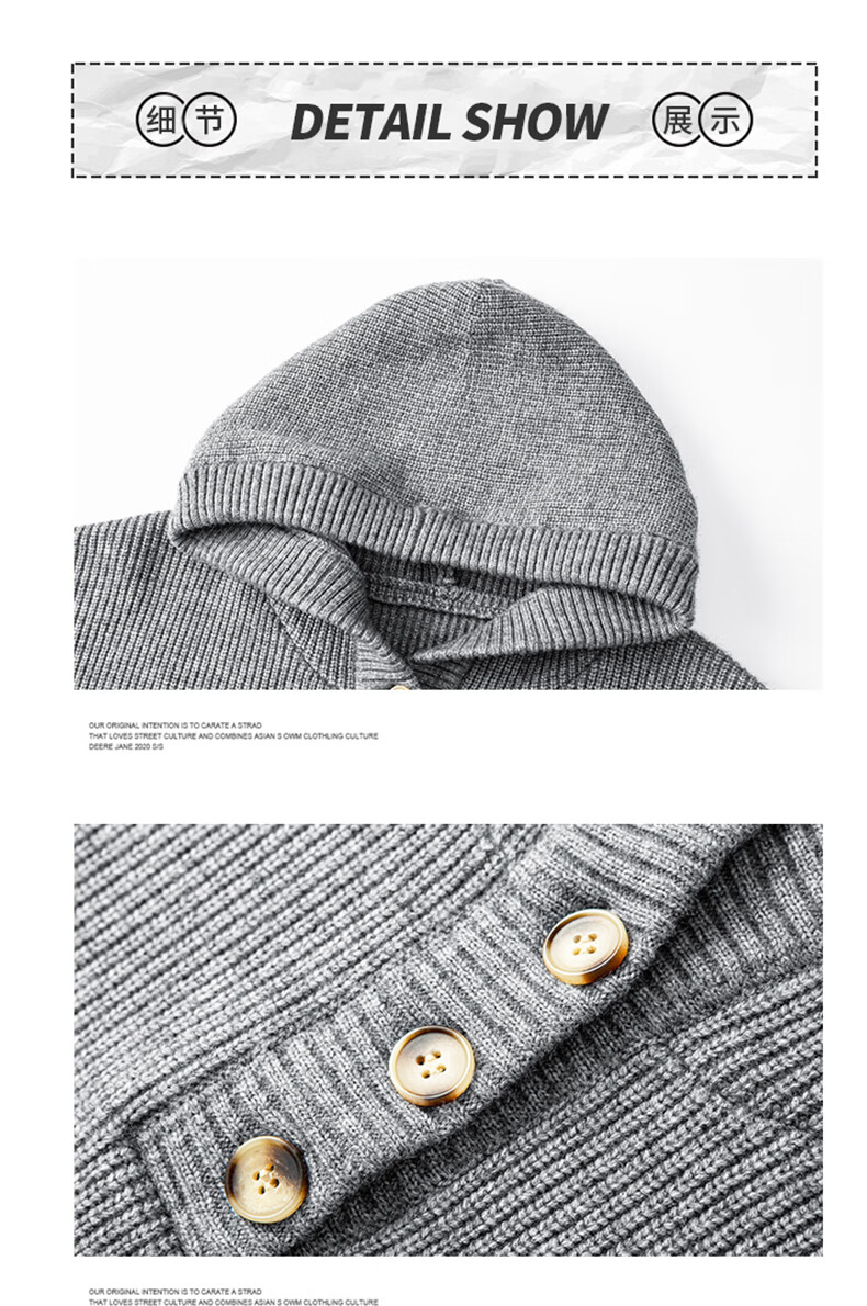 Pure (YISHion) American retro Henry collar hooded pullover for men in autumn and winter solid color loose sweater windproof warm sweater jacket 7020 fine anti-grey (upgrade) + velvet white (upgrade) 2XL