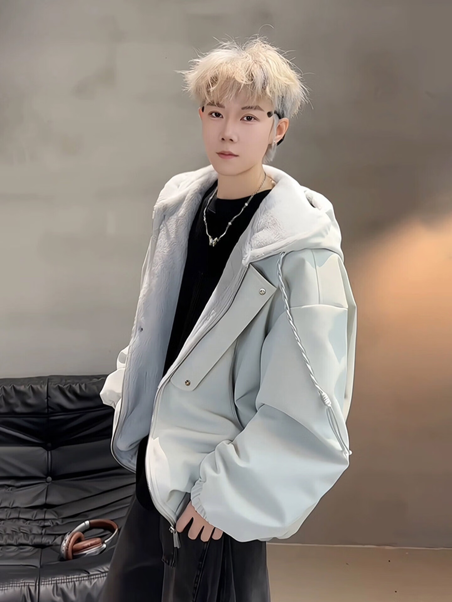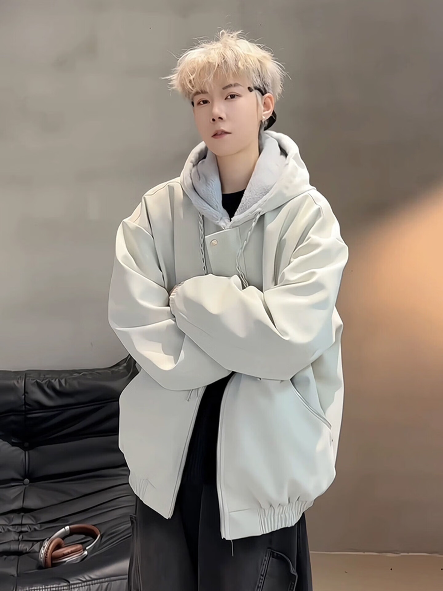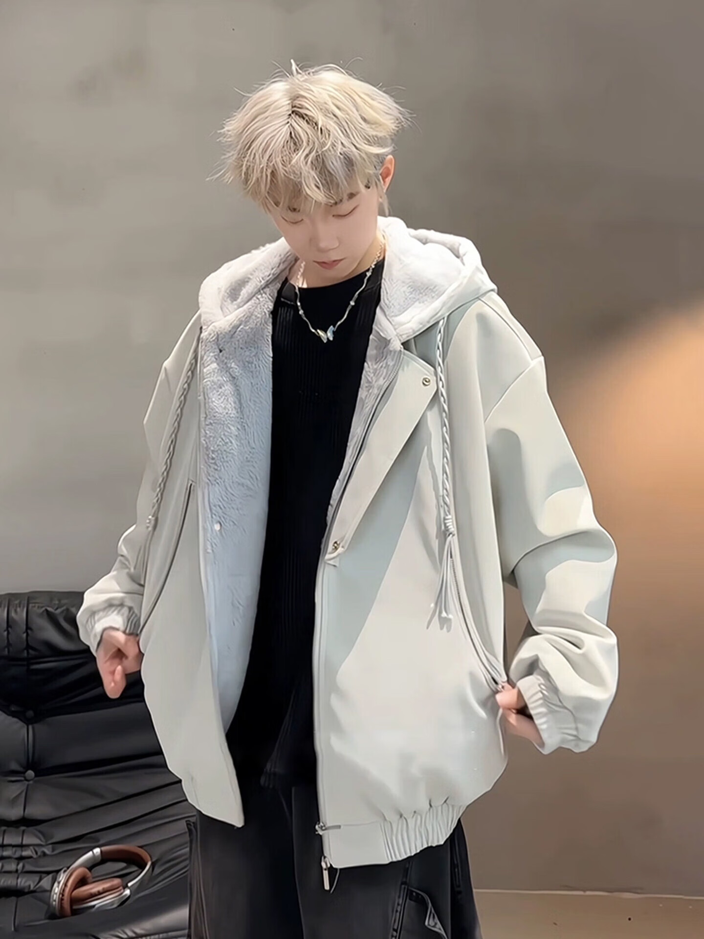 Bushman American PU leather mountain carving jacket men's winter velvet thickened warm and cold-proof cotton coat hooded jacket cotton coat black velvet style upgraded version M