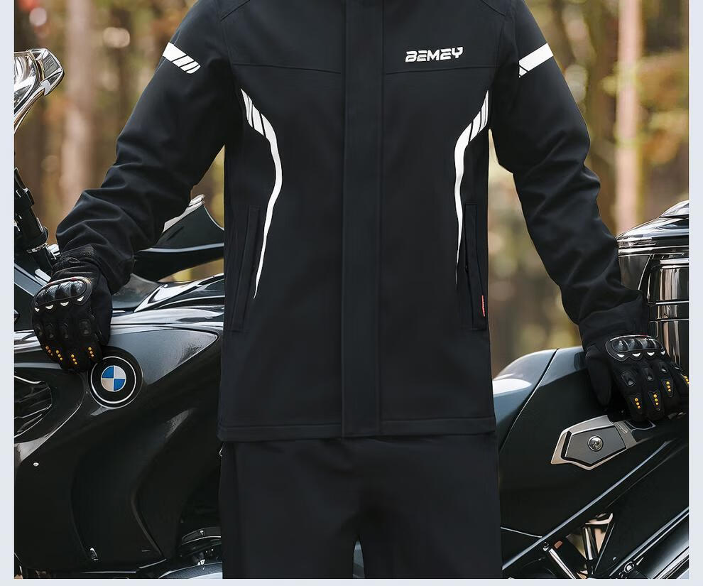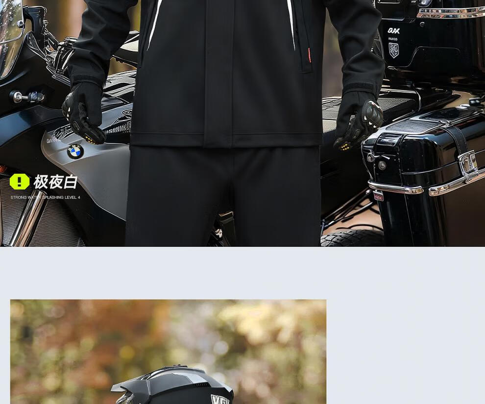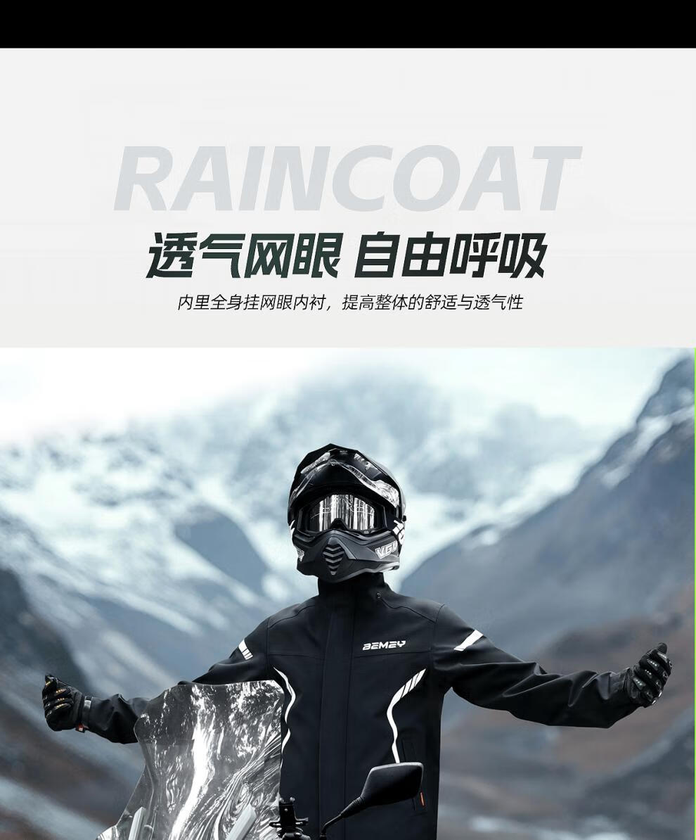 Recruiting motorcycle raincoat set, men's full-body rainstorm-proof cycling suit, split-type outer wear for adults, specially designed for takeaway riders. Shadow black durable and waterproof style - unisex, heavy rainproof + double-layer waterproof placket M 1 piece