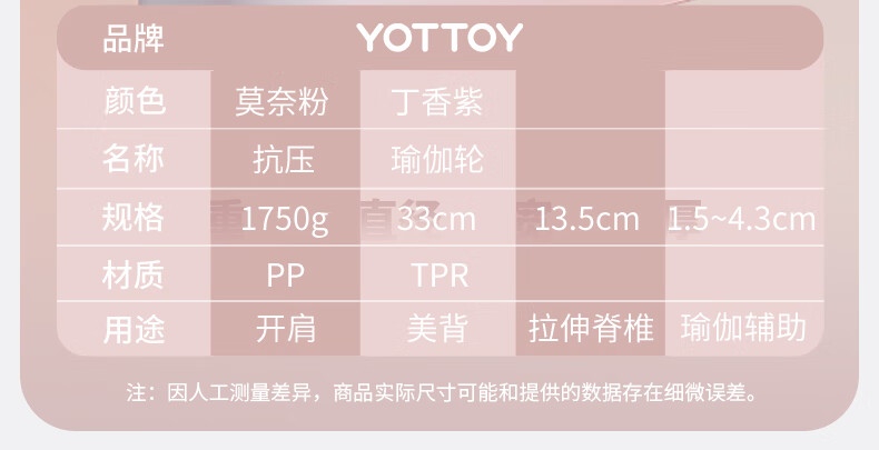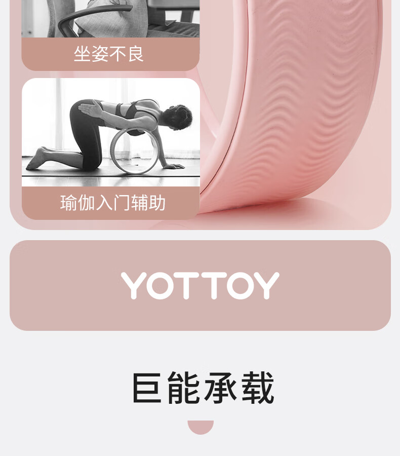 He Jiagong Yoga Wheel Open Back Beautification Beginner Yoga Equipment Back Bend Widen and Roll Back Home Fitness Pilates Ring Monet Powder - Upgraded Thickening Anti-slip No Odor Open Shoulders Beautiful Back Relaxation and Decompression