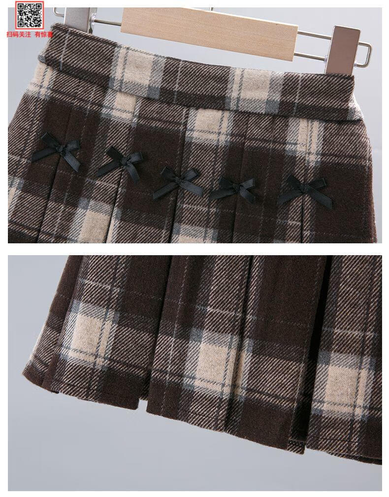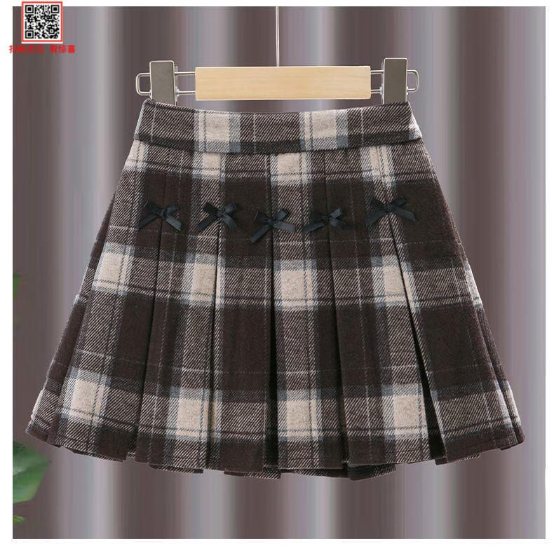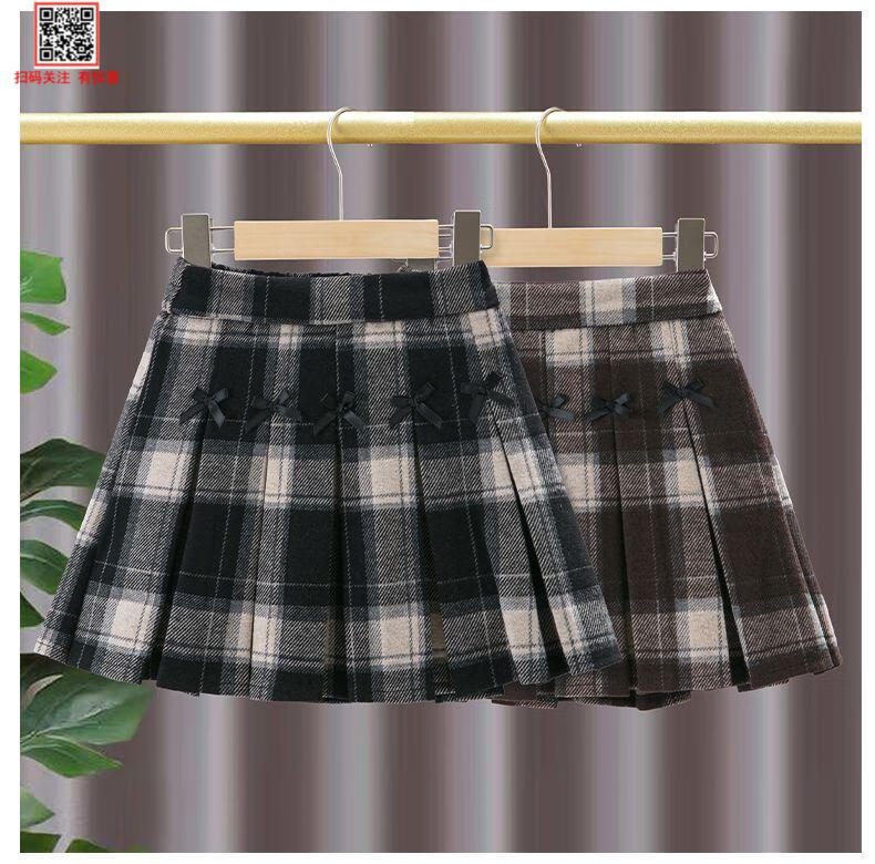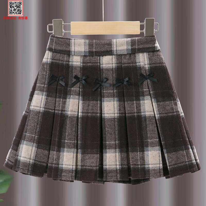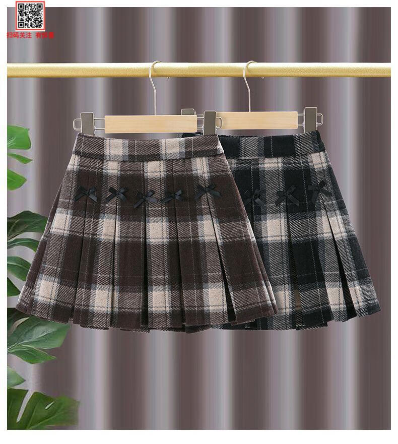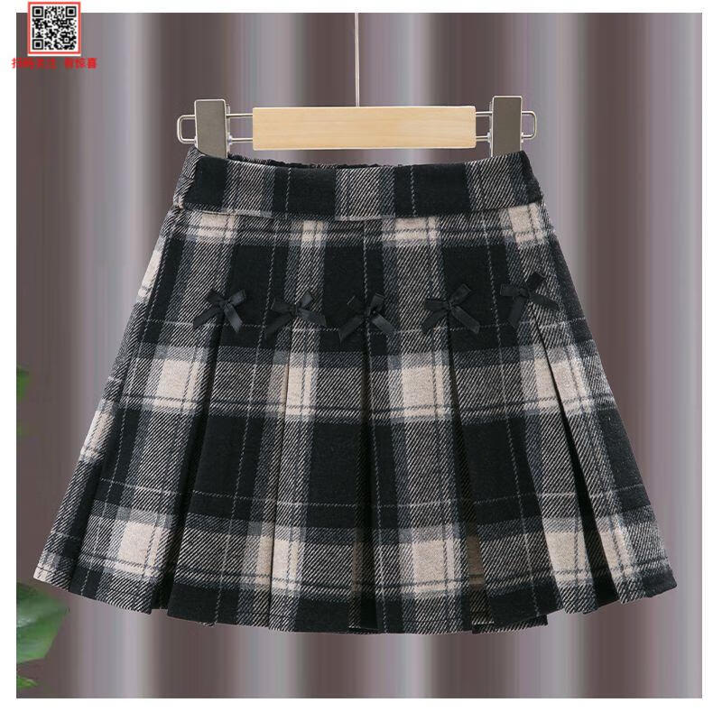 G.duck Girls Skirt Pleated Skirt Autumn and Winter 2025 New Children's Style Versatile Plaid Skirt Girls Skirt Autumn Horizontal Butterfly Woolen Skirt - Black and Gray Plaid 120