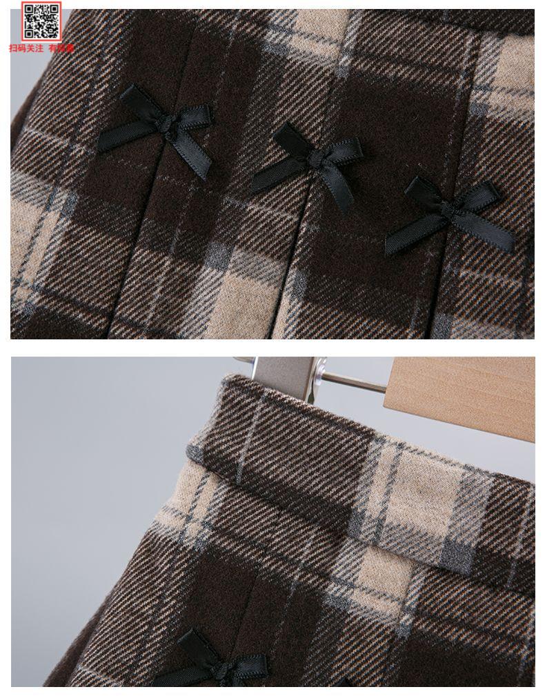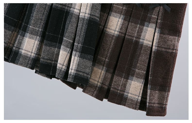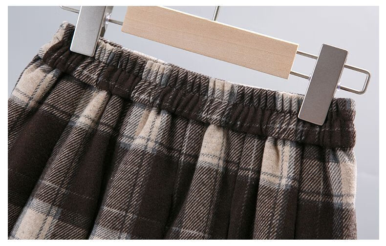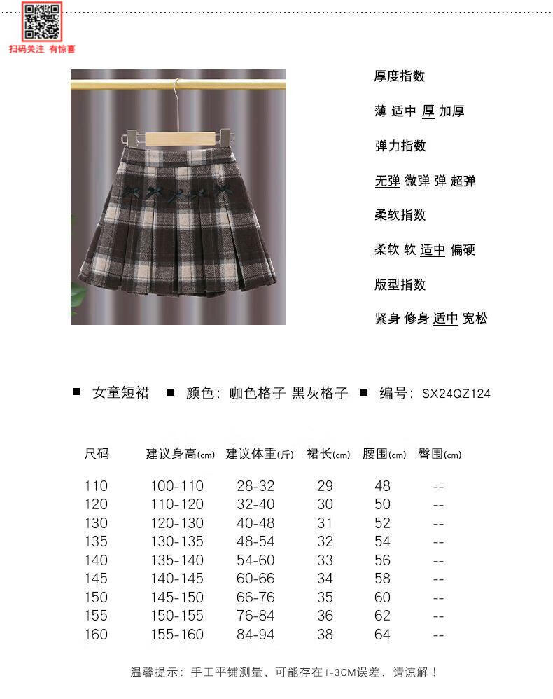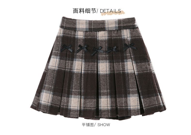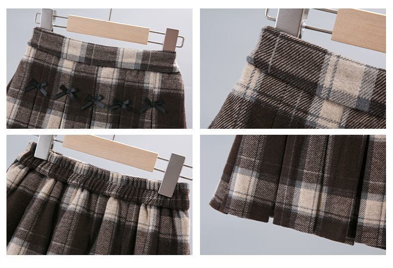 G.duck Girls Skirt Pleated Skirt Autumn and Winter 2025 New Children's Style Versatile Plaid Skirt Girls Skirt Autumn Horizontal Butterfly Woolen Skirt - Black and Gray Plaid 120