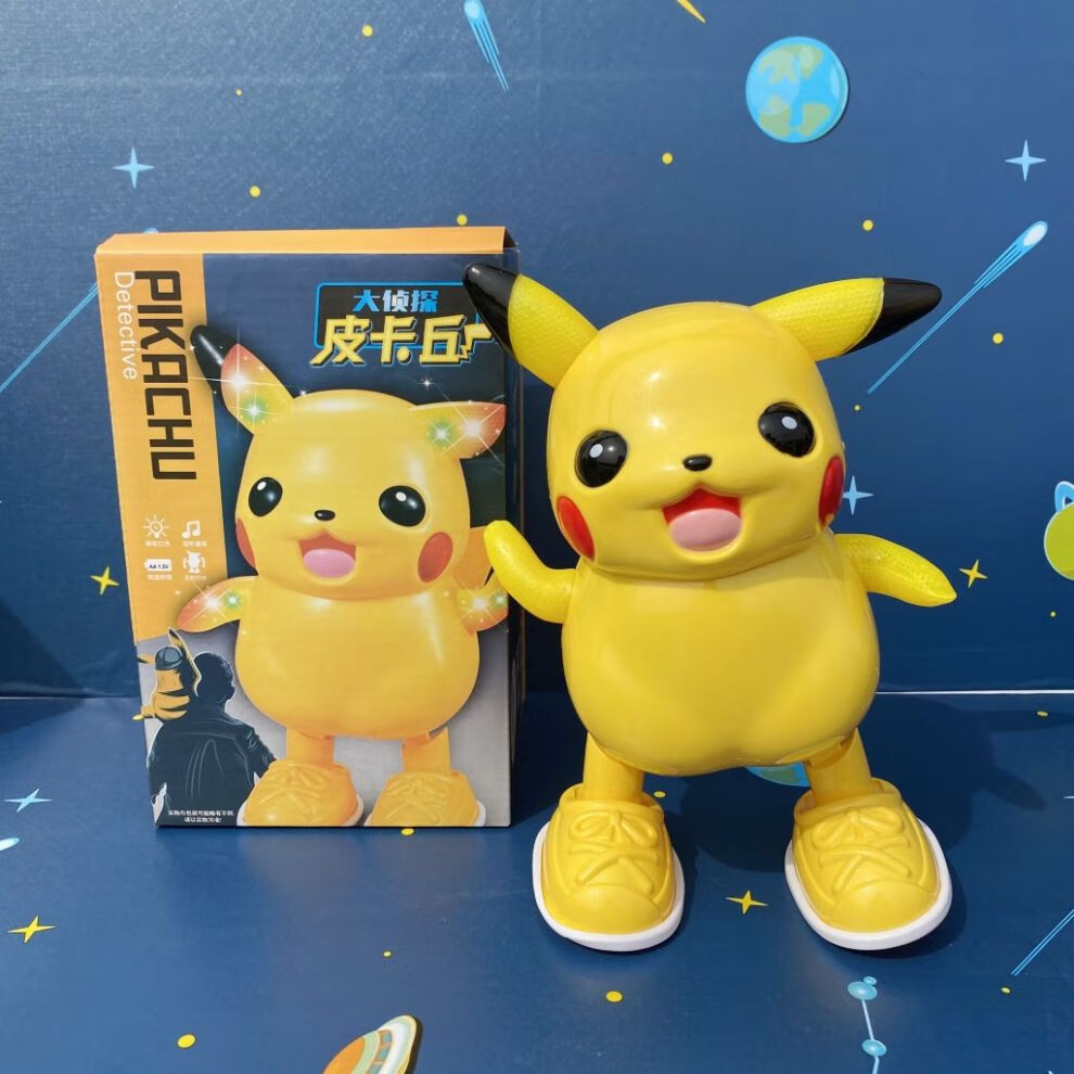 Shantou Lin Village Dancing Pikachu Children Boy Pikachu Xiao Xiao Elf Electric Light Concert Singing Toy Pikachu + Carriage Train Free Four Dolls_-Christmas and New Year Gifts Plus Charger + 3 Charges-Free Cartoon Stickers
