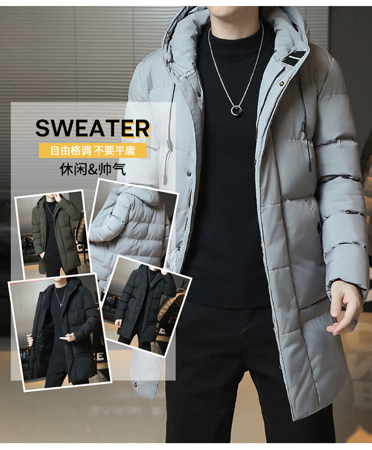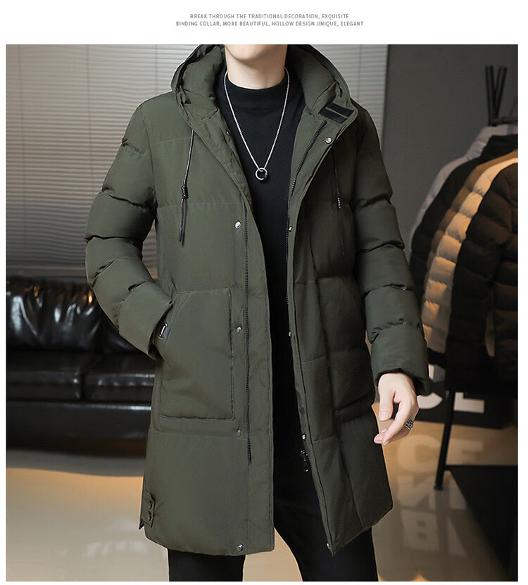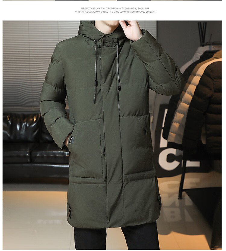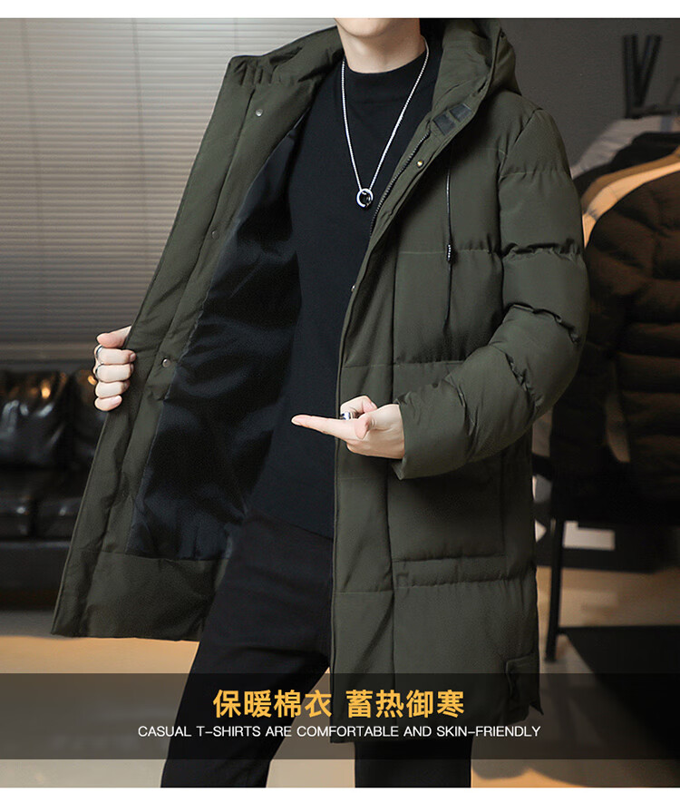 Cotton coat men's jacket 2025 winter thickened cotton jacket hooded mid-length cotton coat men's casual warm winter JXL 9788 Army Green 6XL