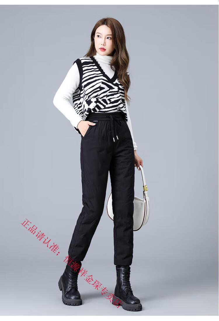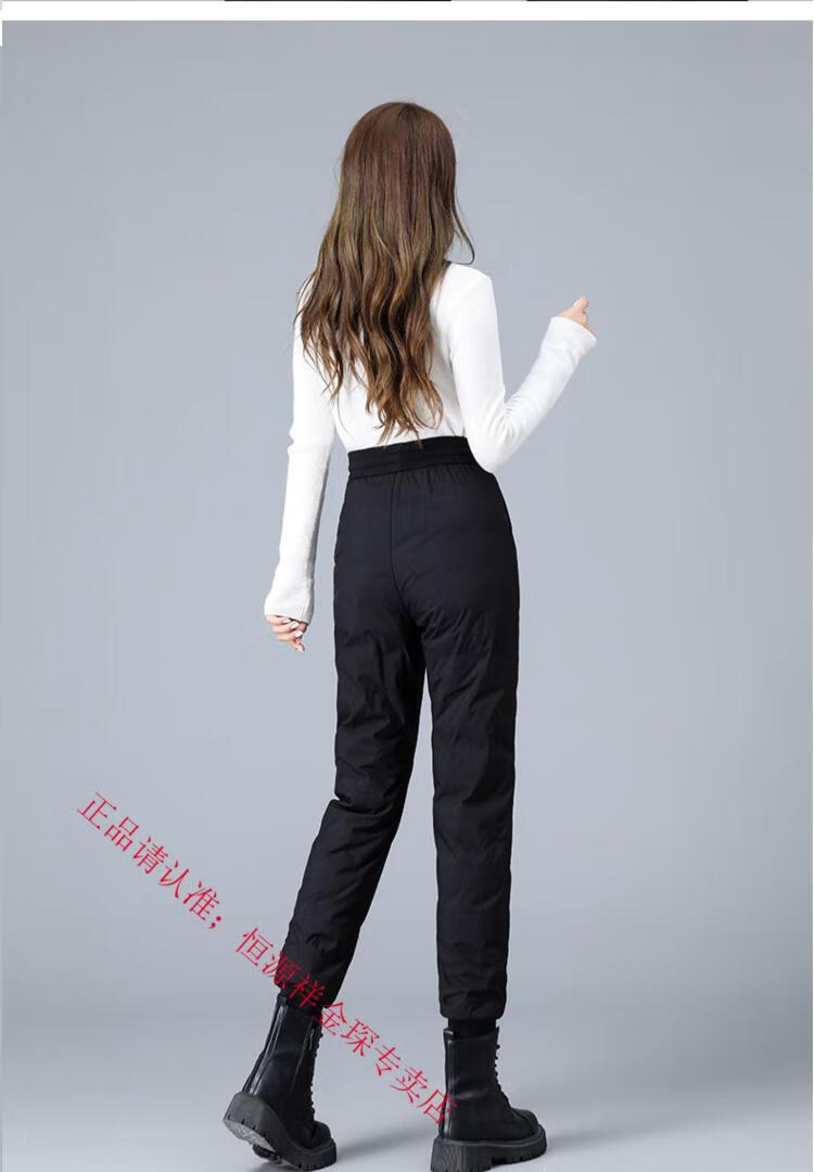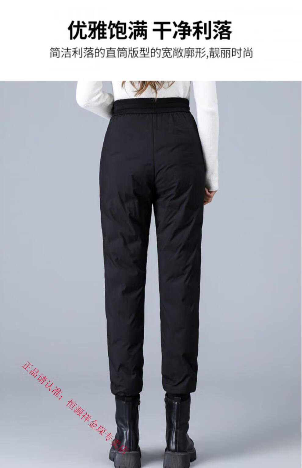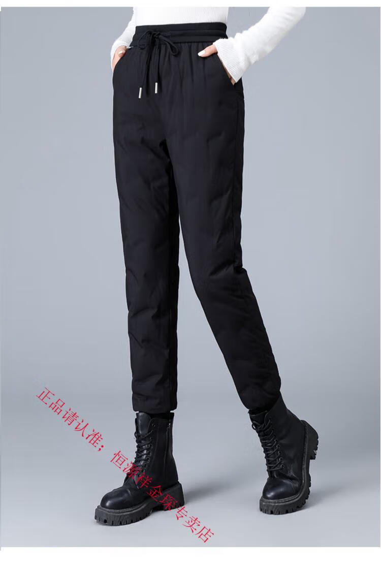 Hengyuanxiang Fashionable Down Pants Women's Outerwear High Waist 2025 New Winter Thickened Warmth Northeast Coldproof Women's Cotton Pants Black M Recommended 100-110 Jin Jin equals 0.5 kg to wear