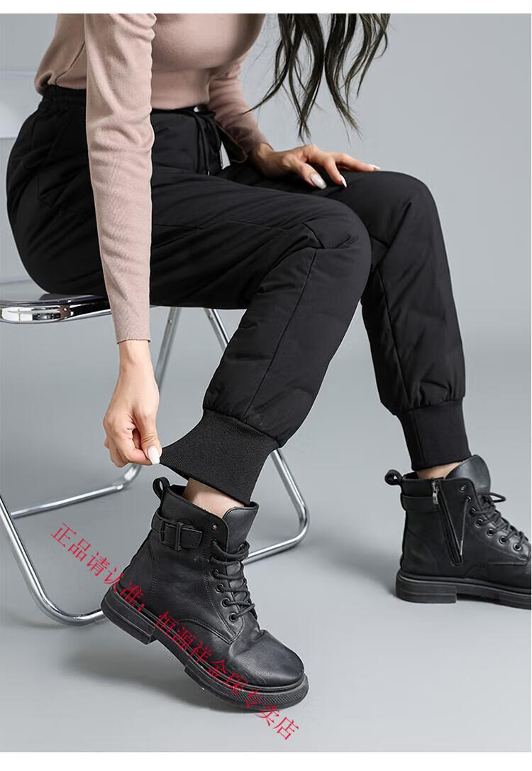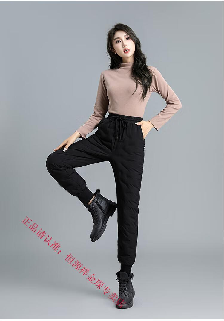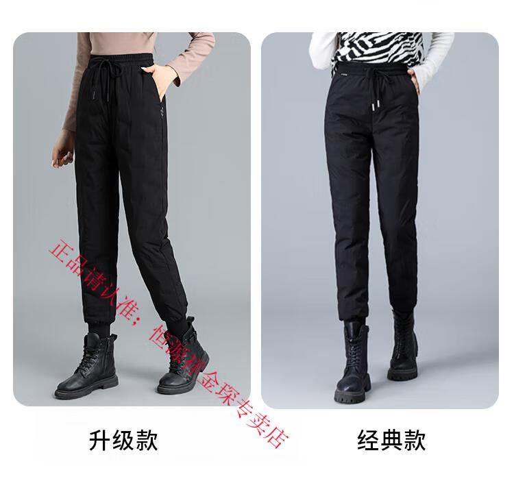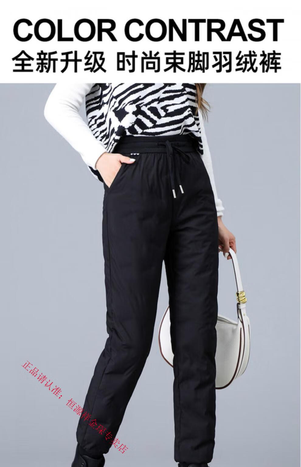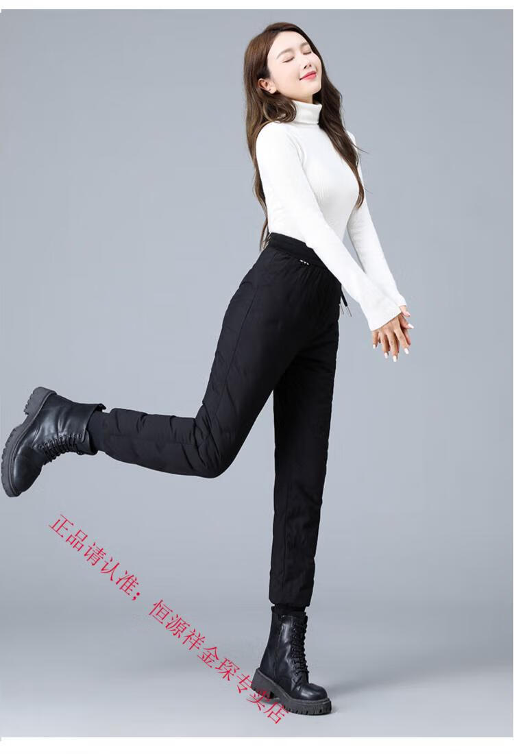 Hengyuanxiang Fashionable Down Pants Women's Outerwear High Waist 2025 New Winter Thickened Warmth Northeast Coldproof Women's Cotton Pants Black M Recommended 100-110 Jin Jin equals 0.5 kg to wear