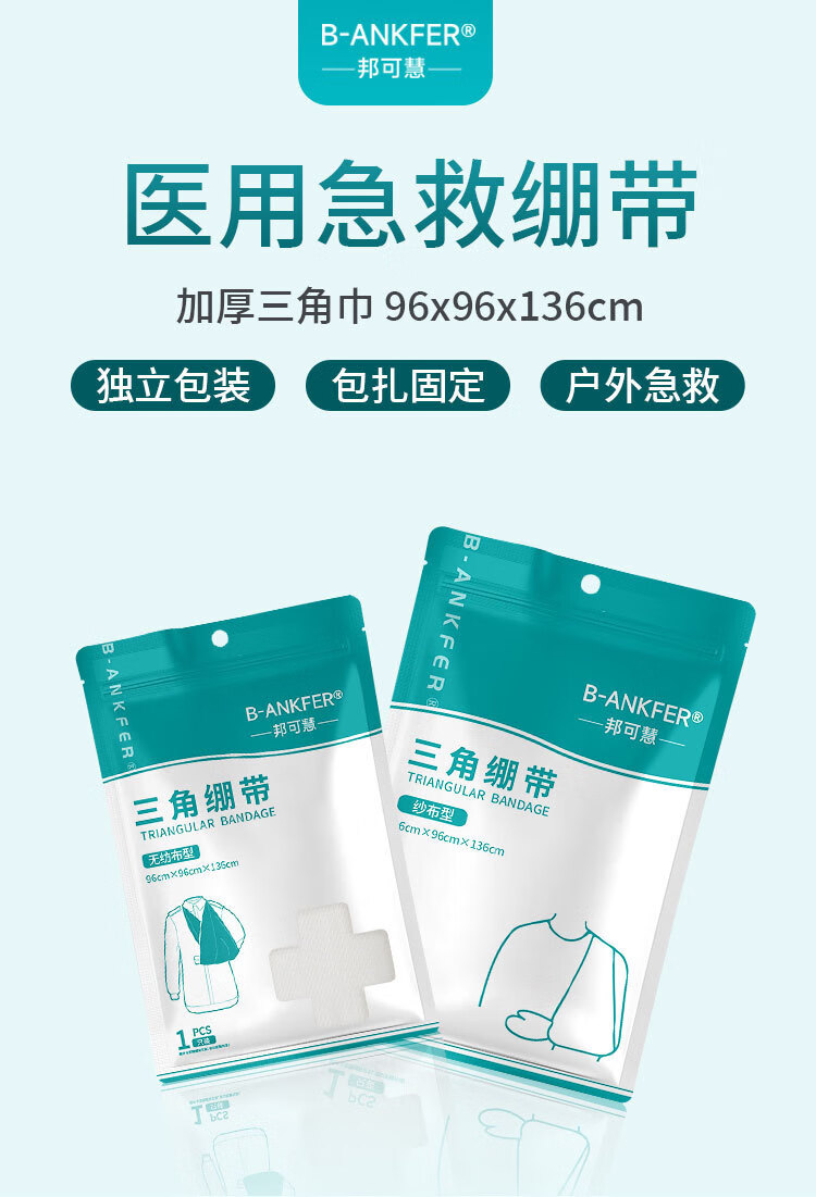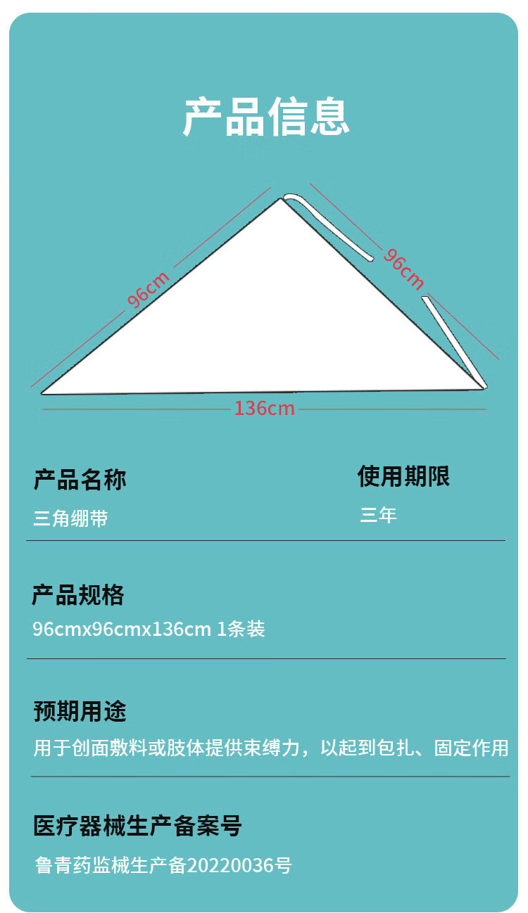 Medical triangle bandage first aid bandage fixation for adults and children fractured arm sling triangle bandage gauze non-woven type 96*96*136cm 1 piece/pack 6 bags