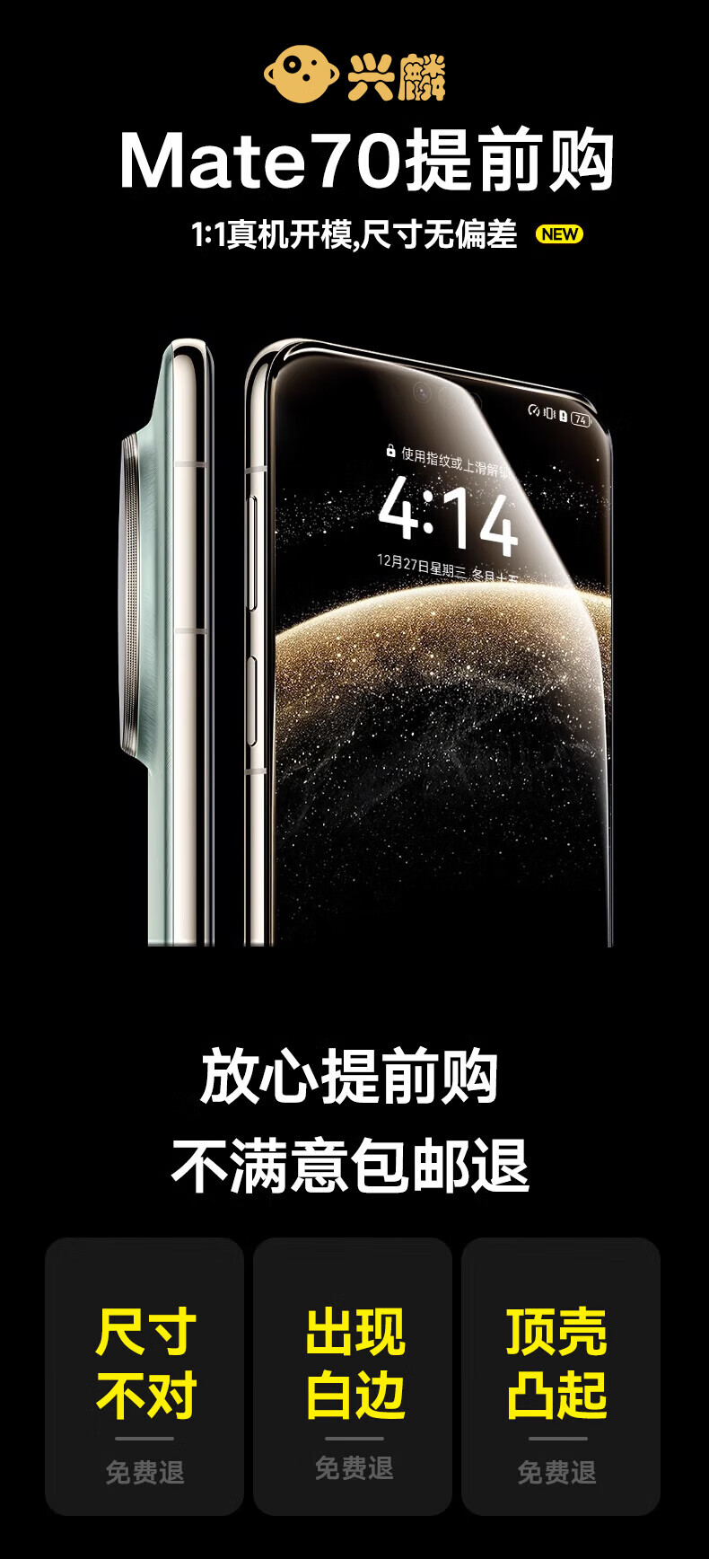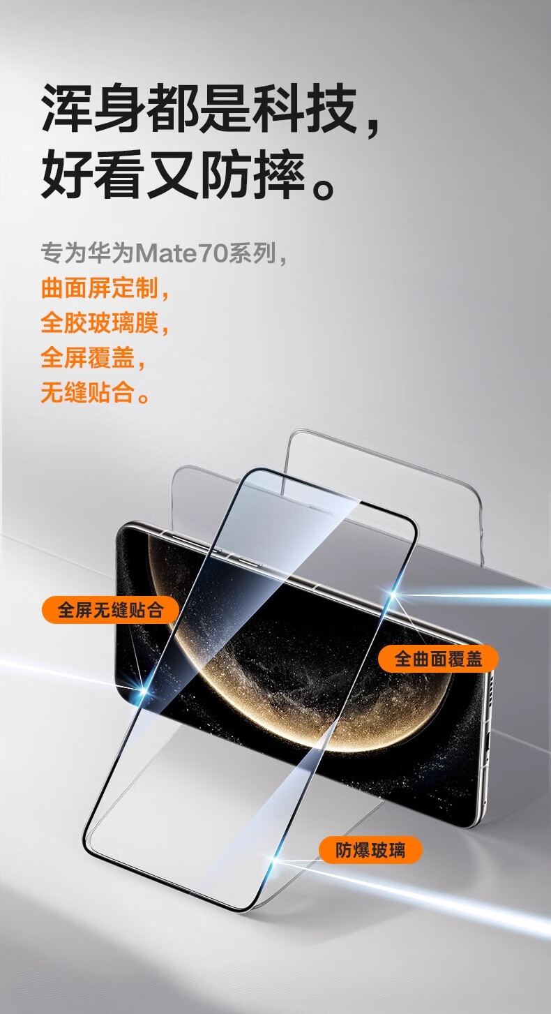 Xinglin applies to Huawei Mate70Air tempered film full glue mate70 Air mobile phone film HD curved surface 3D hot bending full coverage Kunlun explosion-proof and anti-fall glass screen protector ultra-clear 1 set Kunlun tempered explosion-proof, one-pull dust removal second sticker suitable for Huawei Mate70Air