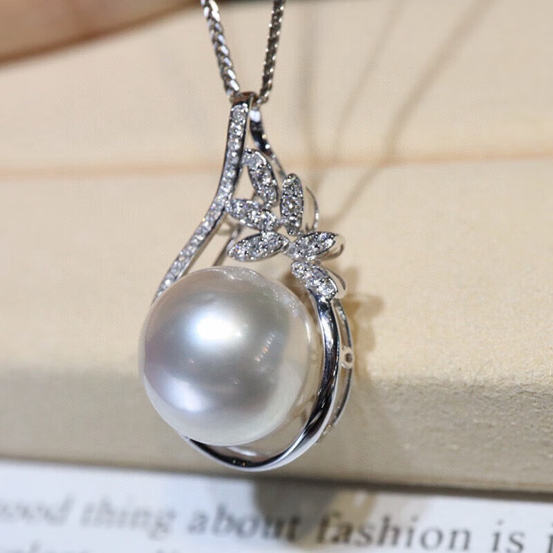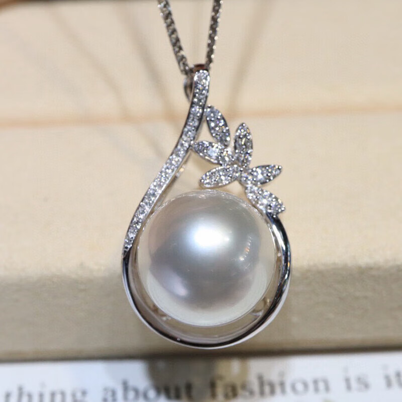 Zheng Xingyao white pearl pendant seawater necklace gold diamond temperament clavicle chain for birthday gift 13mm 13mm