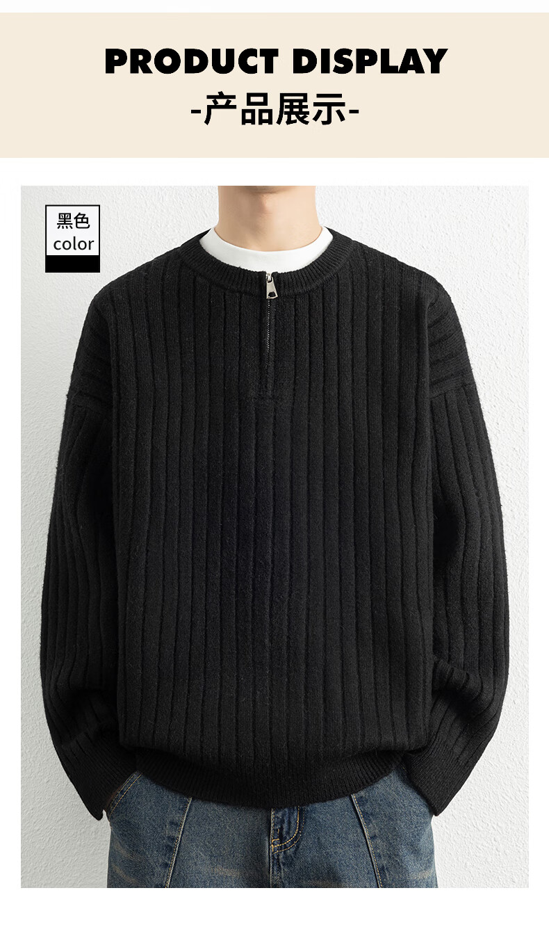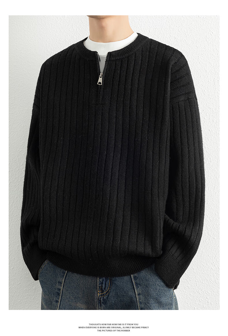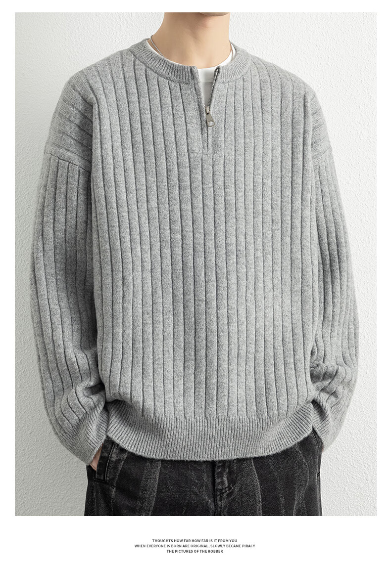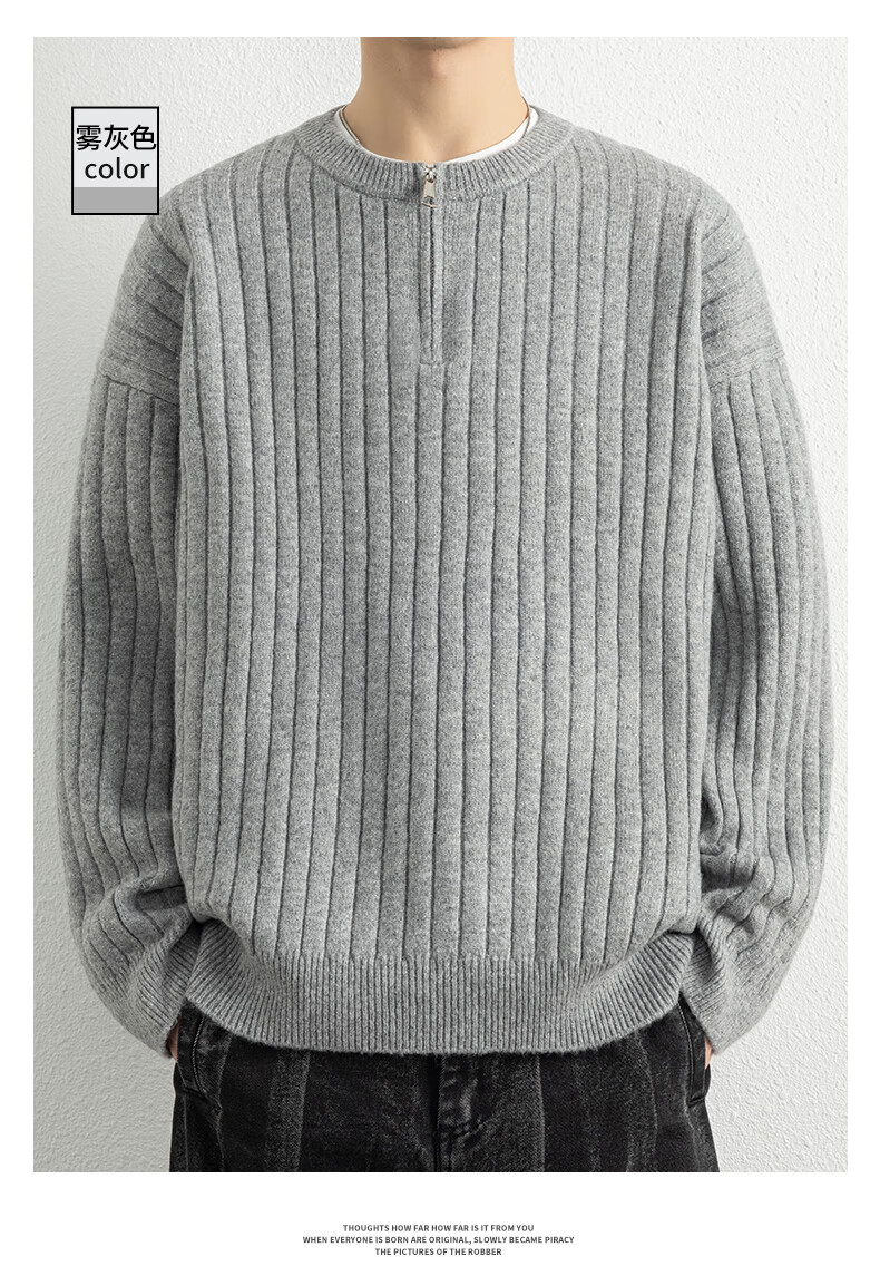 EGMO half-zip sweater for men in autumn and winter 2025 new loose American style Henry collar sweater textured sweater for men Chenguang Apricot 7023 M
