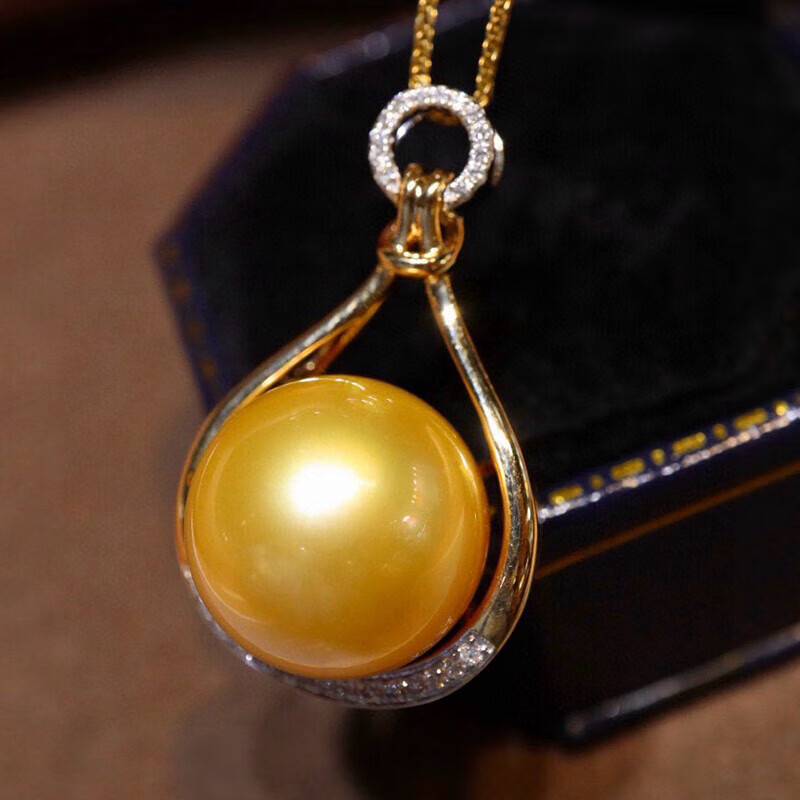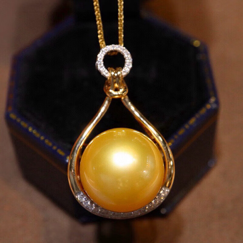 Zheng Xingya South Sea Gold Pearl Pendant Seawater Necklace Gold Diamond Temperament Clavicle Chain for Birthday Gift 14.5mm 4.5mm