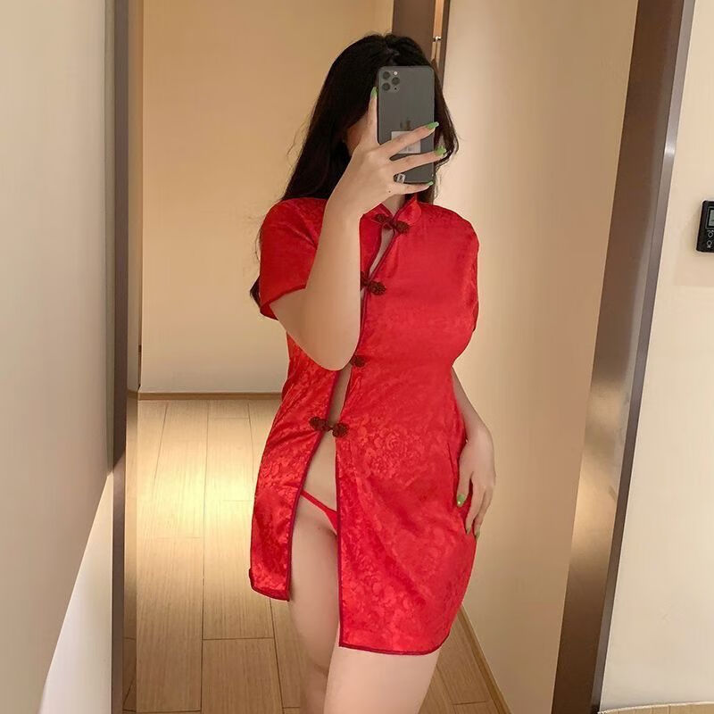 Free T-string 80190Jin Jin is equal to 0.5kg Sexy cheongsam pajamas nightgown dress white M size 80120Jin Jin is equal to 0.5kg