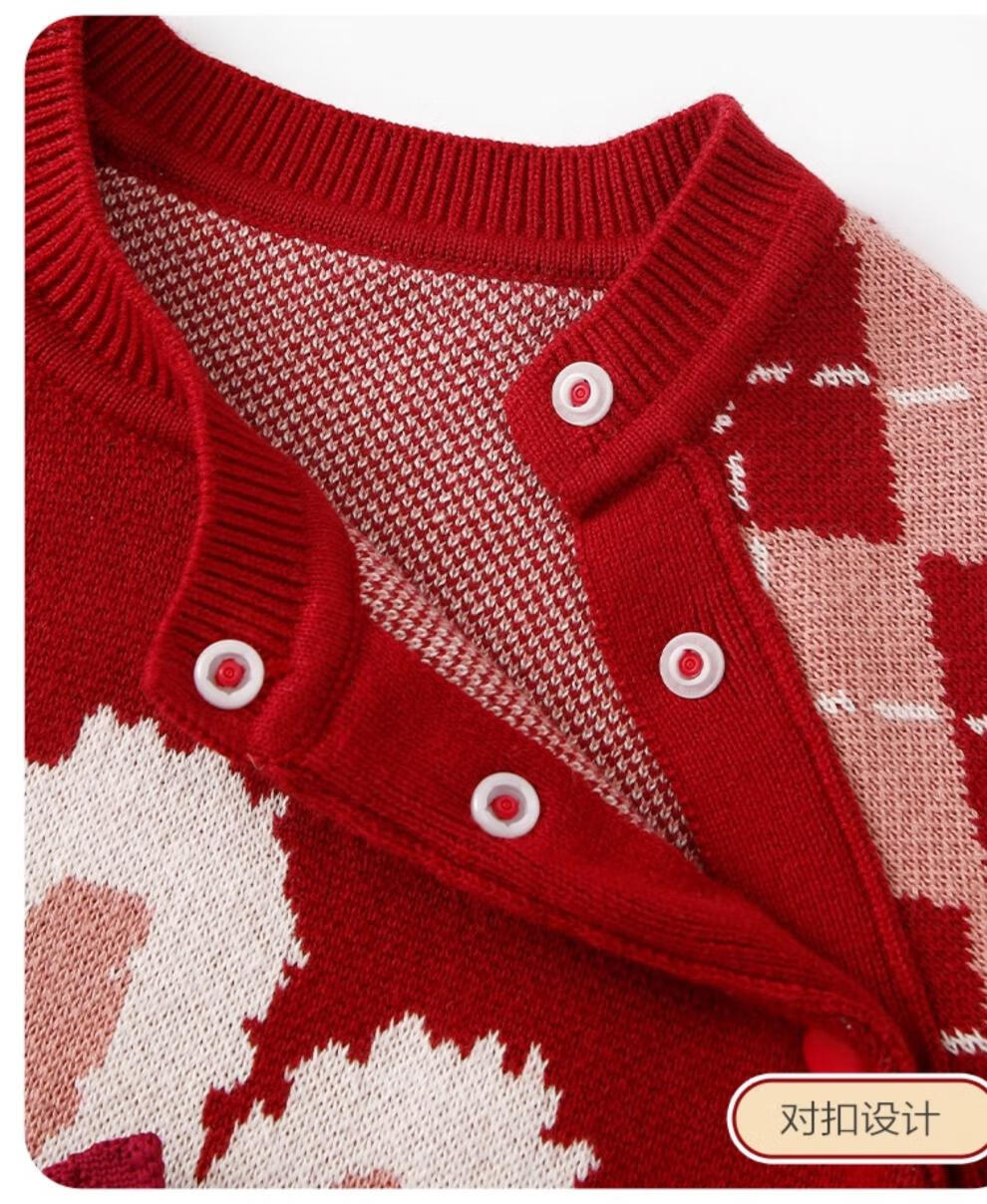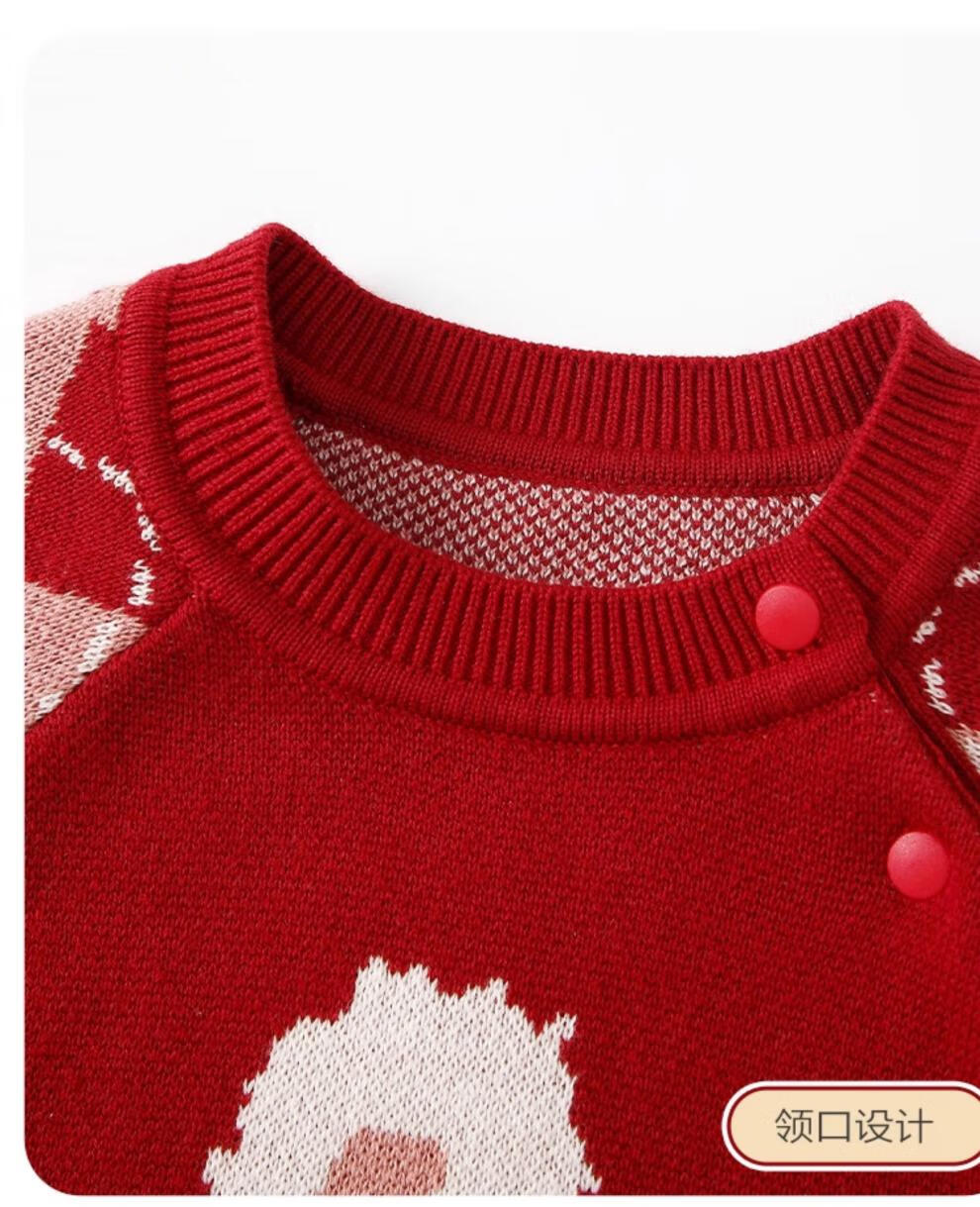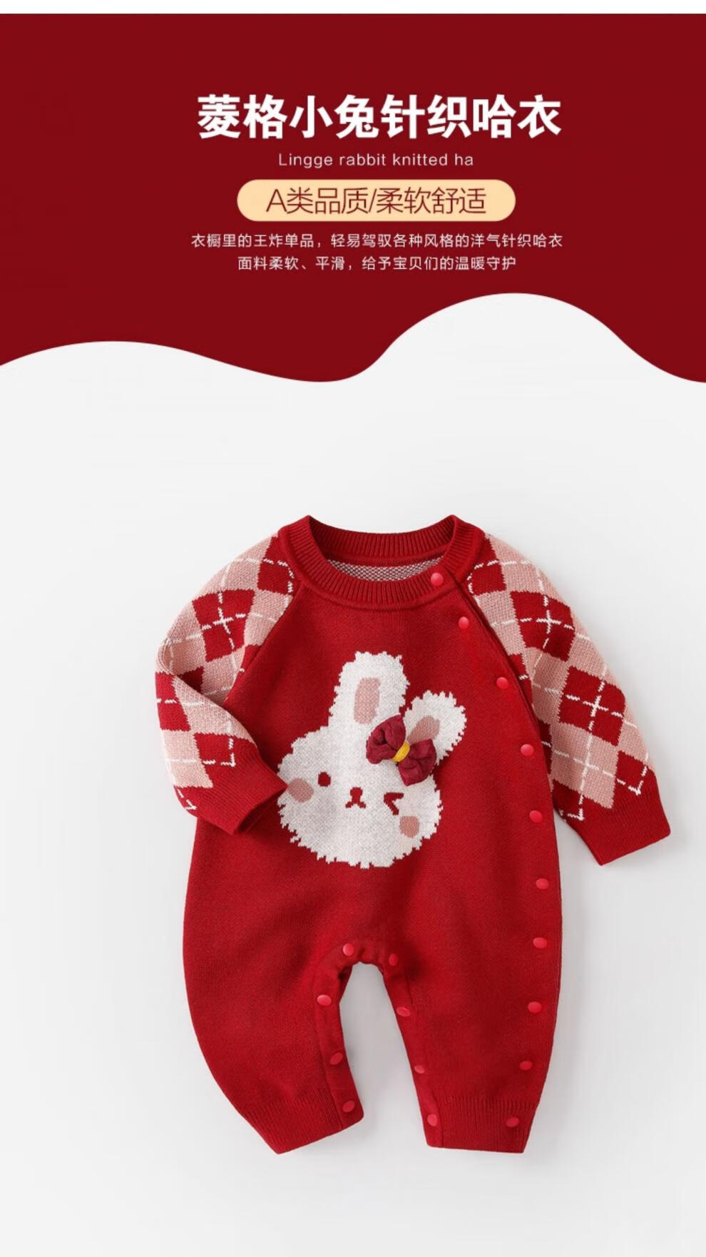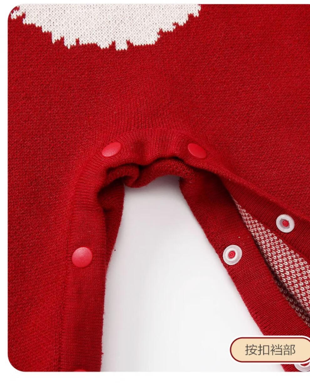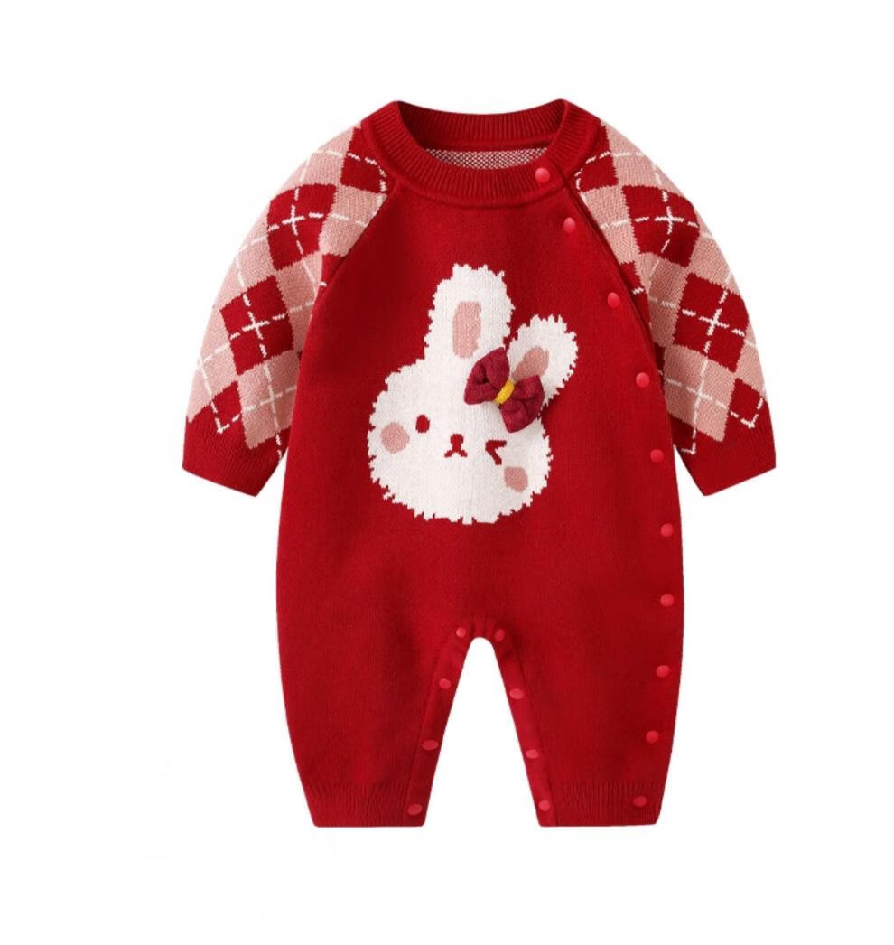 Disney baby clothes, autumn clothes, newborn girl red knitted jumpsuit, autumn and winter full moon 100-day-one-year-old wedding dress, brand 7603+ bunny shoes 80cm