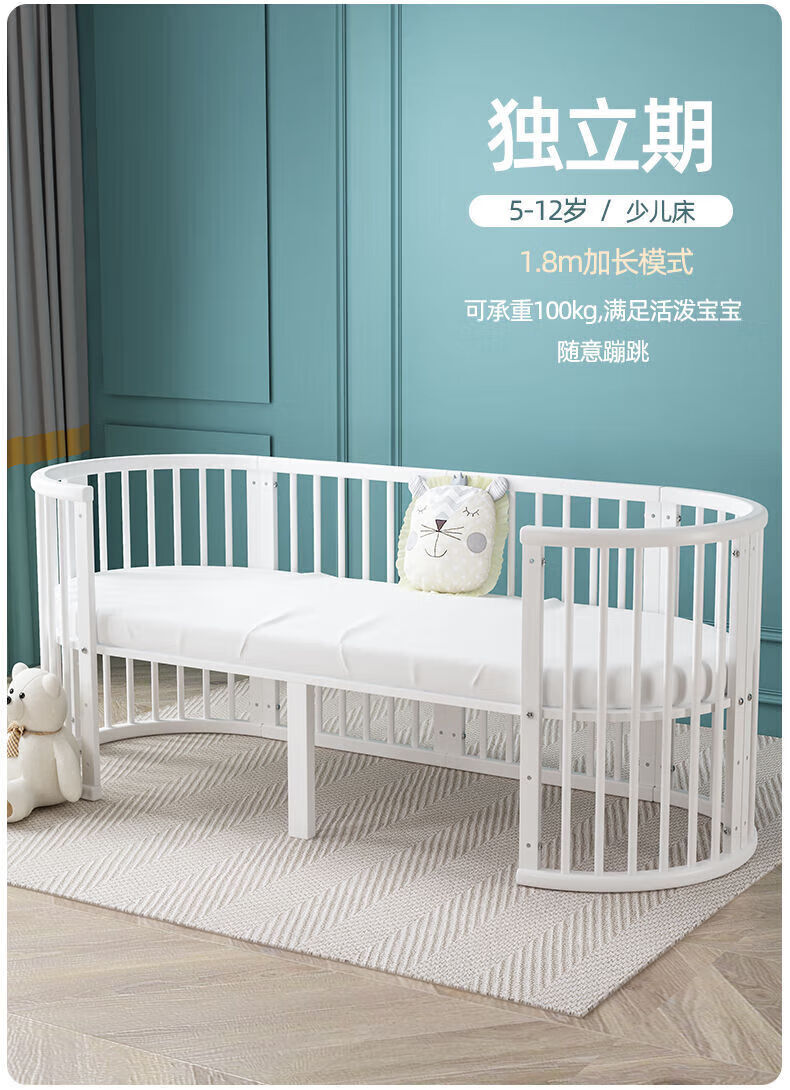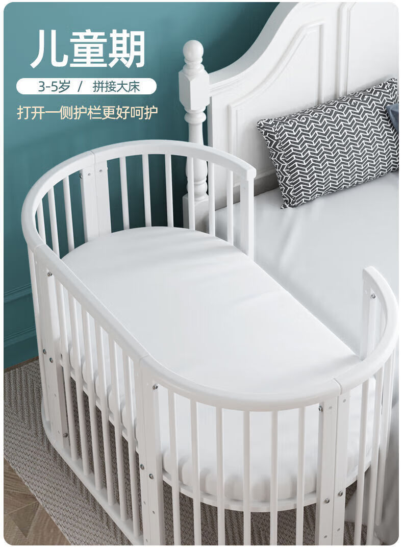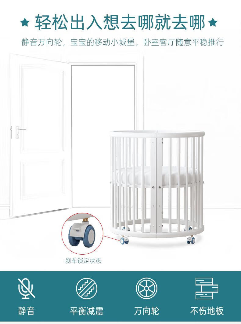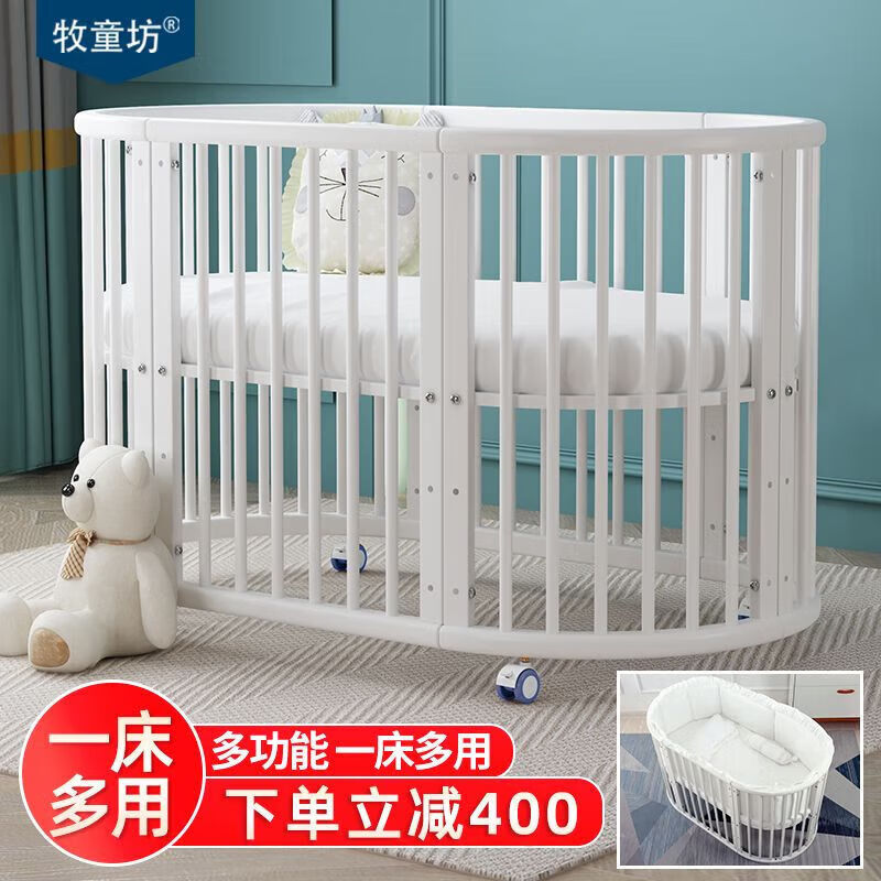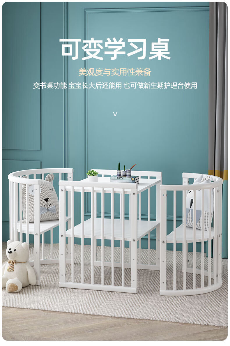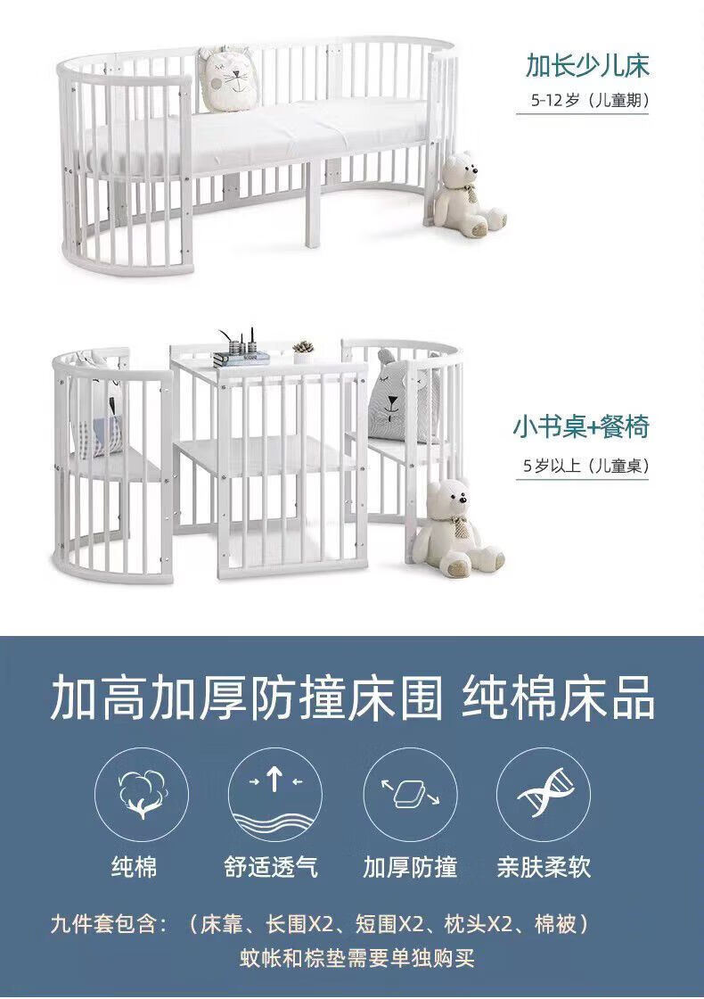 QI LIN ZIZILAFANCYCHIC Mutongfang crib solid wood European splicing large bed removable newborn crib multi-bed + mosquito net