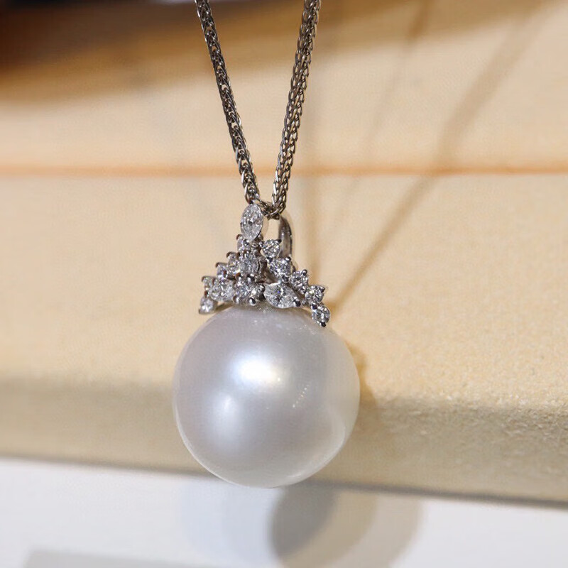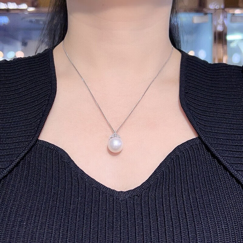 Zheng Xingyao white pearl pendant seawater necklace gold diamond temperament clavicle chain for birthday gift 13.8mm 3.8mm