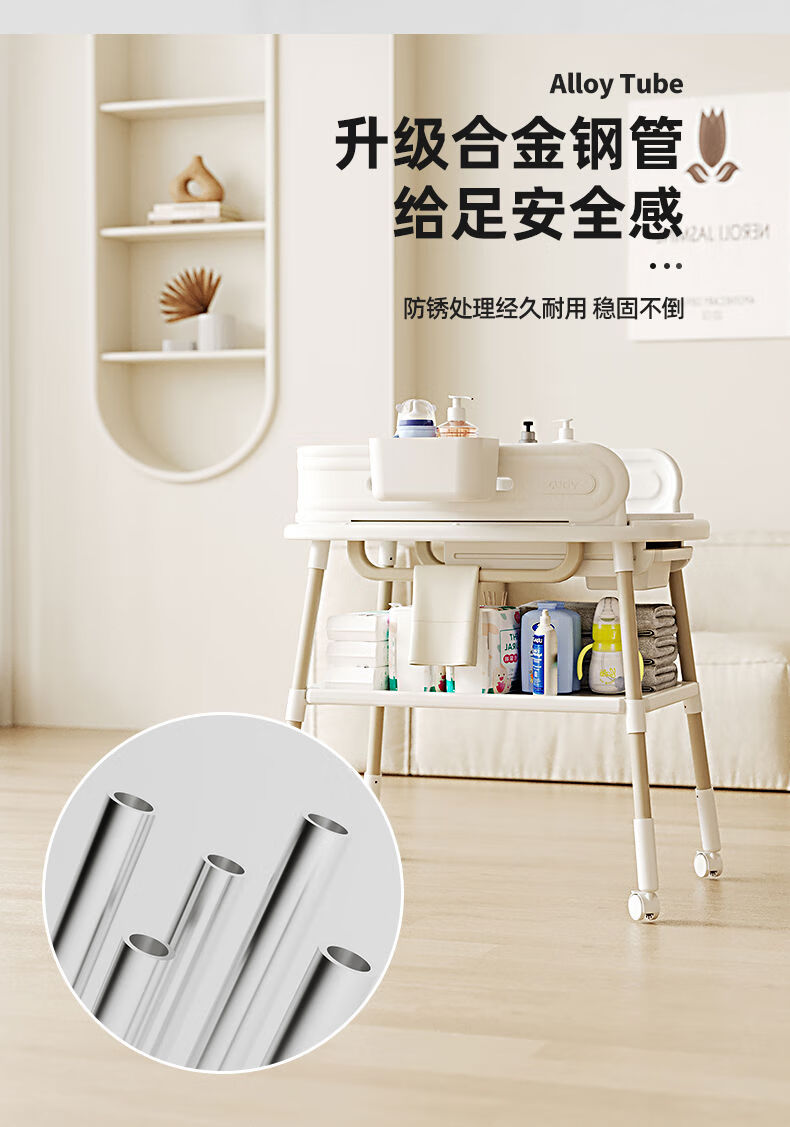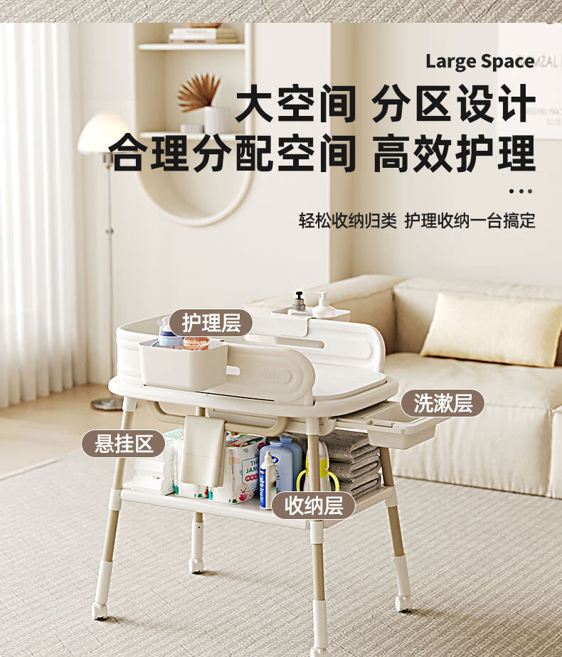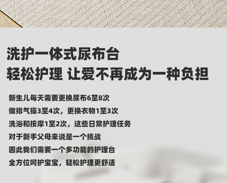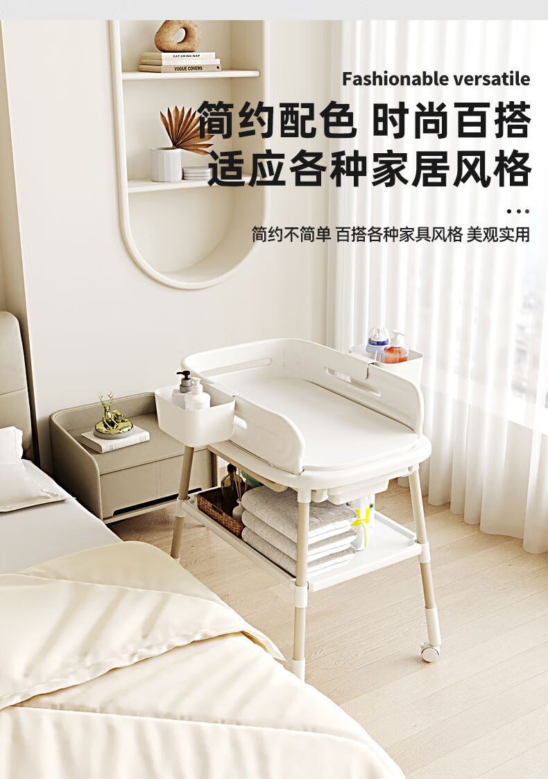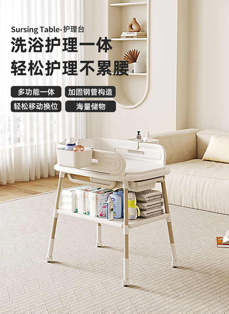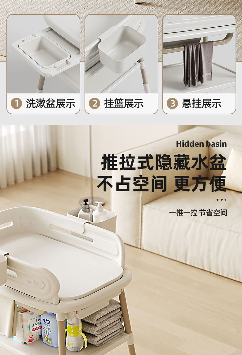 Diaper table, large capacity, baby care table, multifunctional touch bed, newborn diaper changing bed, removable crib, 1 piece, nursing table + hanging basket*2