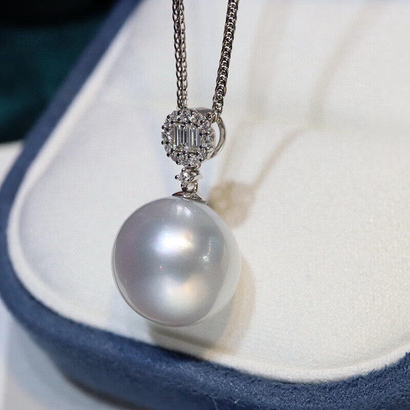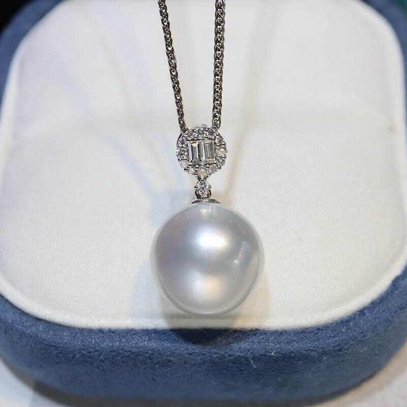 Zheng Xingyao white pearl pendant seawater necklace gold diamond temperament clavicle chain for birthday gift 13mm 13mm