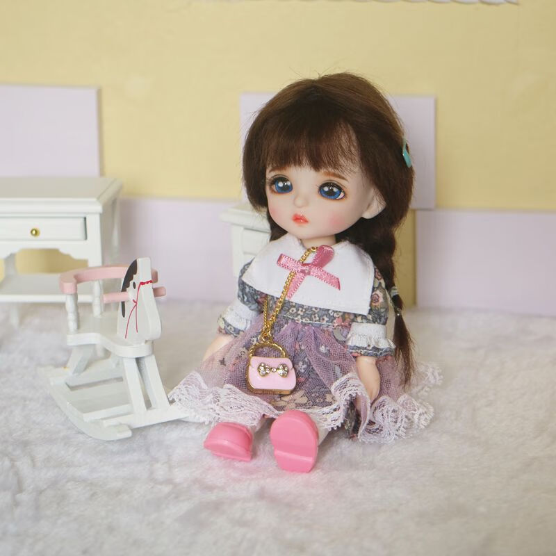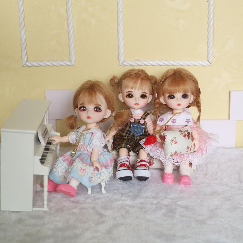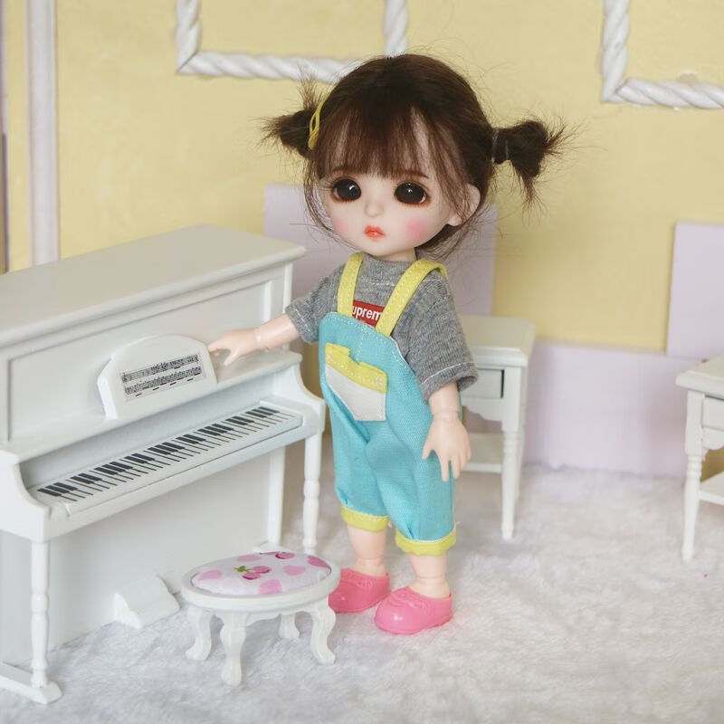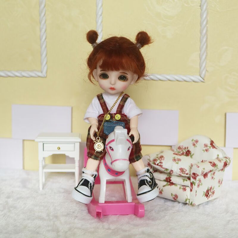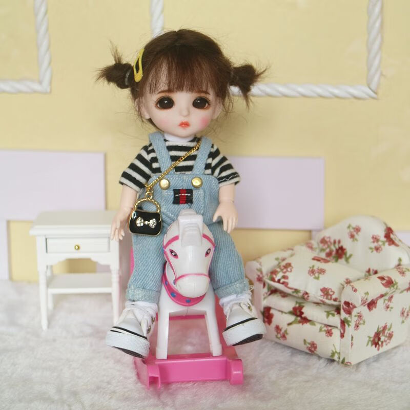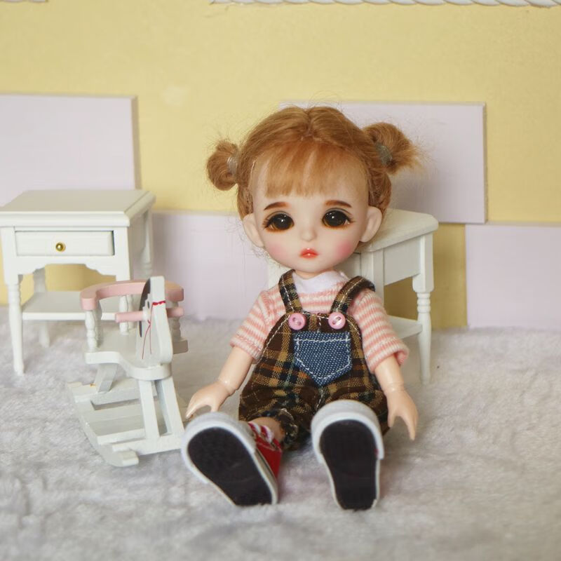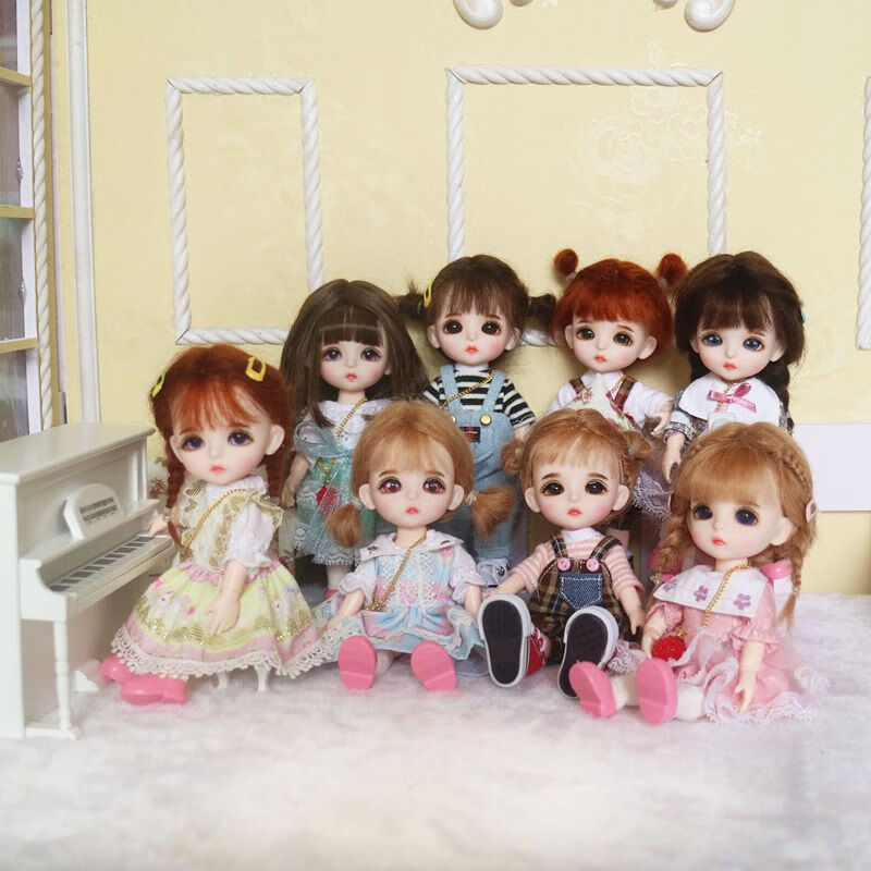 Shantou Lincun doll make-up and dress-up doll 8-point joint 3D real eyes girl toy doll birthday gift brown short hair overalls whole baby (height 17 cm)