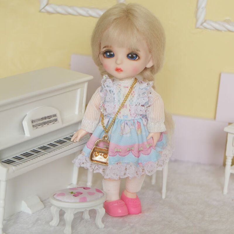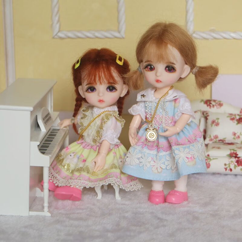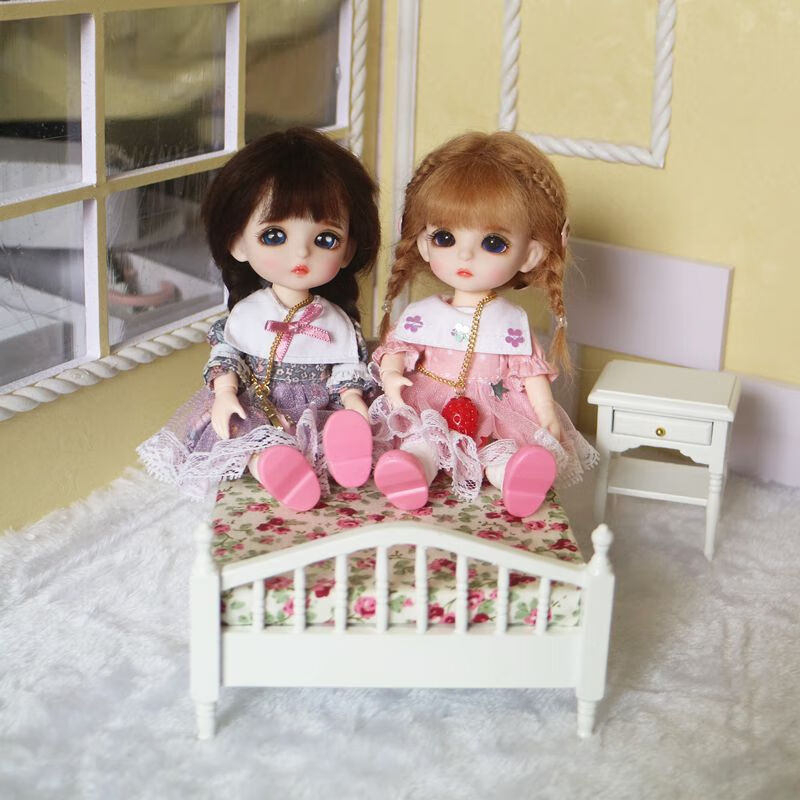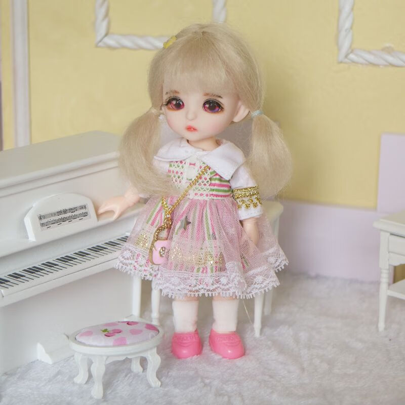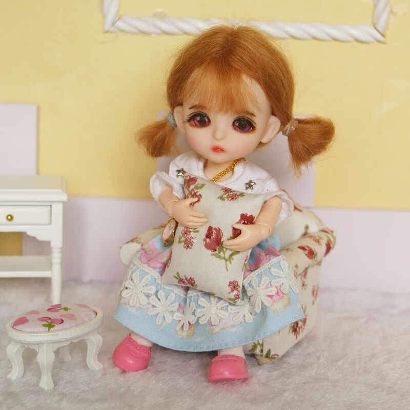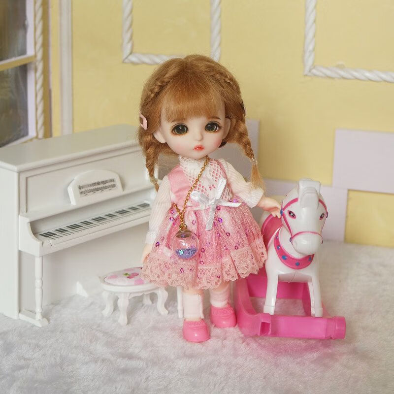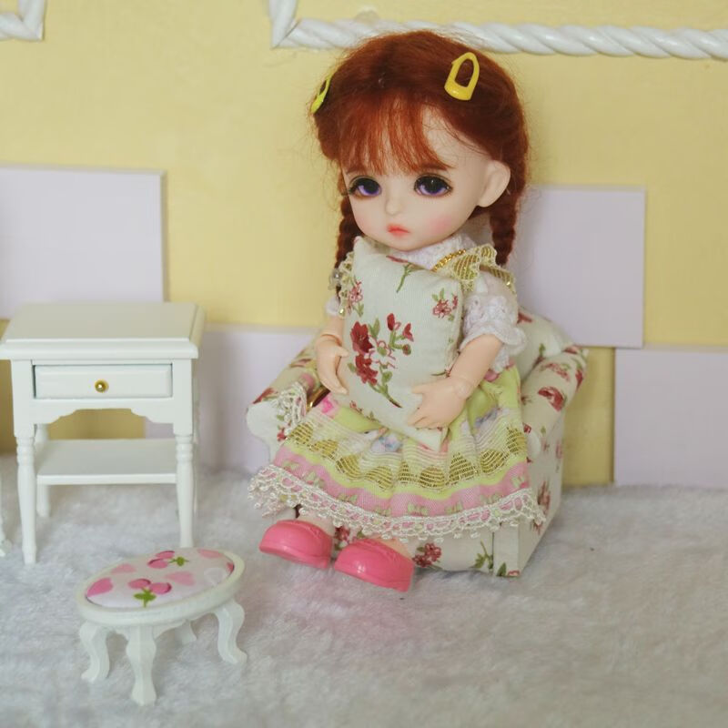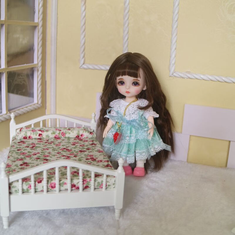 Shantou Lincun doll make-up and dress-up doll 8-point joint 3D real eyes girl toy doll birthday gift brown short hair overalls whole baby (height 17 cm)