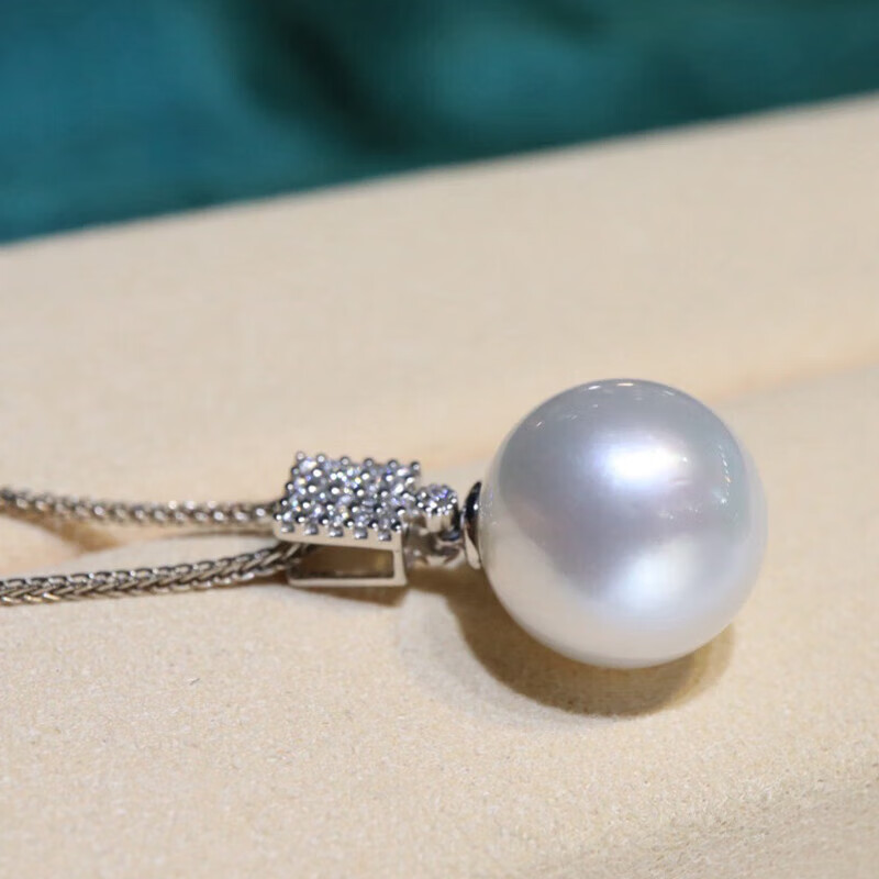 Zheng Xingyao white pearl pendant seawater necklace gold diamond temperament clavicle chain for birthday gift 12.3mm 2.3mm