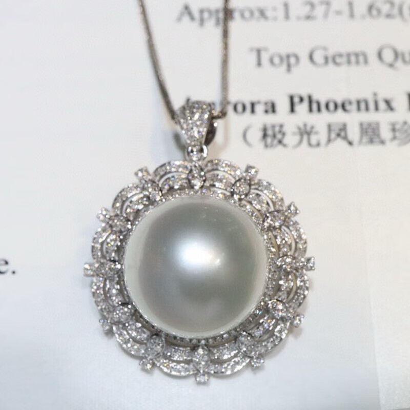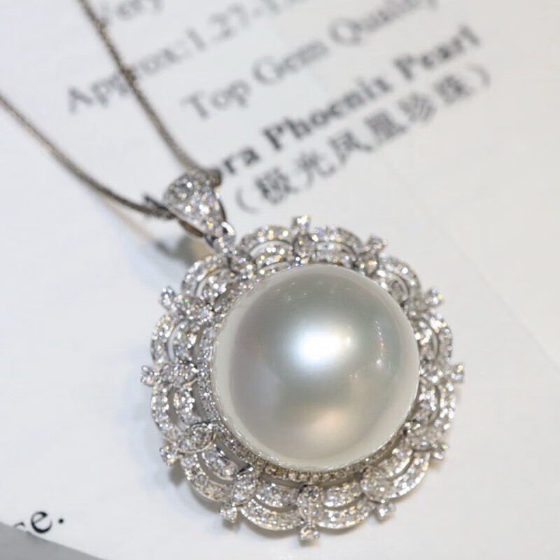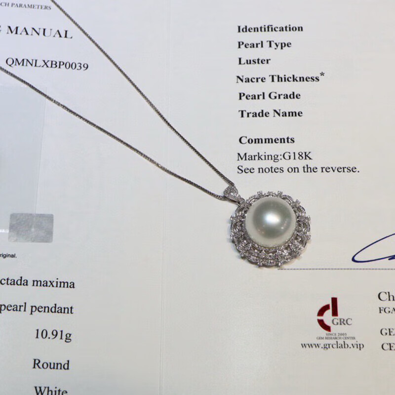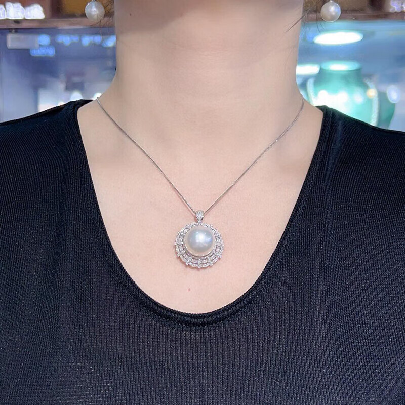Zheng Xingyao White Pearl Pendant Seawater Necklace Gold Diamond High Luxurious Clavicle Chain for Birthday Gift 16.5mm 6.5mm
