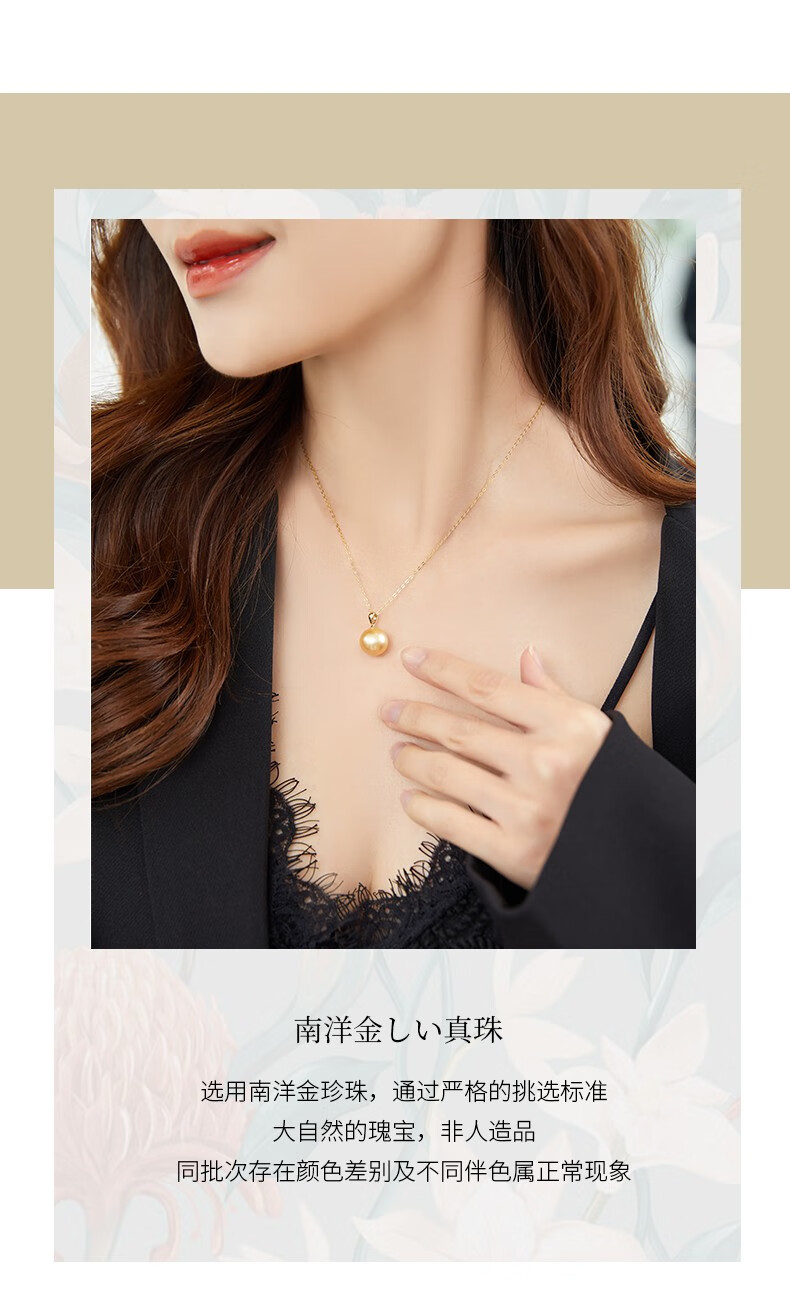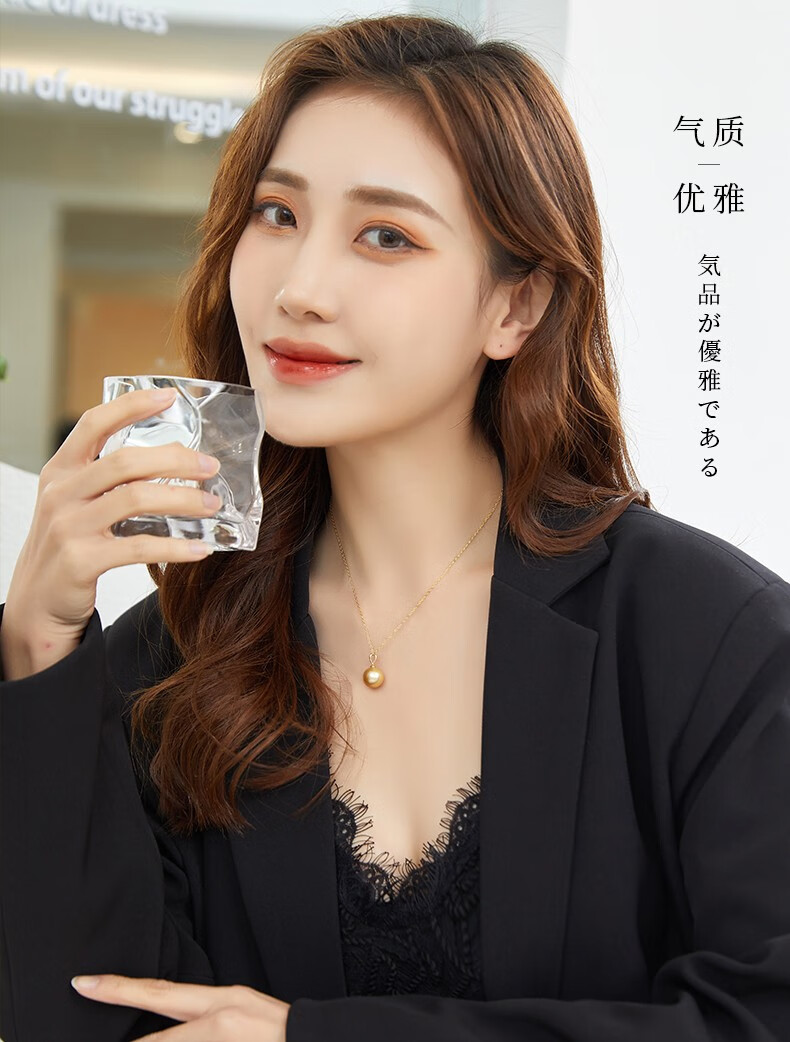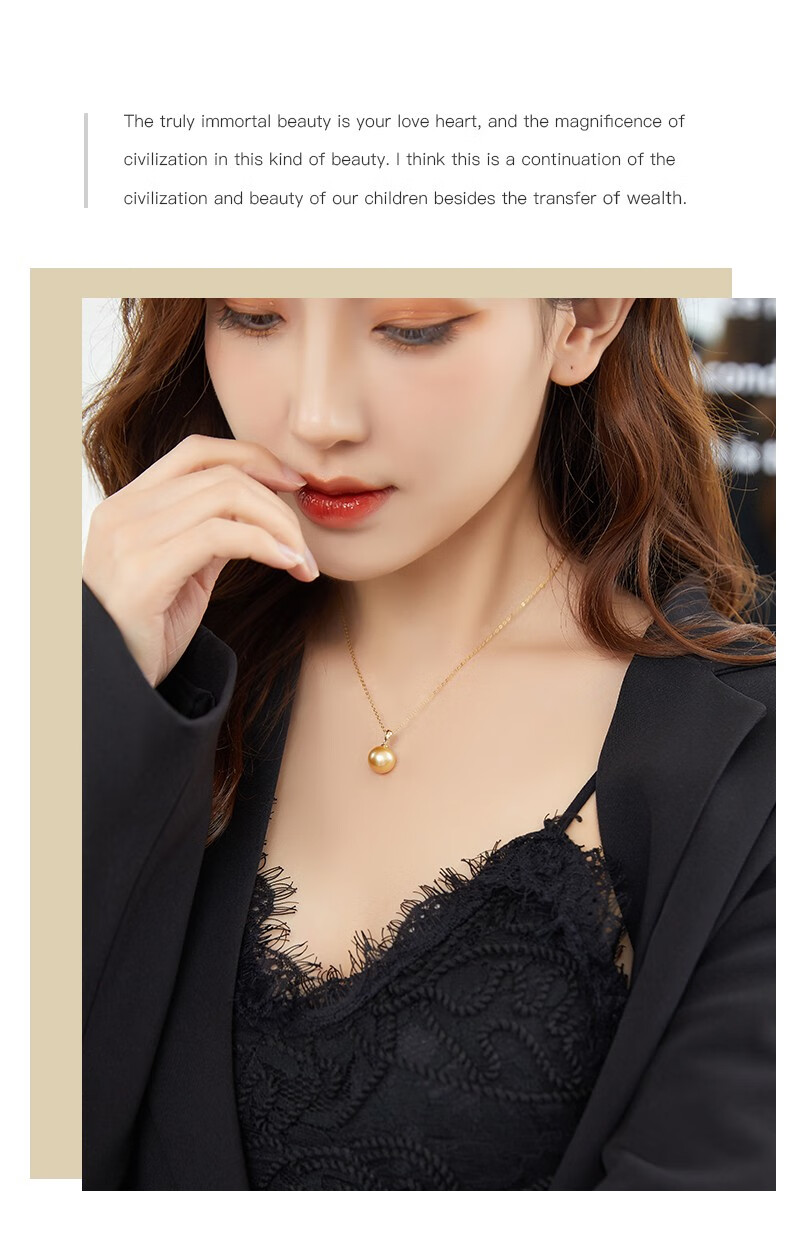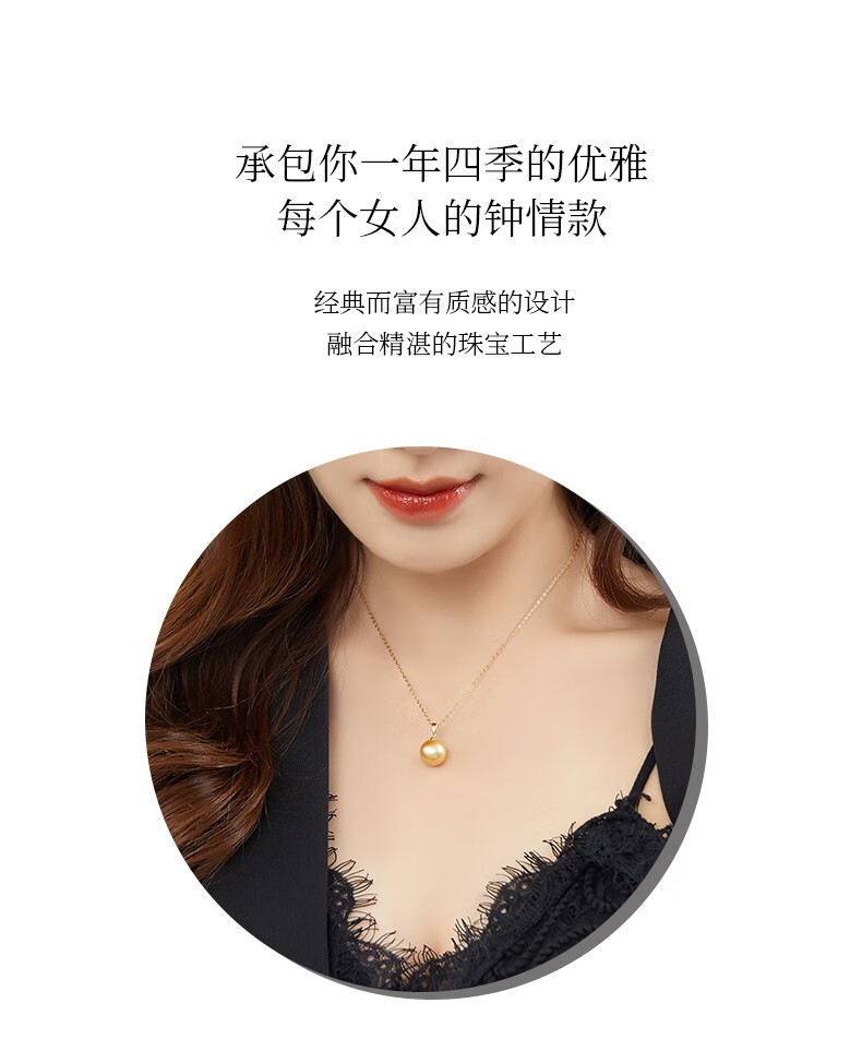 Qianpei Nanyang gold bead pendant, round seawater pearl pendant, single pearl necklace for women, gift for wife, 9-10mm
